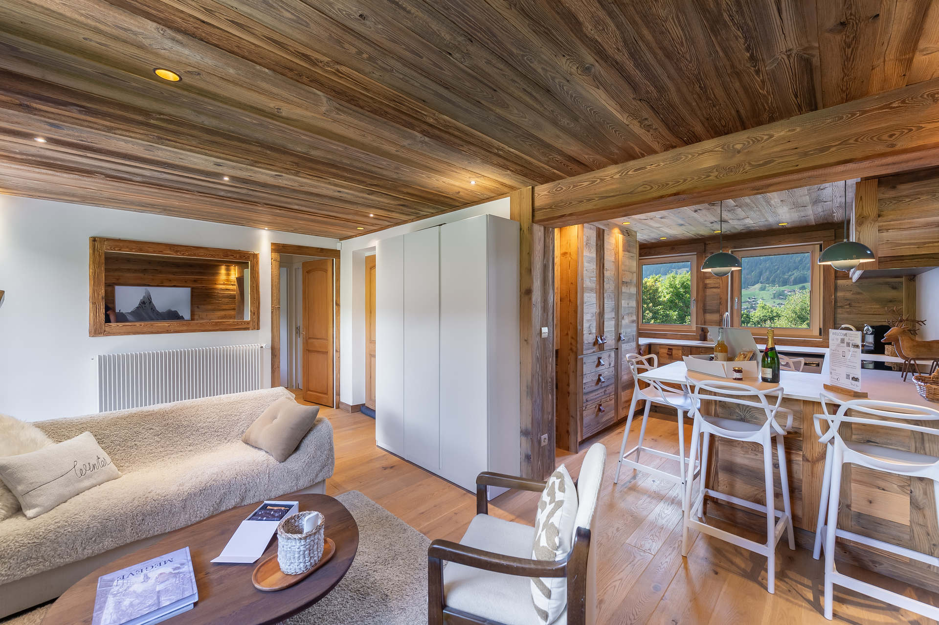Newly renovated flat just 200 m from the ski lifts and 15 minutes' walk from the village centre. The living area is bright and welcoming, with an open-plan kitchen opening onto the lounge. You'll find a connected TV in every room of the SuperMegève. Accessible from the living room, a terrace adds to the flat's composition.