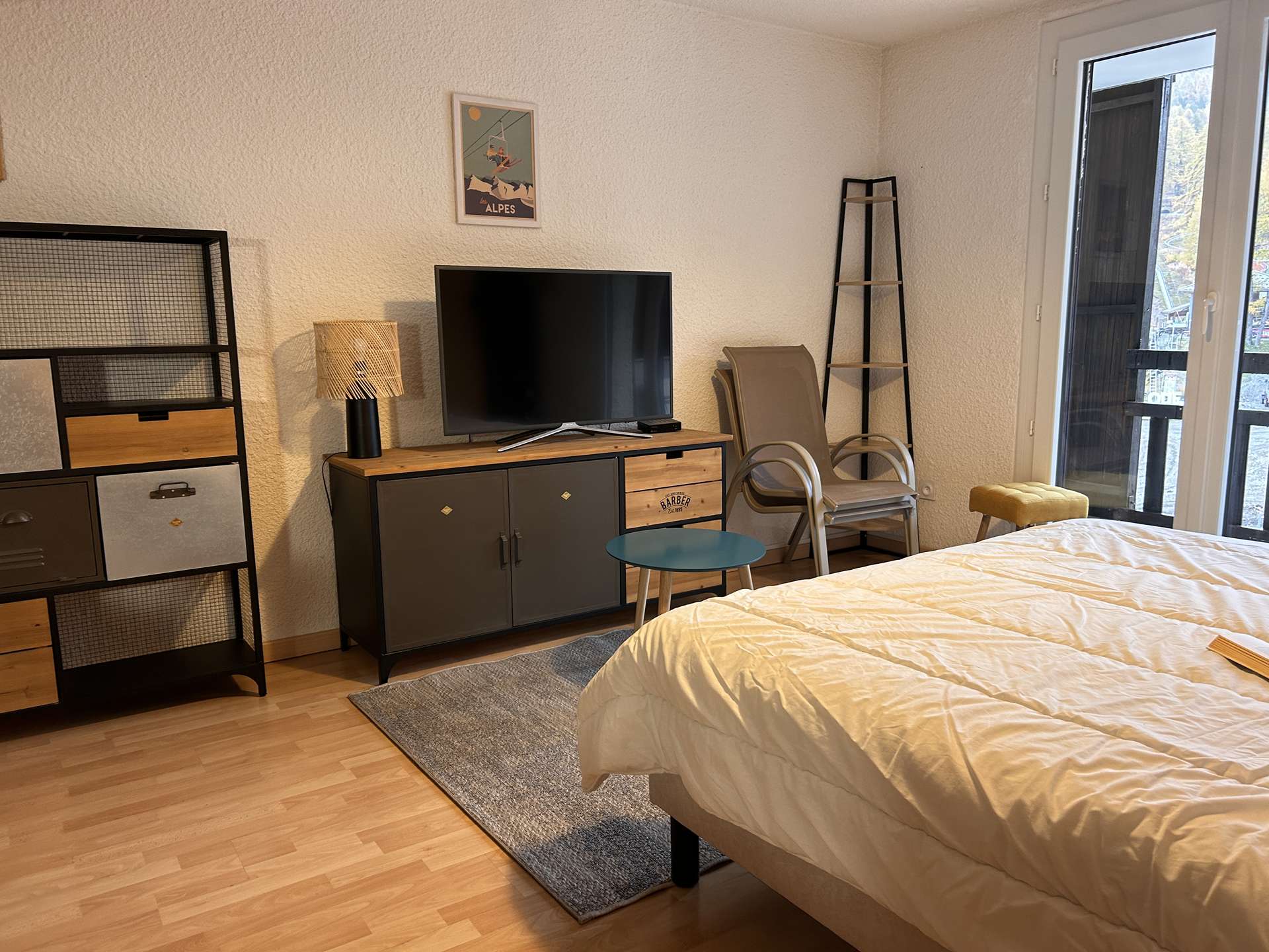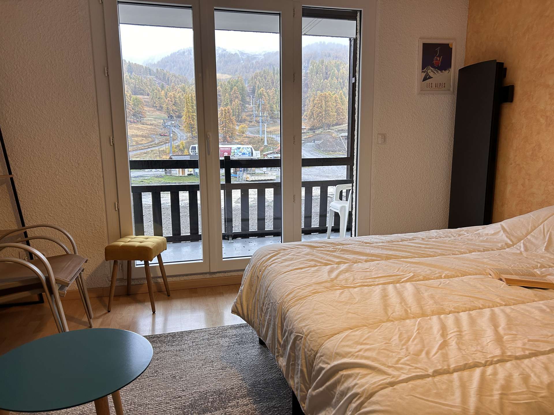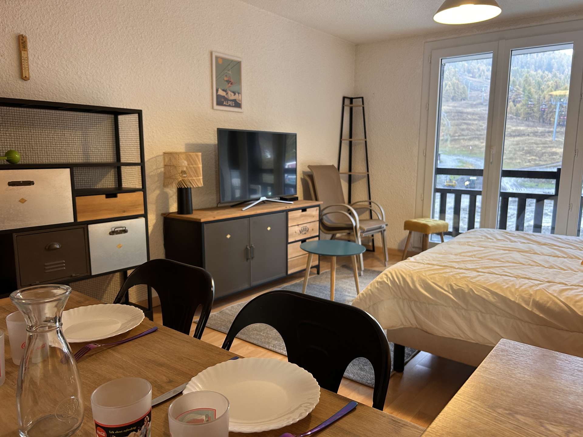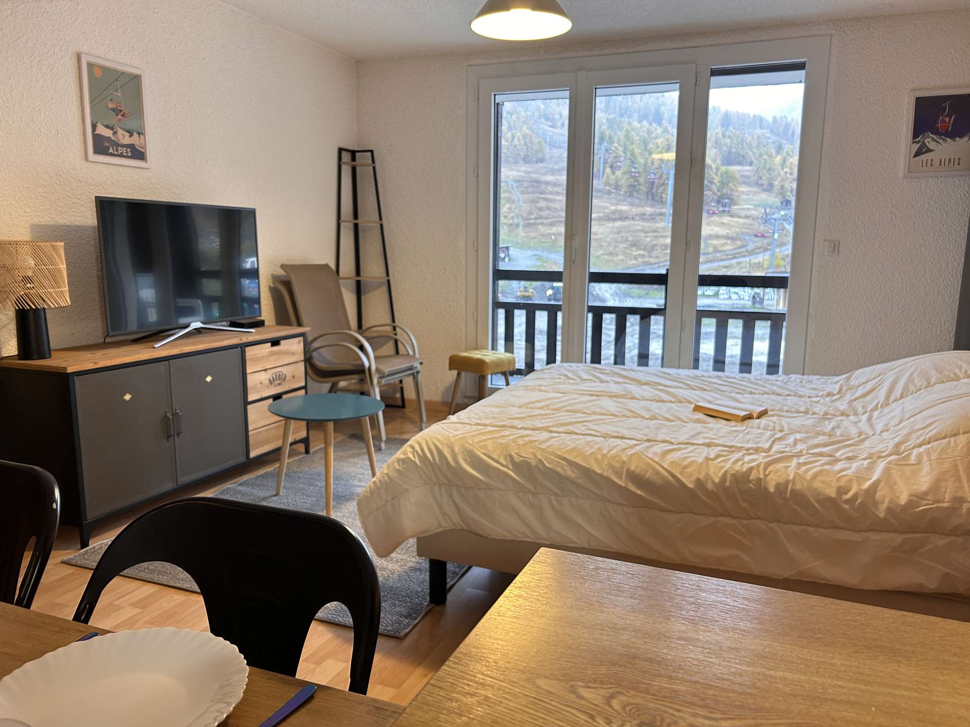 Located at the foot of the slopes, this studio is organized around a living room with a double bed, a mountain corner at the entrance with a bunk bed (two single beds) separated from the living room by a door. This apartment also has a kitchen equipped with electric hobs, an oven, a microwave and a refrigerator. There is a bathroom with a bathtub, and the toilet is separate.