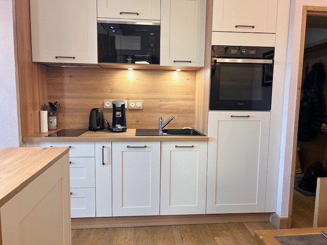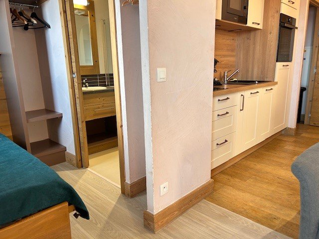 Located in the immediate vicinity of the slopes, the apartment includes an entrance, a separate toilet, a main room opening onto a balcony with north exposure, an equipped kitchen, a 1st bedroom with a 160 cm bed, a sleeping area with a 90 cm bed, a 2nd bedroom with 2 twin beds and a convertible sofa in the living room. Shower room + bathroom.