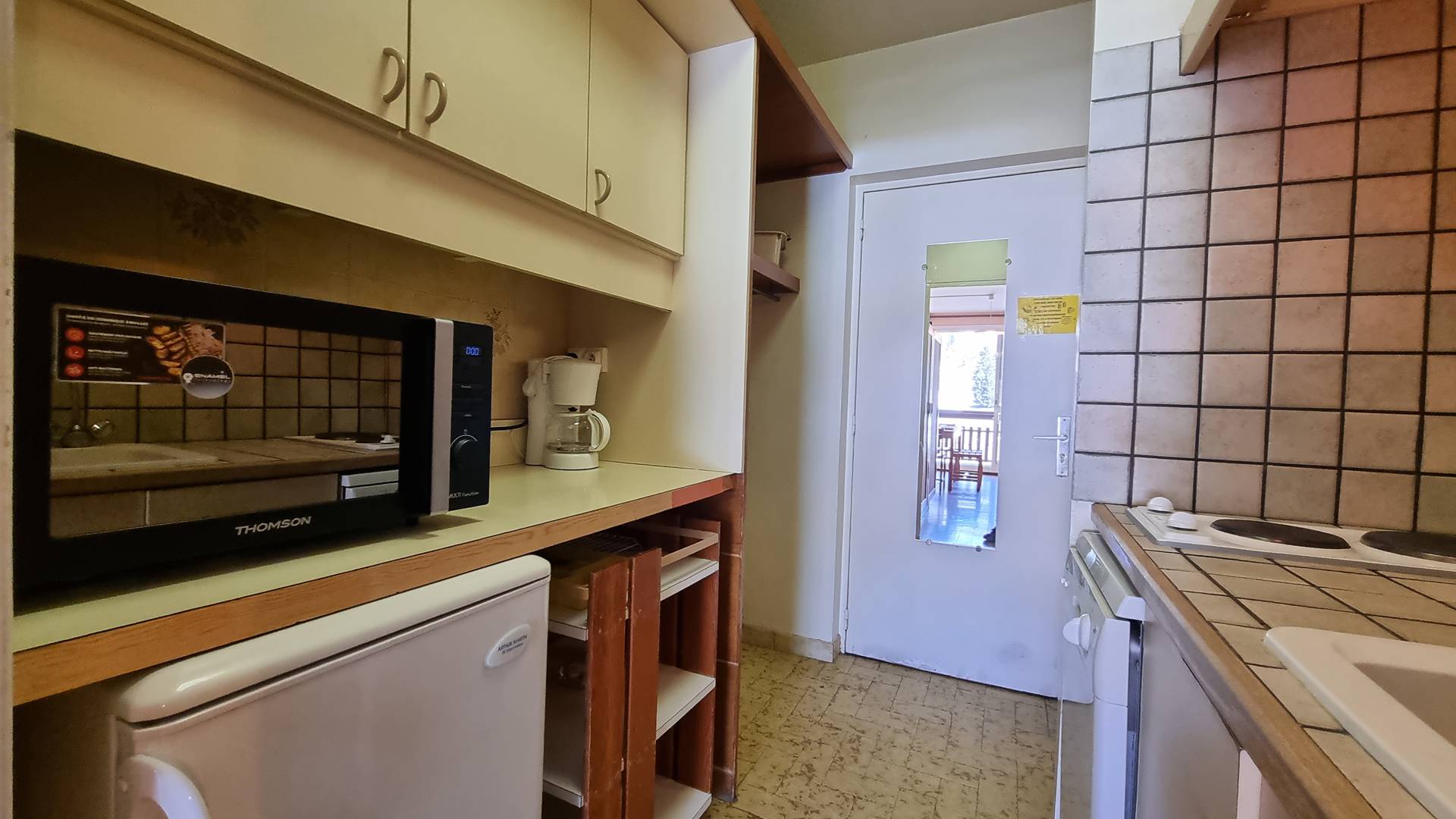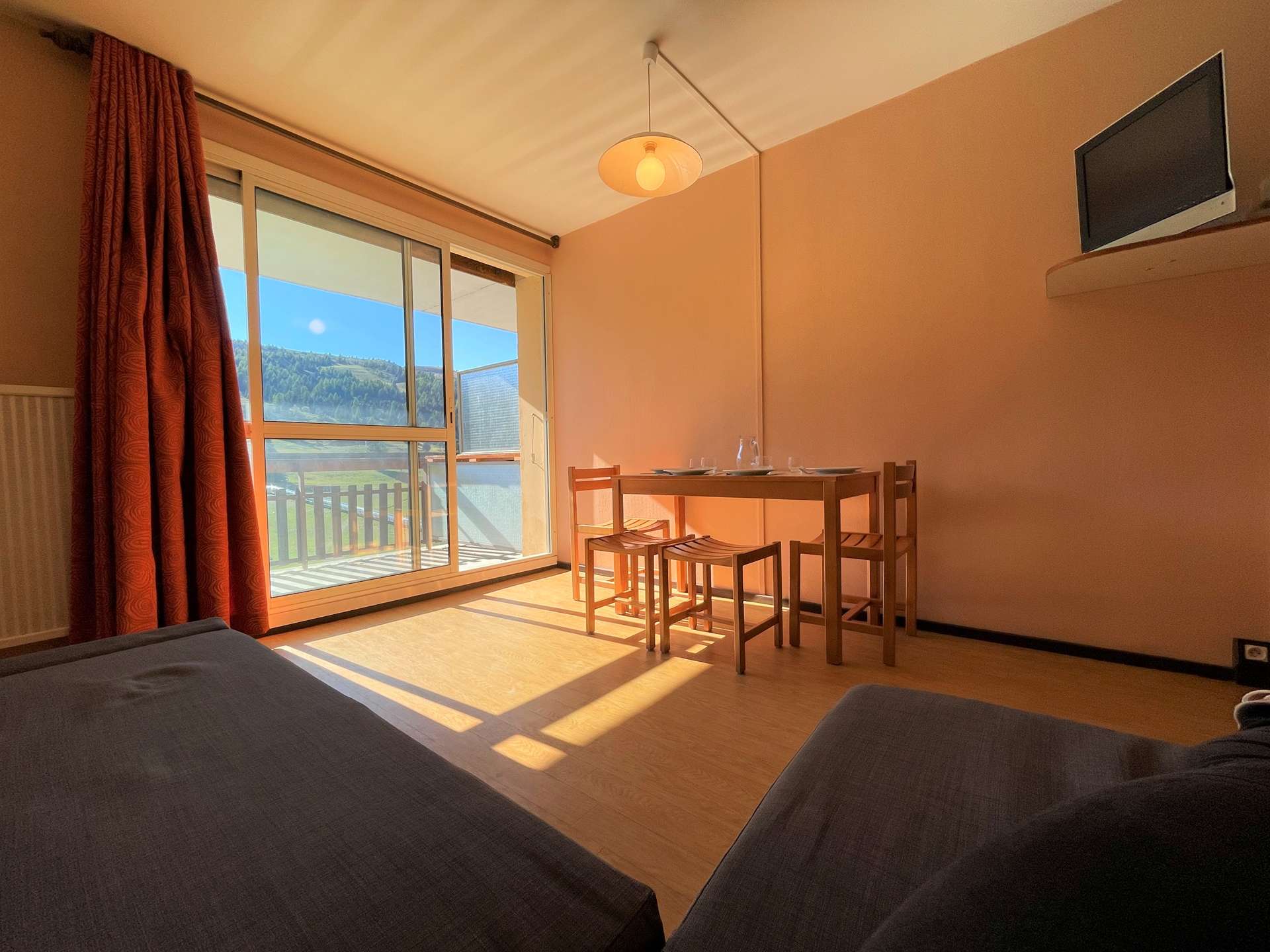 Studio sleeping area with terrace, facing South-West, on the 7th floor of the "Le Bois d'Aurouze" residence with elevator.
