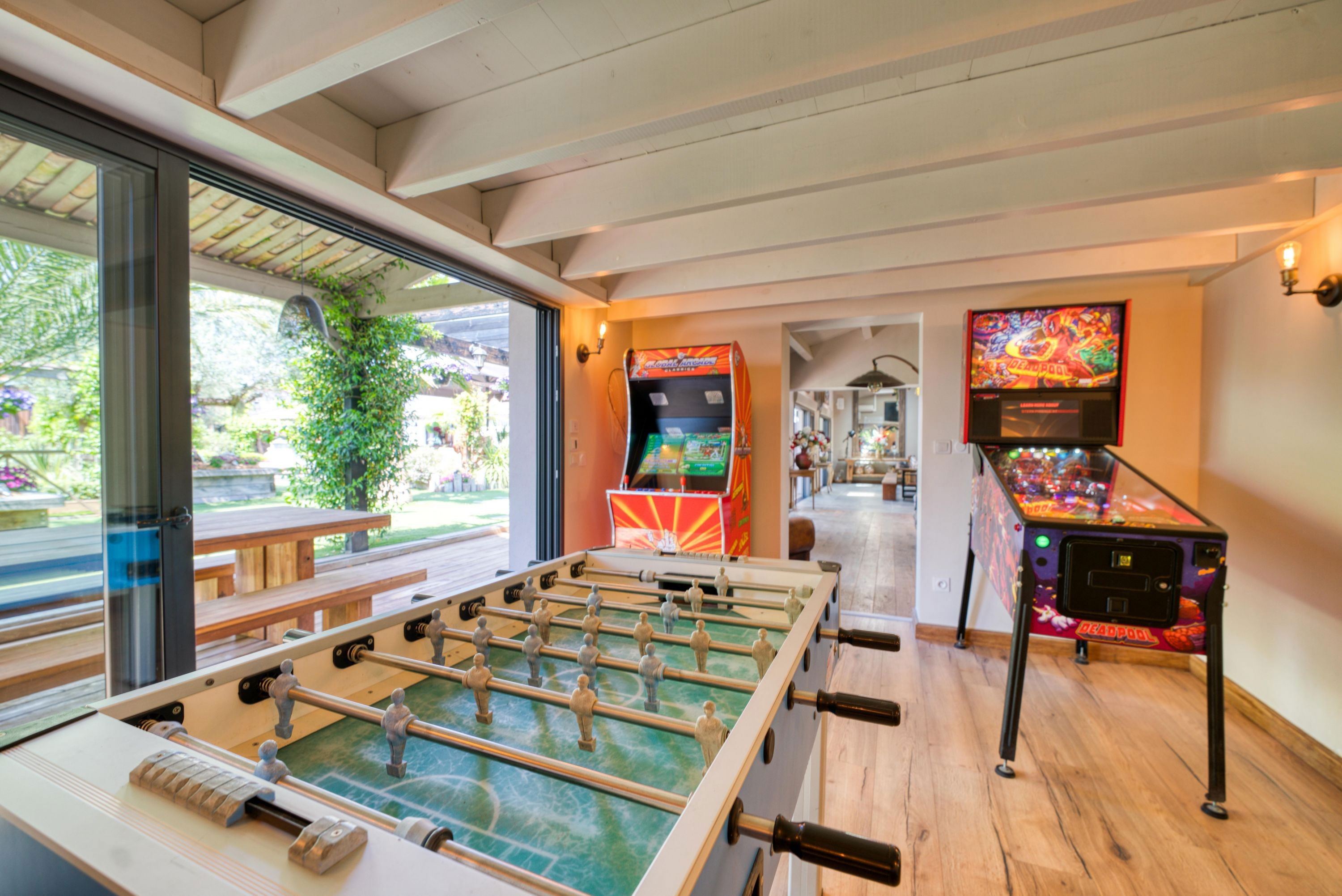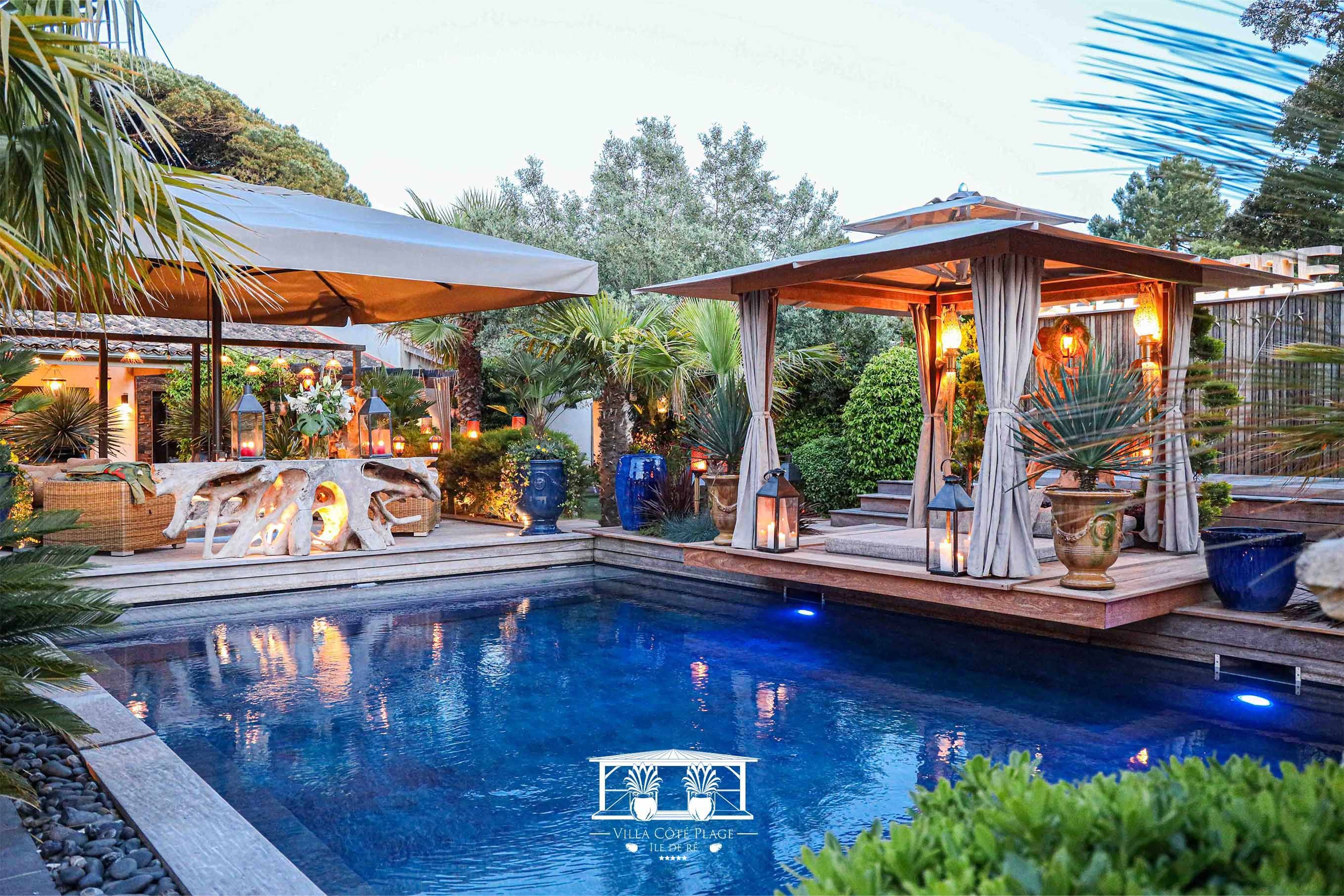 Luxury villa located 100 metres from the beach. The villa can accommodate up to 34 guests through 9 double bedroom and 4 larger room with 4 single bed each. Ideal for kids and friends.The kids room are equipped with TV flat screen and Play station Games. The swimming pool is secured with an electrical cover, 2 jacuzzi, sauna, ping pong table and baby foot. A Play room with flippers and snookers, etc...