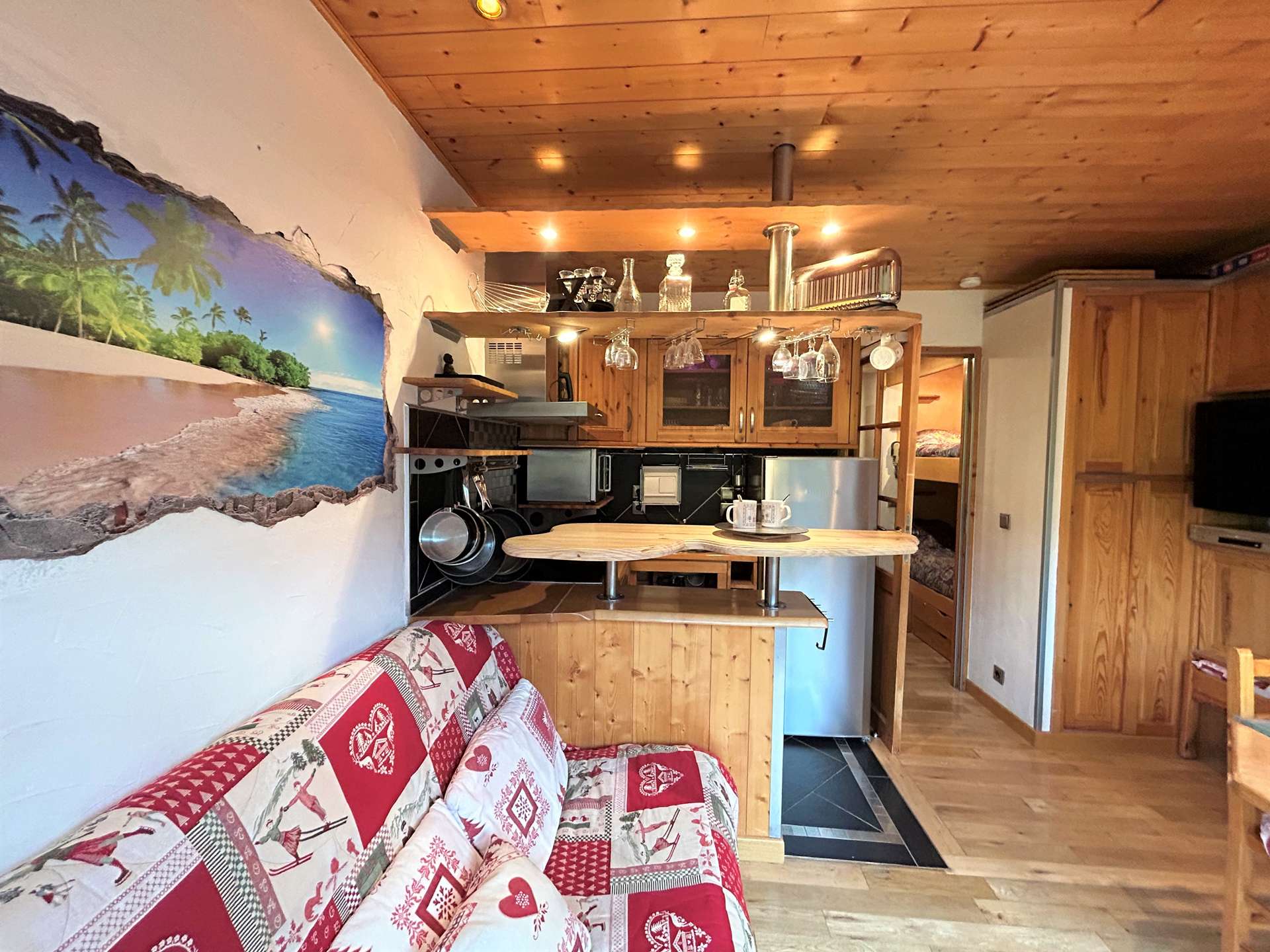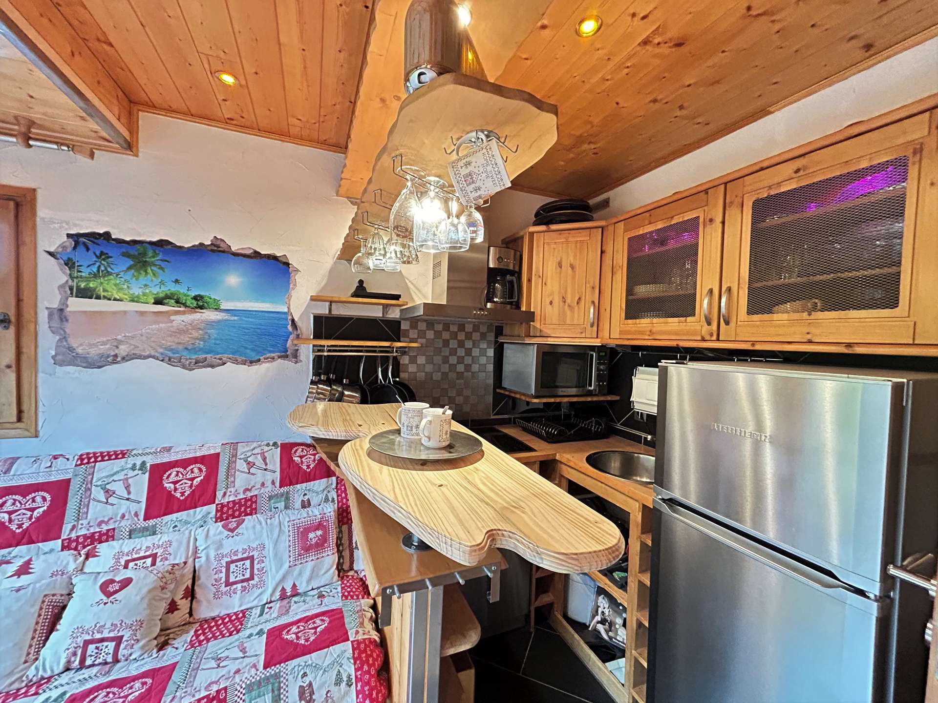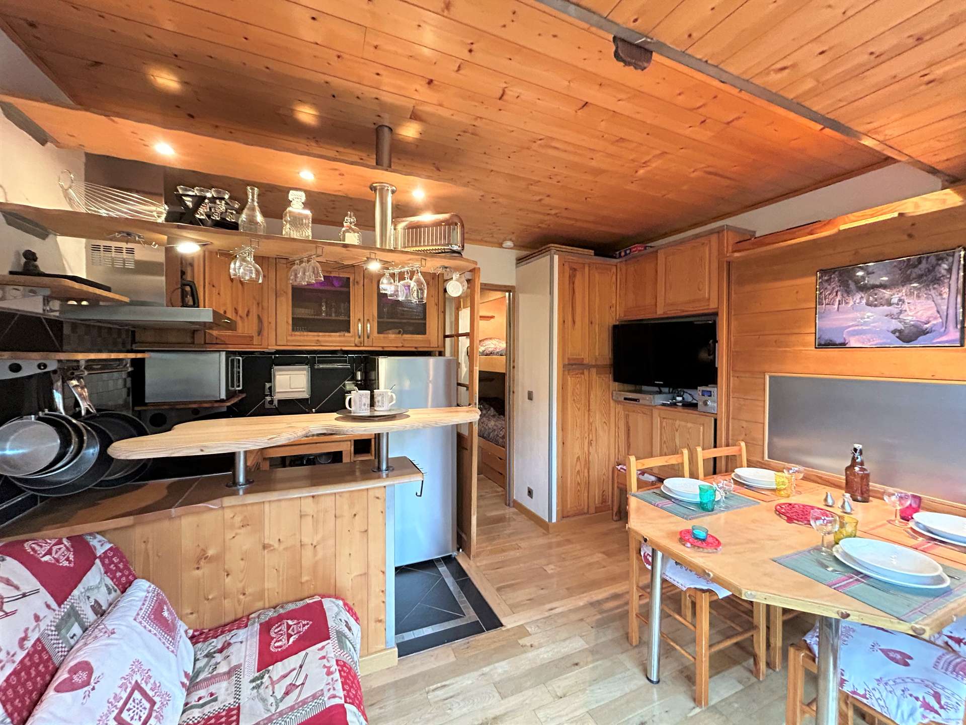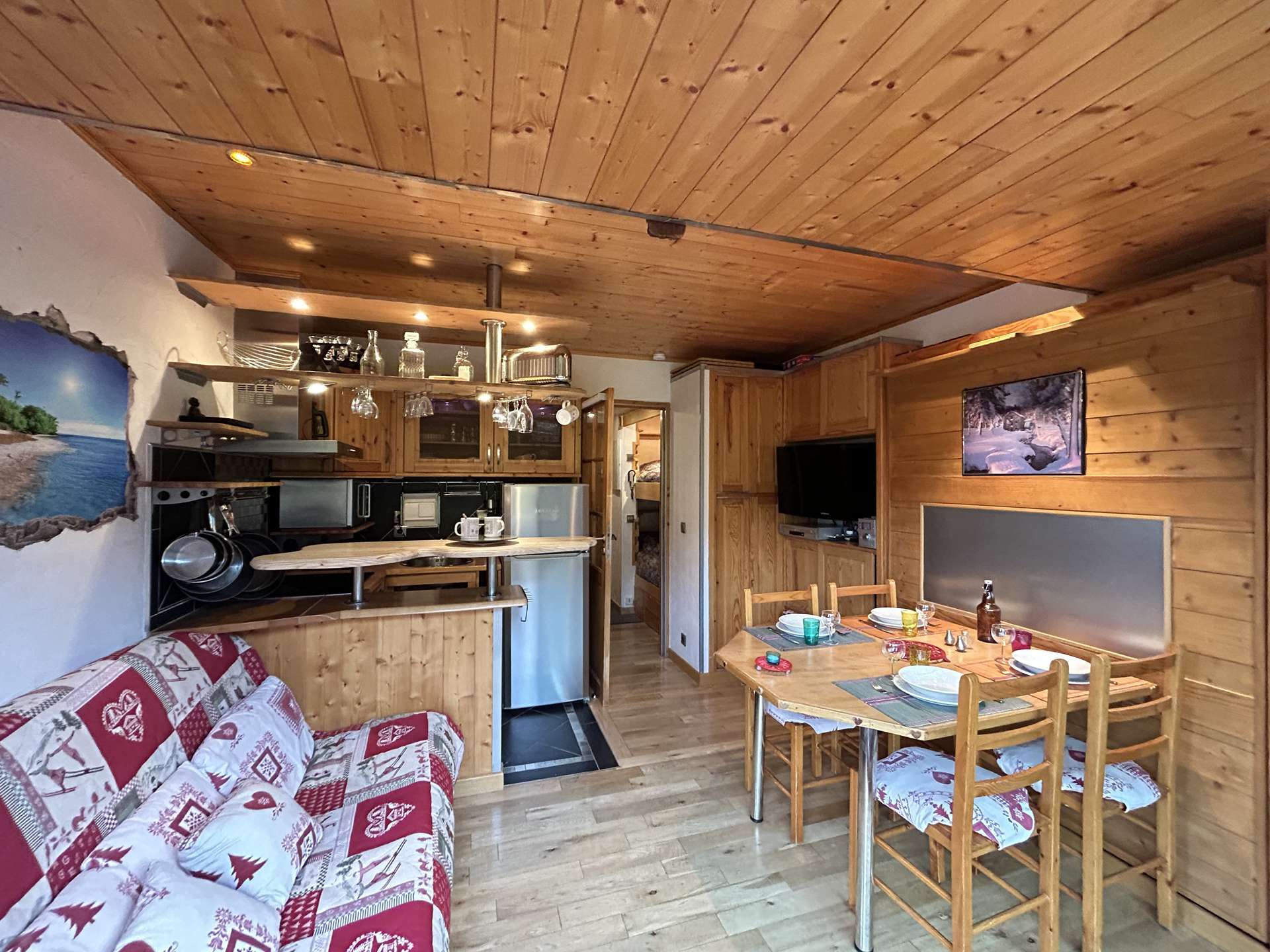 Méribel (73) - Center - Residence Studio apartment - approximately 25m² - up to 4 people The residence "" with summer swimming pool is located at the bottom of the resort center, 150m from shops, restaurants and 100m from the free shuttle stop. It is approximately 200m from the slopes. This pretty studio apartment is located on the ground floor of the residence. It consists of an equipped kitchen open to a living room opening onto a west terrace. You have a dining area, a small living room with sofa, a 140cm mountain bed for 2 people and a television. In the entrance you will find 1 set of enclosed bunk beds, a bathroom with shower and bathtub and toilets. You have a ski locker and a parking space in the residence's garage. The advantages of this apartment: the well-optimized studio space, the private parking space in the residence's garage, the "proximity to amenities" location, the west terrace, the swimming pool (summer only). Cleaning with disinfection is included.