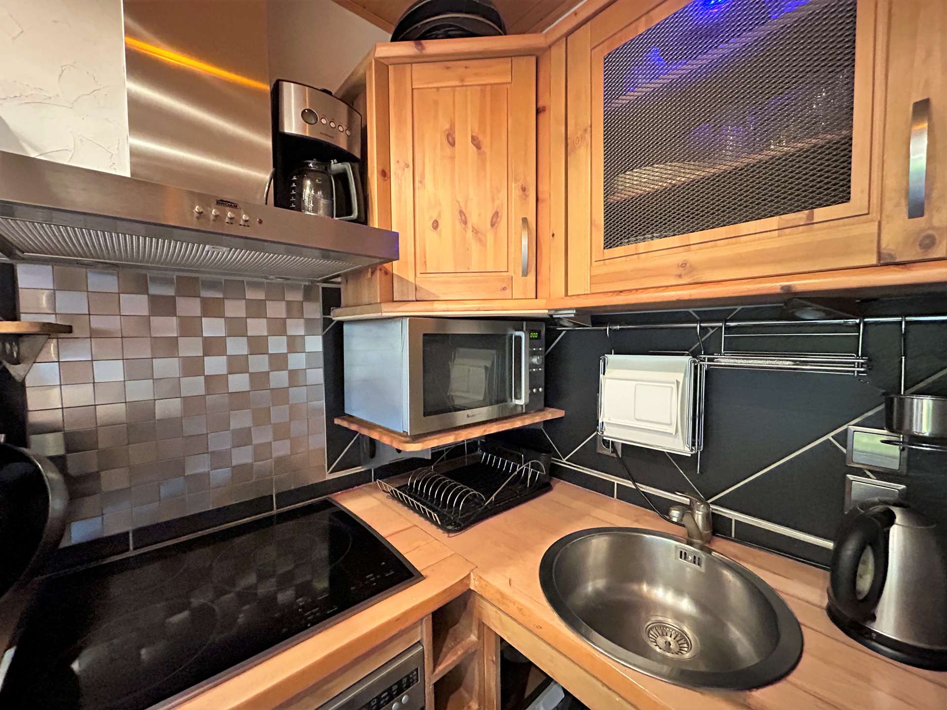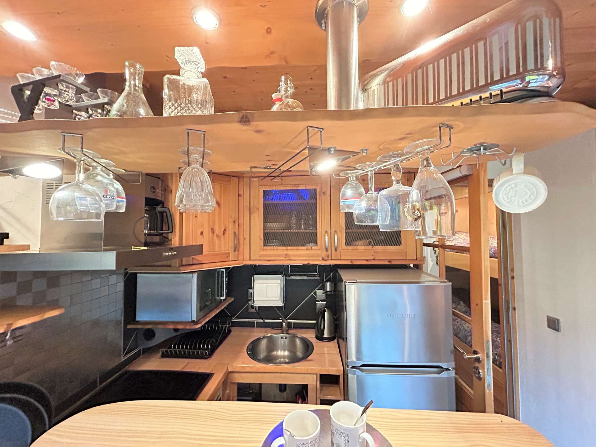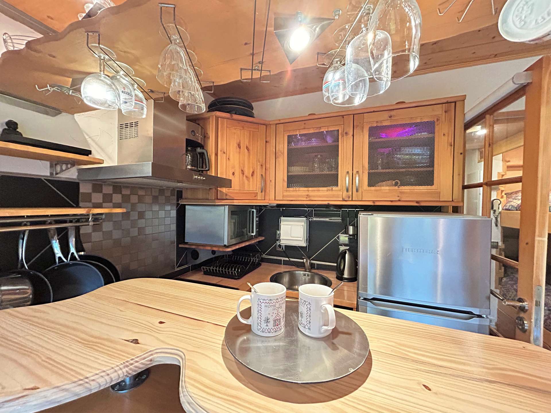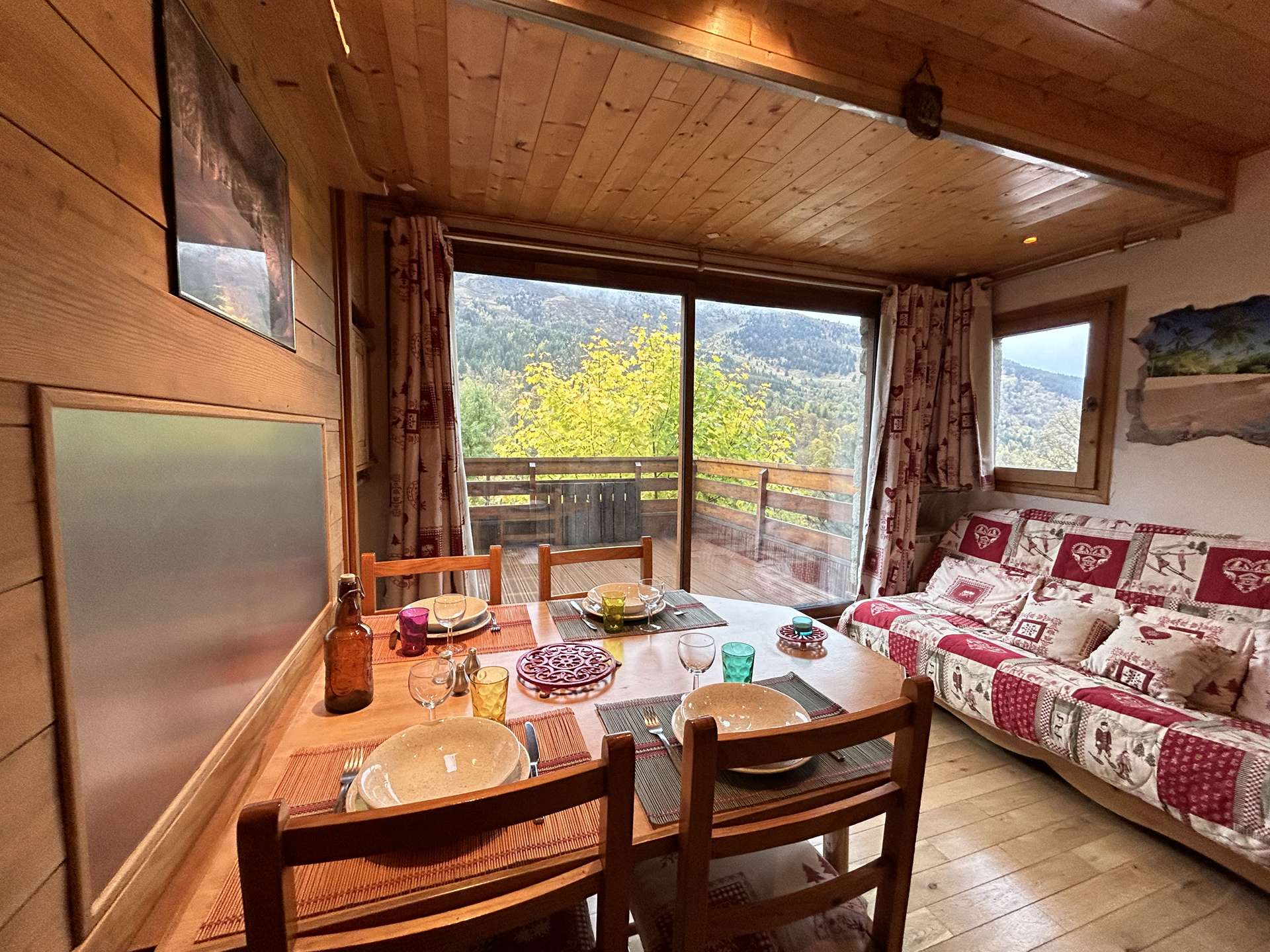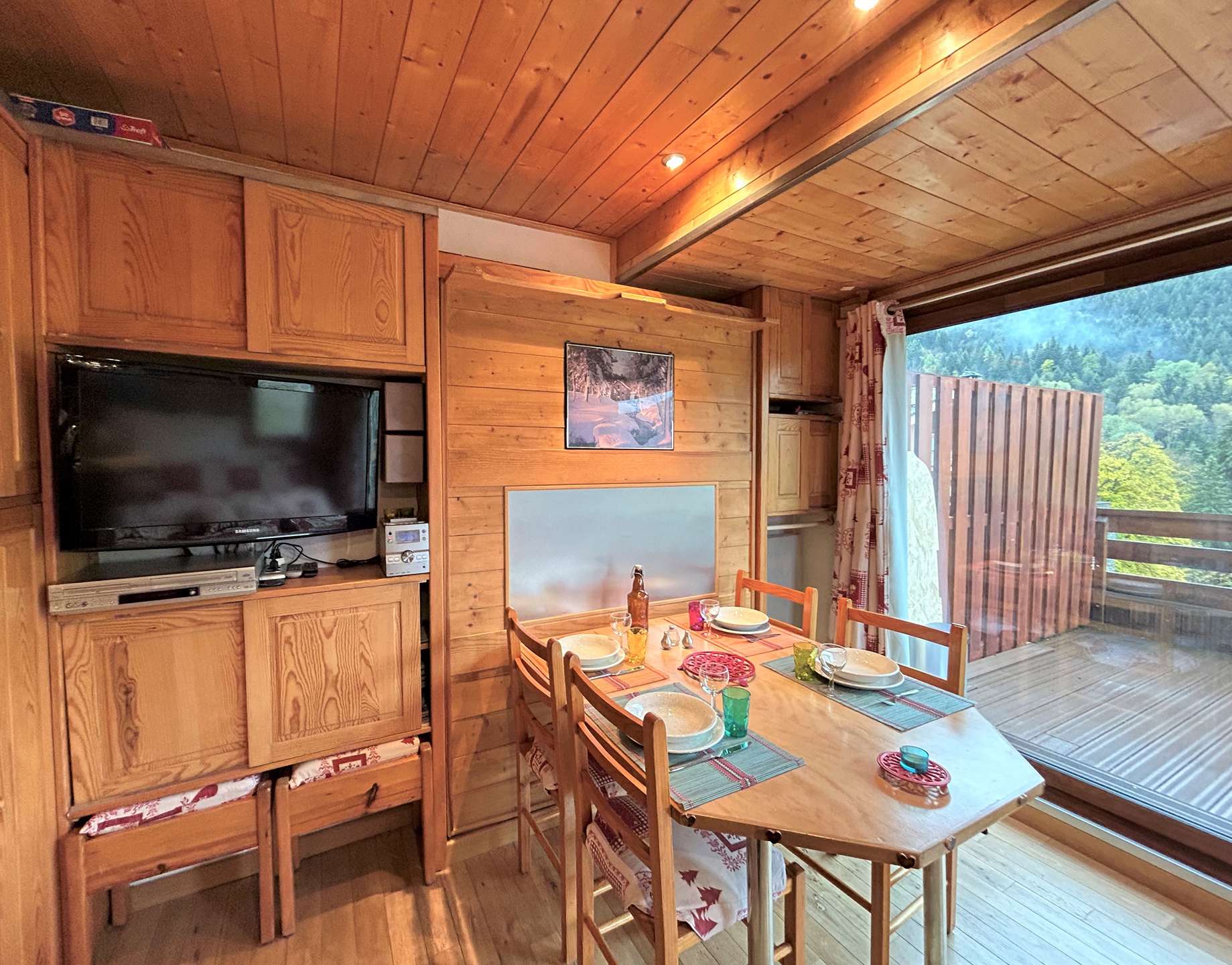 Méribel (73) - Center - Residence Studio apartment - approximately 25m² - up to 4 people The residence "" with summer swimming pool is located at the bottom of the resort center, 150m from shops, restaurants and 100m from the free shuttle stop. It is approximately 200m from the slopes. This pretty studio apartment is located on the ground floor of the residence. It consists of an equipped kitchen open to a living room opening onto a west terrace. You have a dining area, a small living room with sofa, a 140cm mountain bed for 2 people and a television. In the entrance you will find 1 set of enclosed bunk beds, a bathroom with shower and bathtub and toilets. You have a ski locker and a parking space in the residence's garage. The advantages of this apartment: the well-optimized studio space, the private parking space in the residence's garage, the "proximity to amenities" location, the west terrace, the swimming pool (summer only). Cleaning with disinfection is included.
