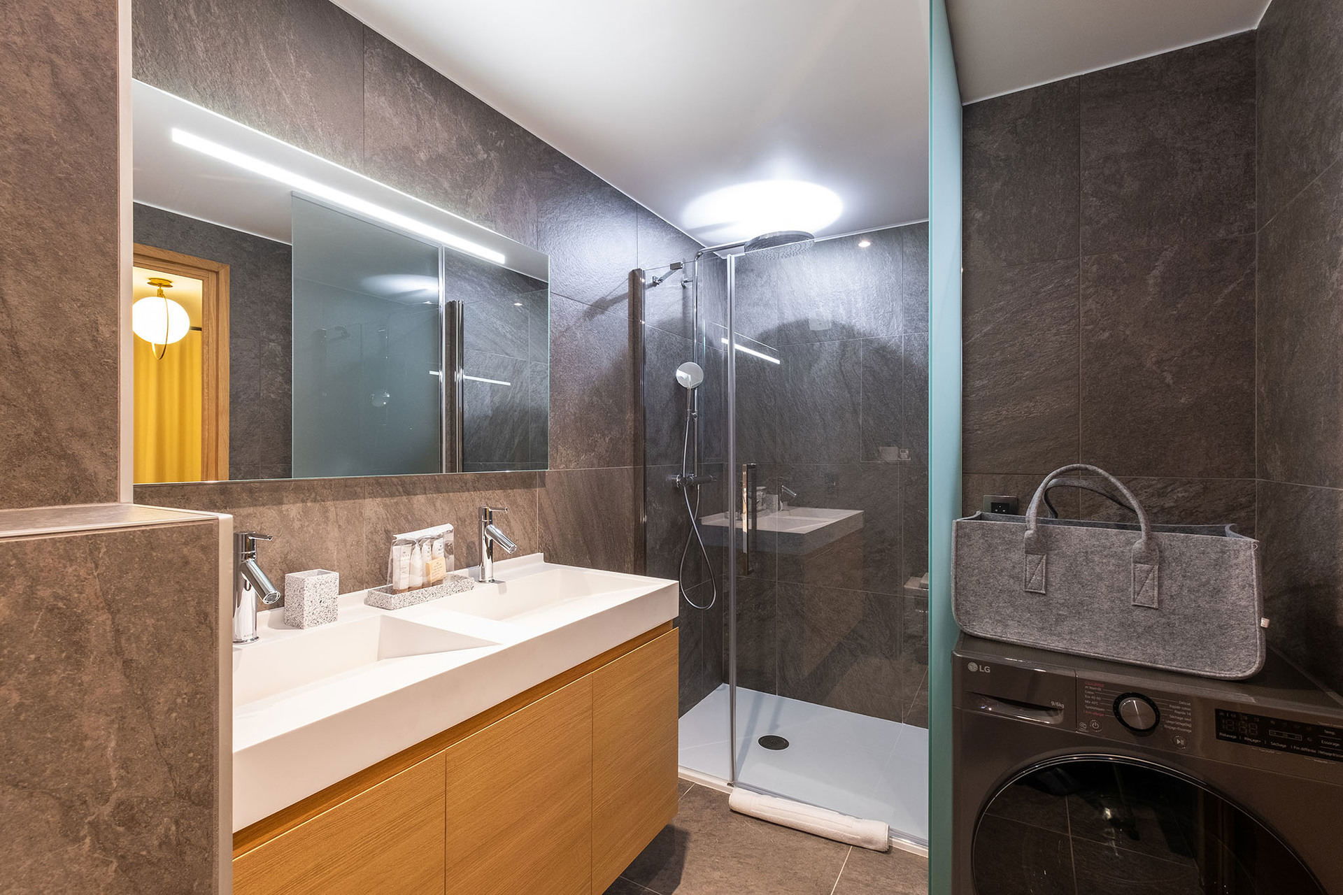 - Suite 2: bedroom with double bed (160*200cm), northwest-facing balcony, TV, shower room with double washbasin, heated towel rail, WC and drying washing machine.