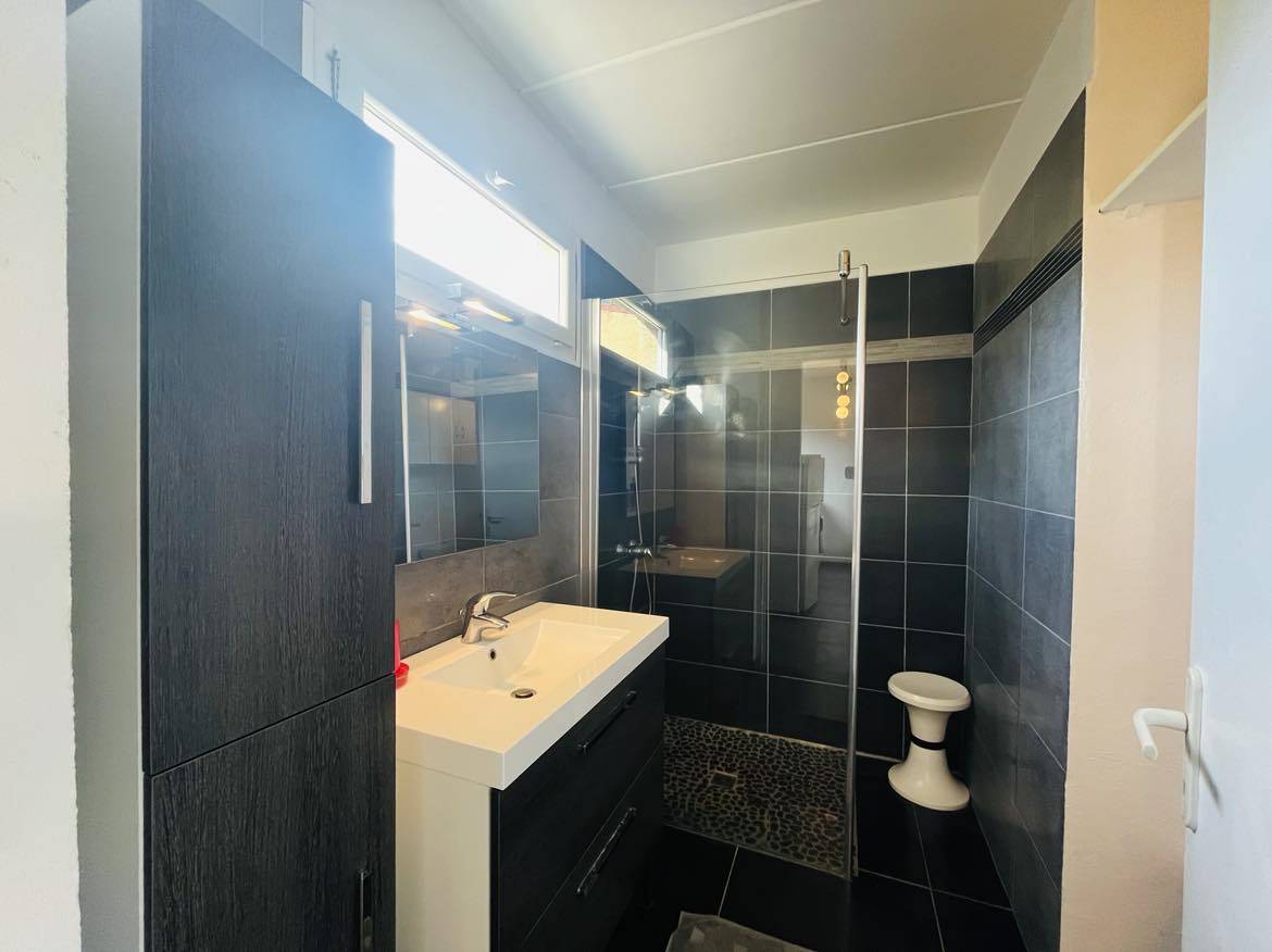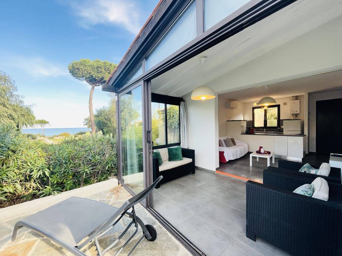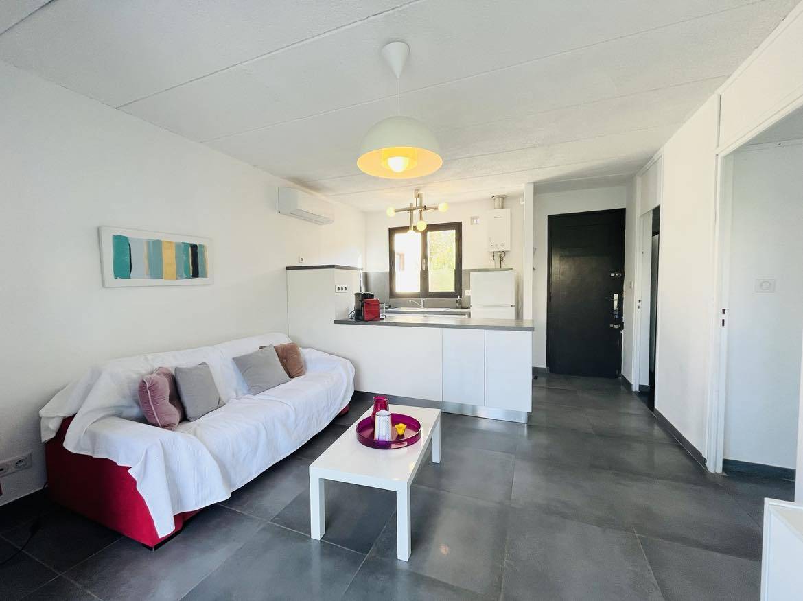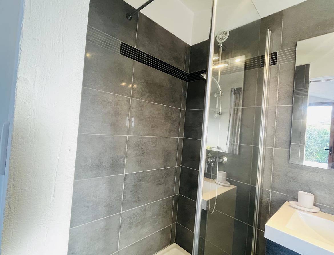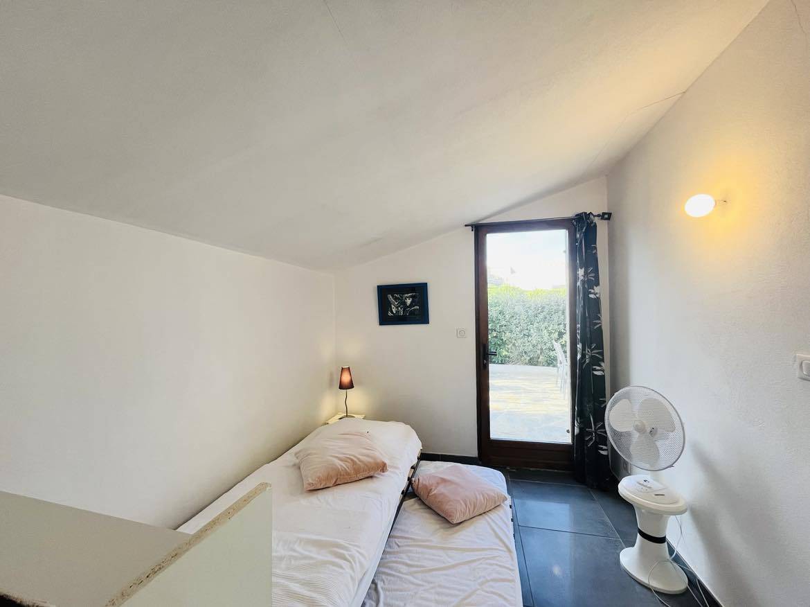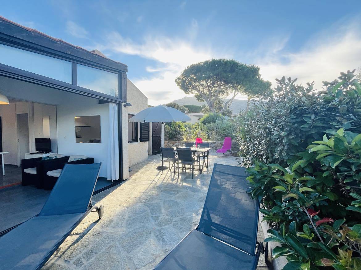 Lumio (2B) - Solane district 3 room apartment - 60 m² - up to 4 people Located in the "Solane" district in the Marine de Sant'Ambroggio, 100 meters from the beach. The apartment, on the ground floor, is composed of an equipped kitchen opening onto a large air-conditioned living room, a bathroom, a bedroom with a double bed, a second bedroom with two beds simple and a bathroom. The best part of this apartment: it has a pretty terrace from where you can fully enjoy your vacation. Thanks to the residence's collective parking lot, it is easily possible to park a vehicle. From the apartment it is possible to directly access the beach on foot. End of stay cleaning, bed linen and towels are included in the price, only tea towels are not provided.