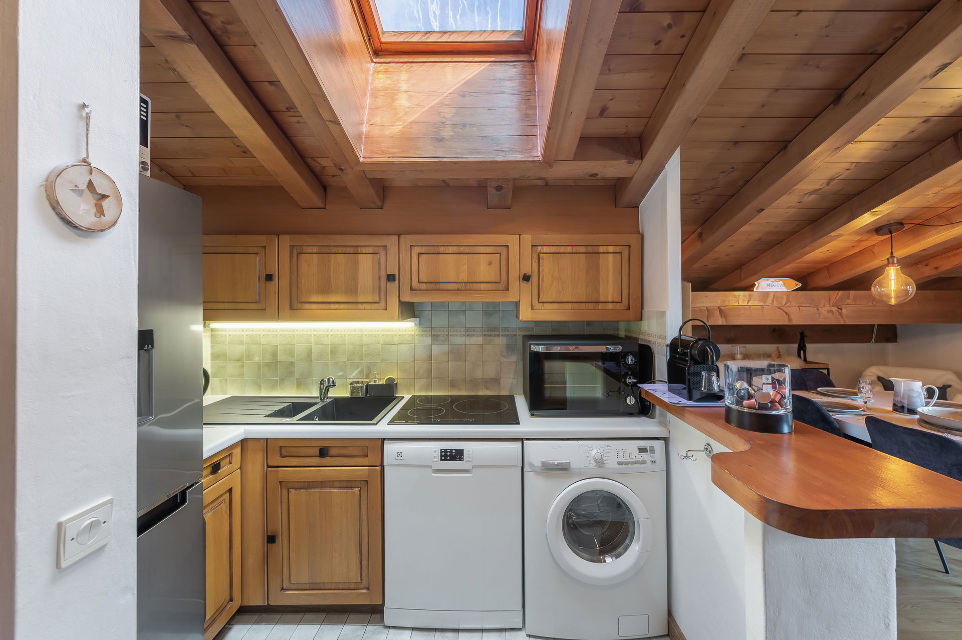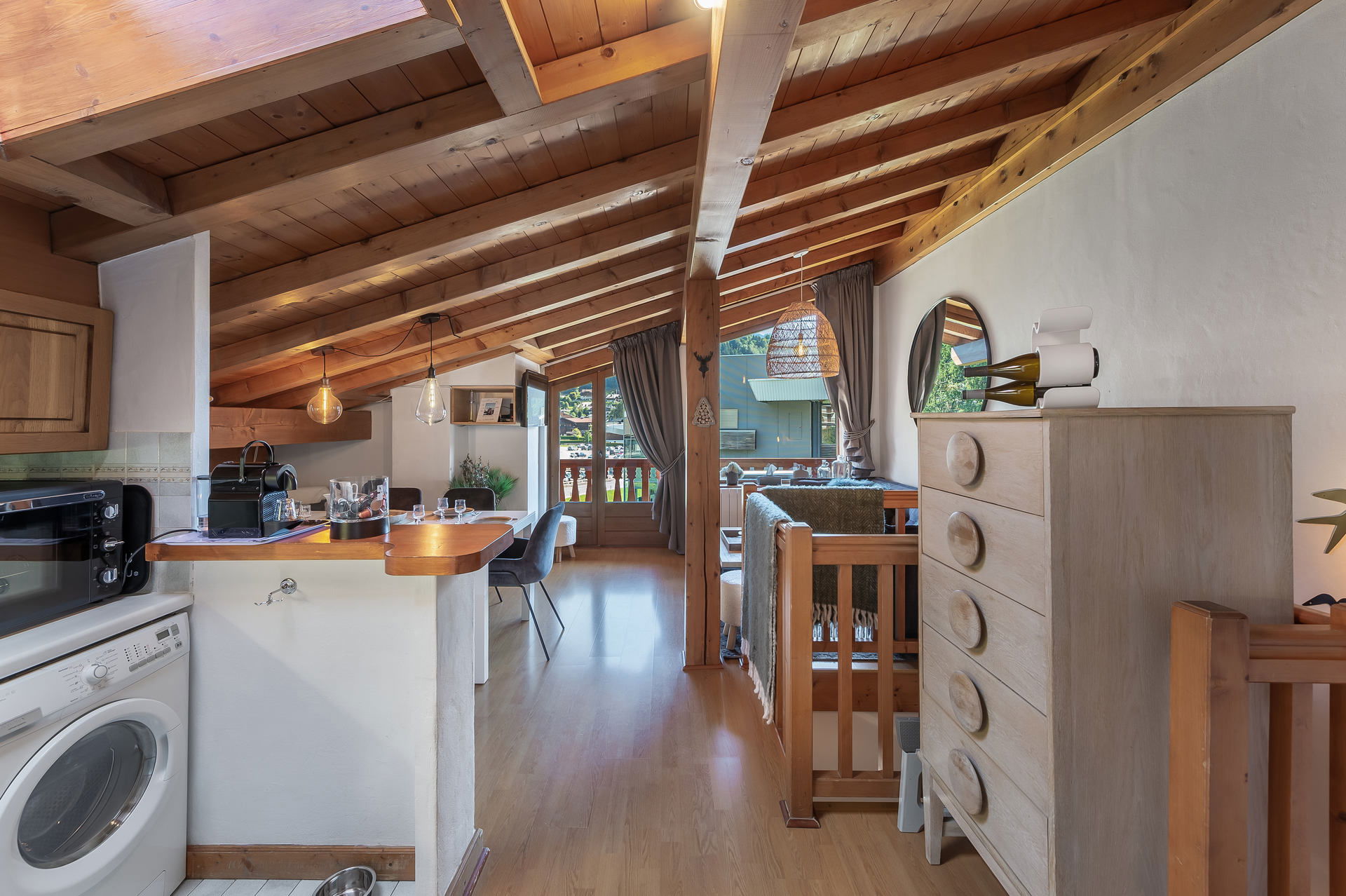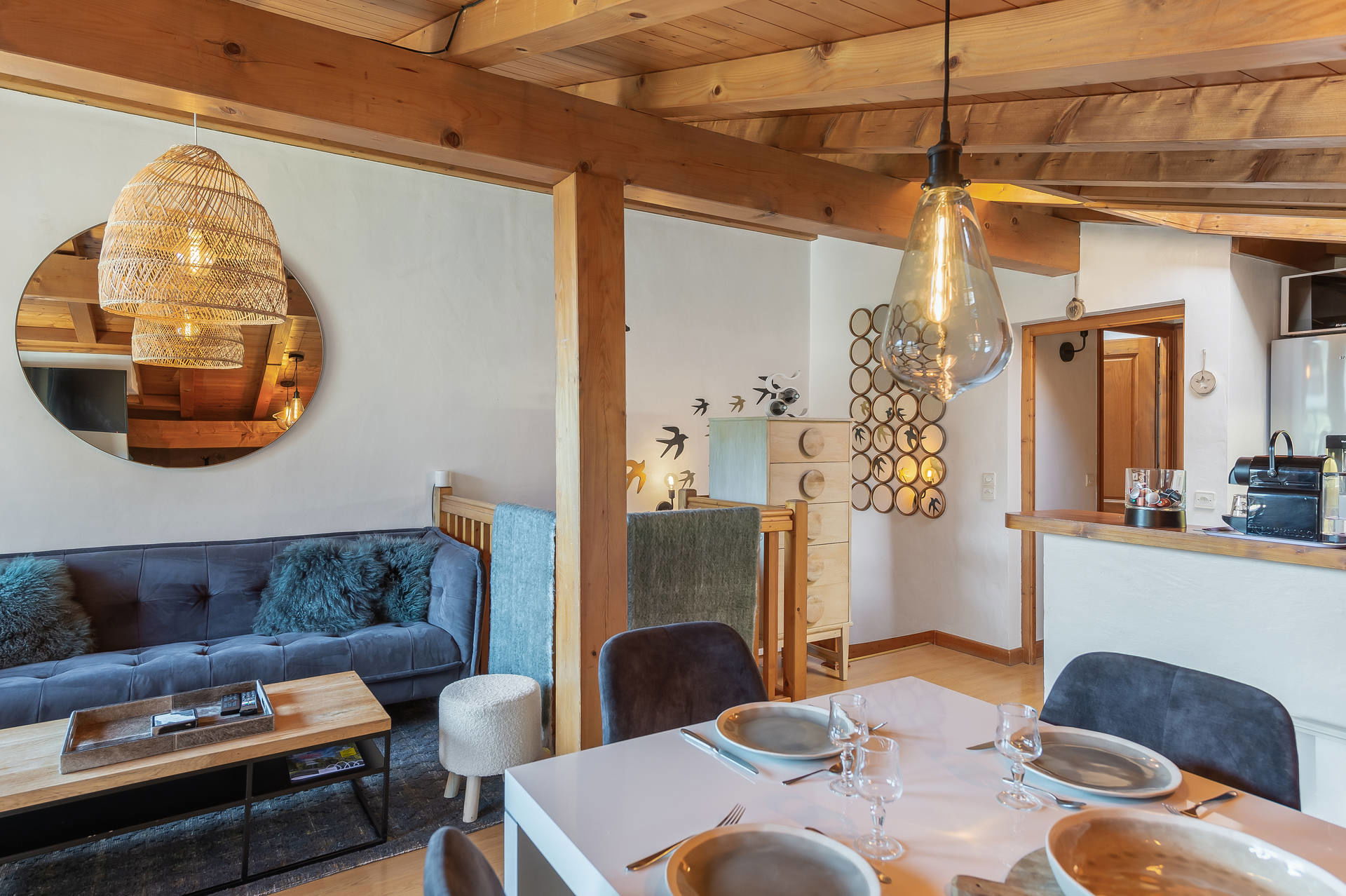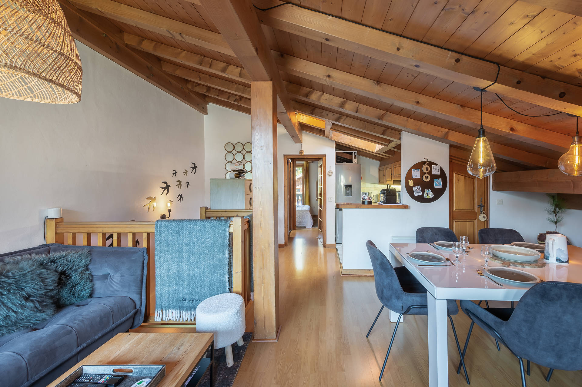 Apartment located in Le Jaillet, 10 minutes' walk from the centre of Megève and close to the "Le Jaillet" ski lift. With a surface area of 80sq.m, it can accommodate 6 adults in a double bedroom. Its cosy living room opens onto a balcony with uninterrupted views. The living area invites you to share a convivial meal at the dining table. Finally, its large sofa offers a moment of softness and une conciergerie to its occupants. The kitchen opens onto the living room.