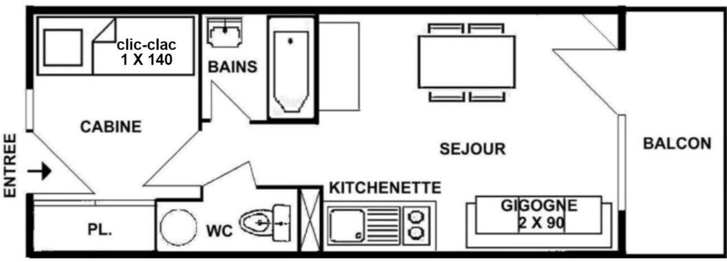 Studio apartment on the 2nd floor of the residence without lift (1.5 floors to climb), south-facing with balcony.