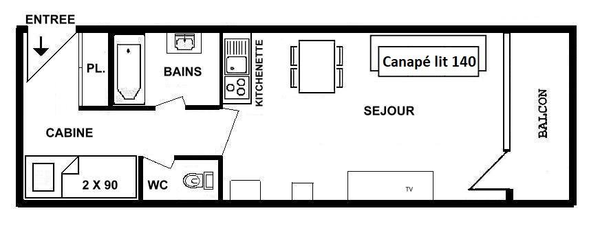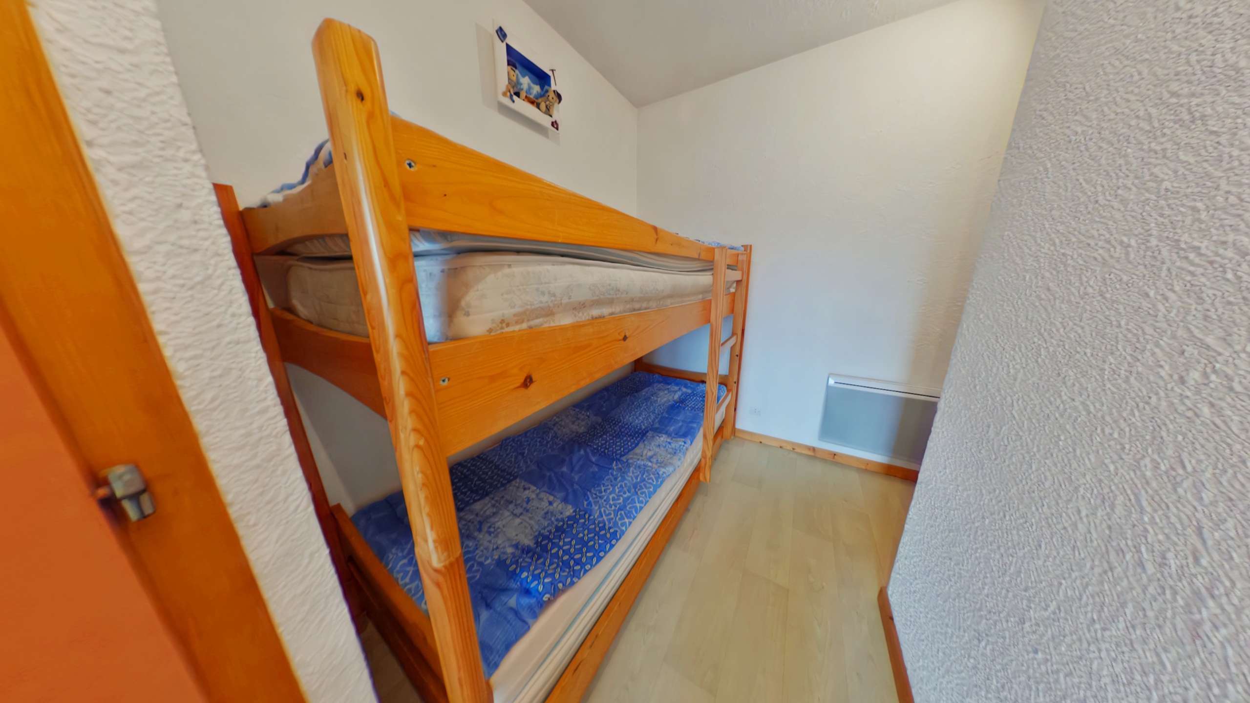 The apartment has a fully-equipped kitchenette, a living room with sofa bed (140cm), an alcove with 2 bunk beds (2x90cm), a bathroom and separate toilet. NB: the top bunk is not suitable for children under 6.