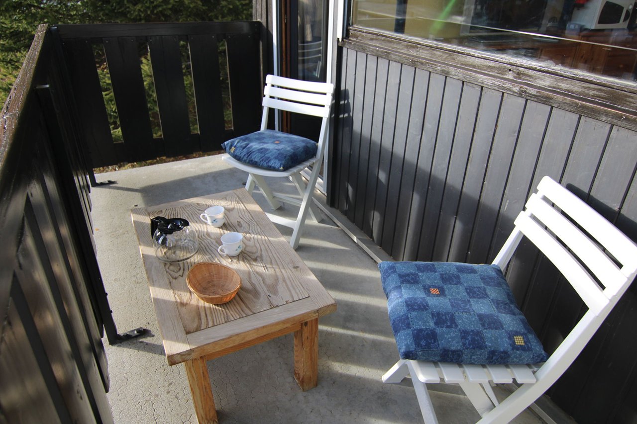 Studio alcove apartment on the raised ground floor (one floor down for access) of the residence, south-facing, with balcony.