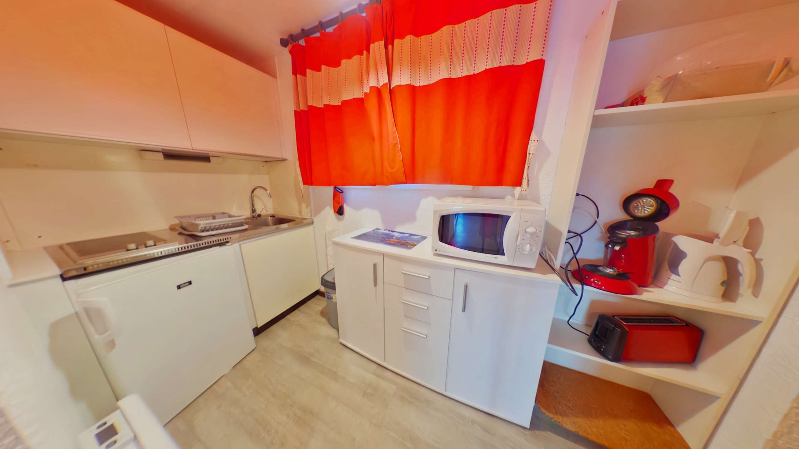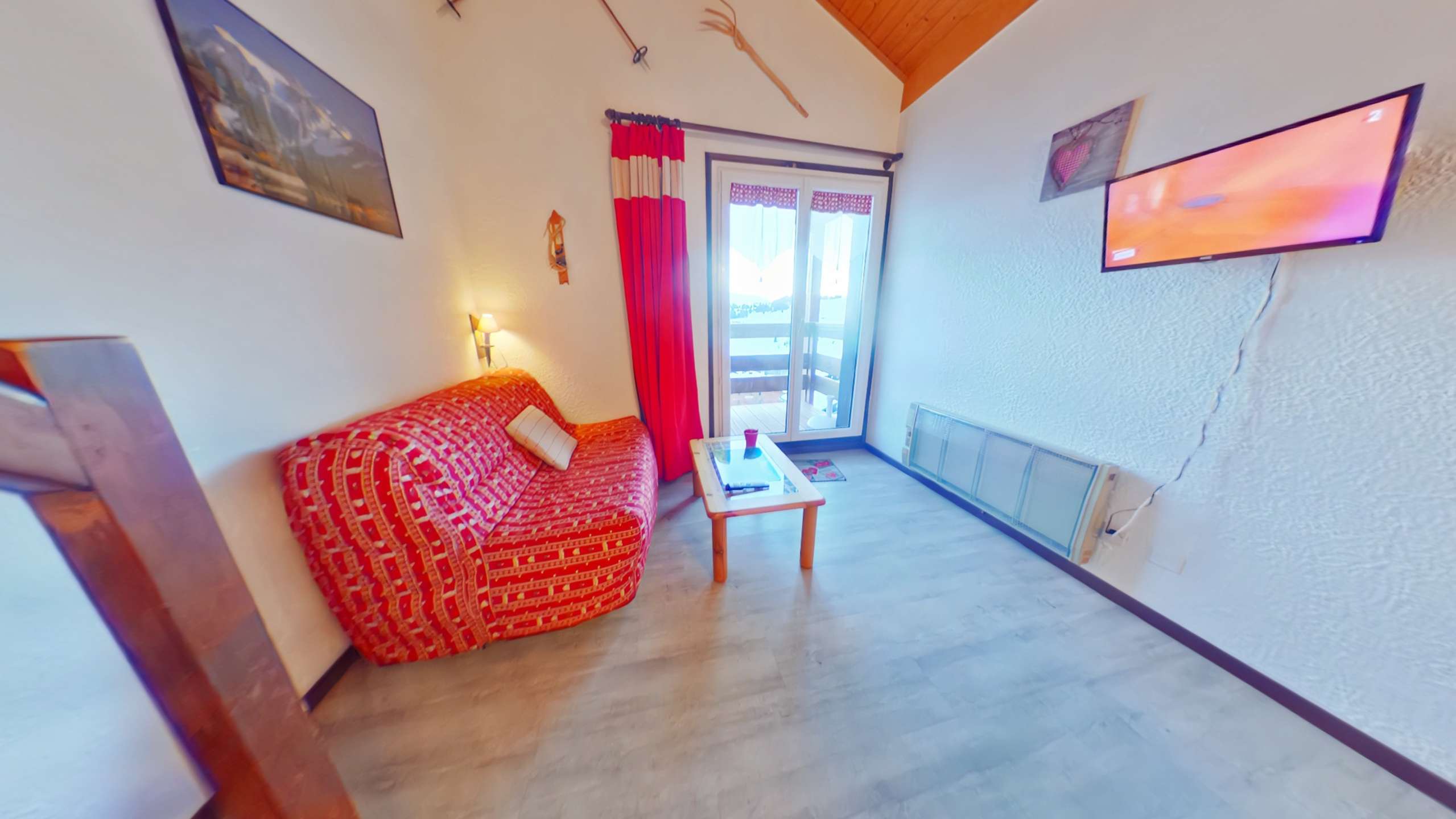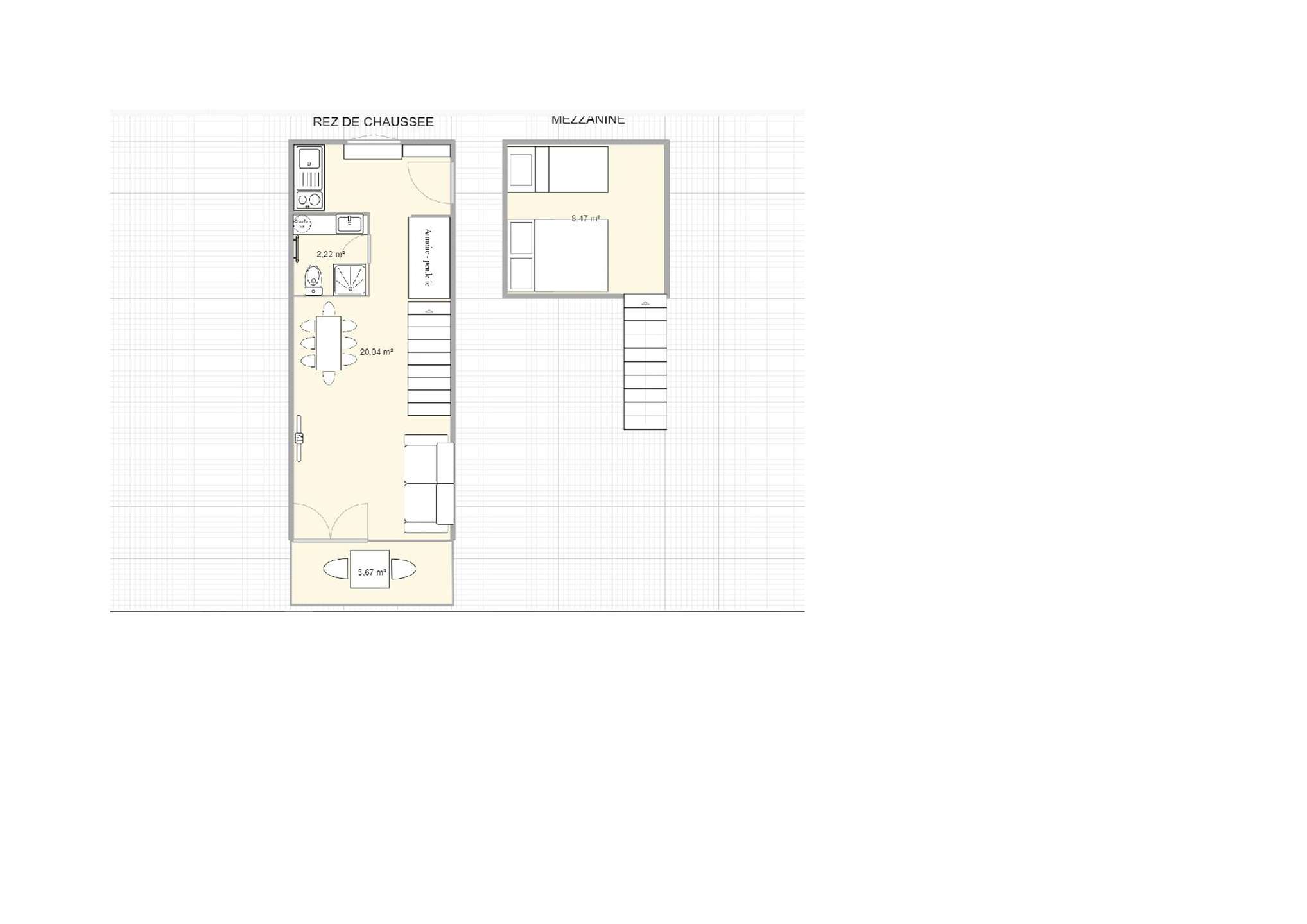 The apartment has a fully-equipped kitchenette, a living room with a sofa bed, a mezzanine with 1 double bed (140cm), 1 single bed (80cm) and a shower room with a separate toilet.