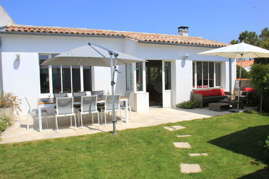 Equipment garden : table, 8 chairs, parasol, sunbeds, 1 garden room with 2 coffee tables, 1 armchair, 1 sofa of 1,80 m with cushions
