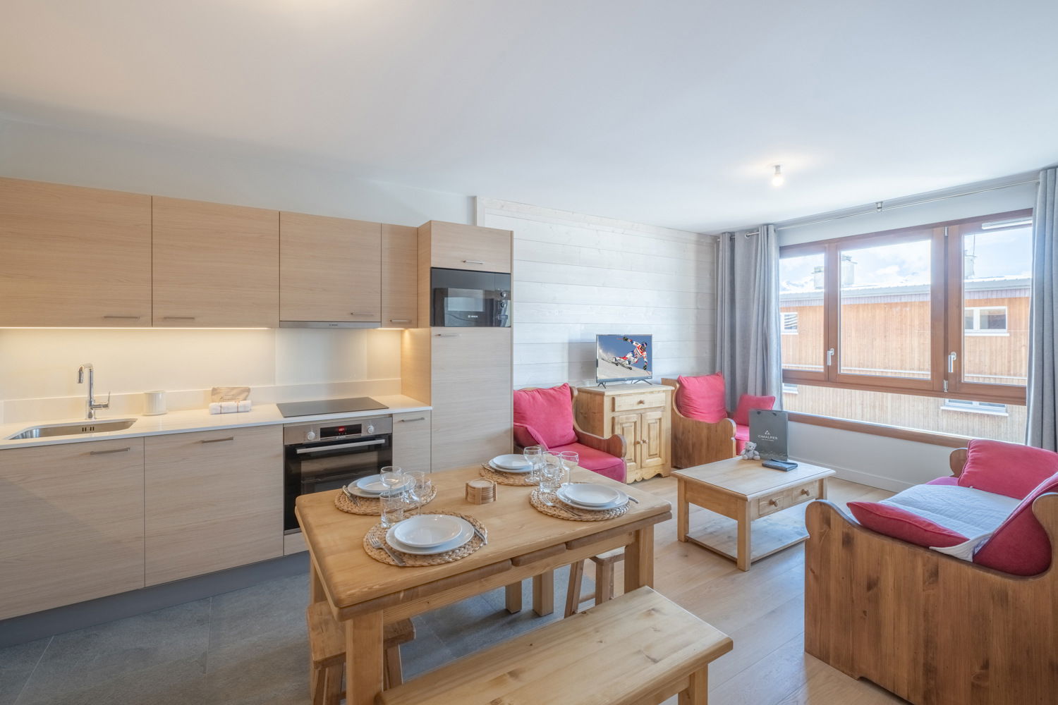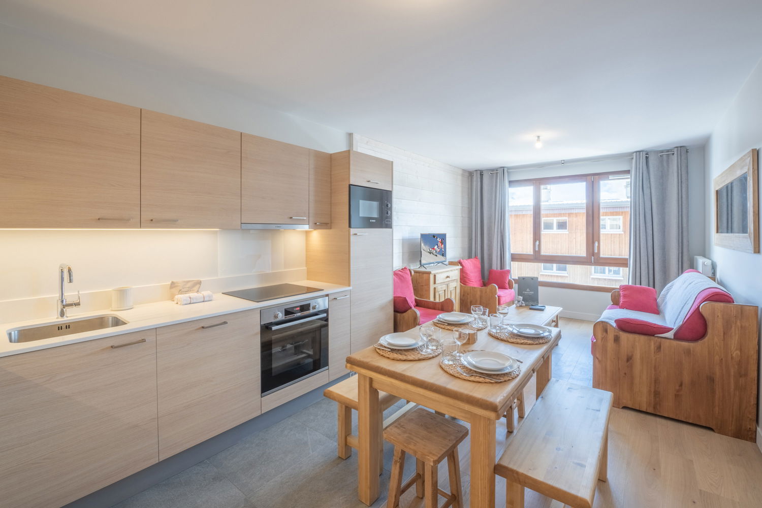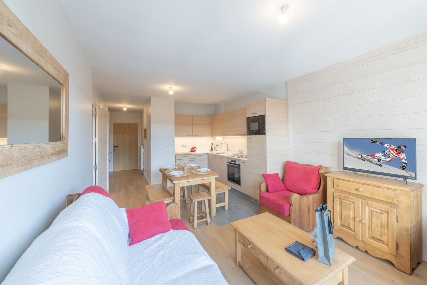 Located in the heart of Vieil Alpe, just 400m from the resort centre, discover the exceptional Fermes de l'Alpe residence and this very attractive 49m² flat for 2 adults and 2 children. Close to the ski slopes and all the amenities you need to make the most of the resort.