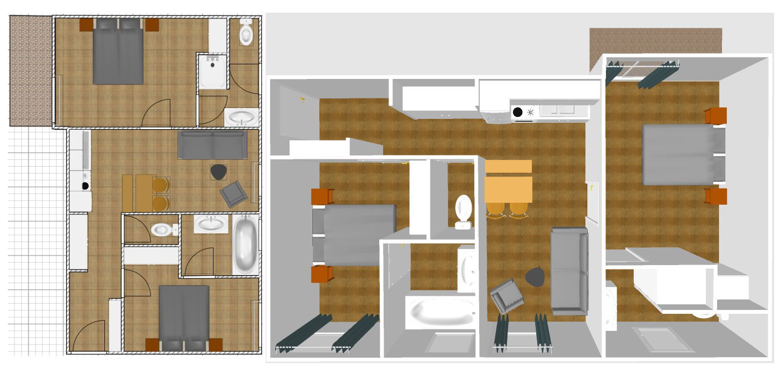 3 rooms of 60 m2 which can accommodate 4 people On the ground floor of the...