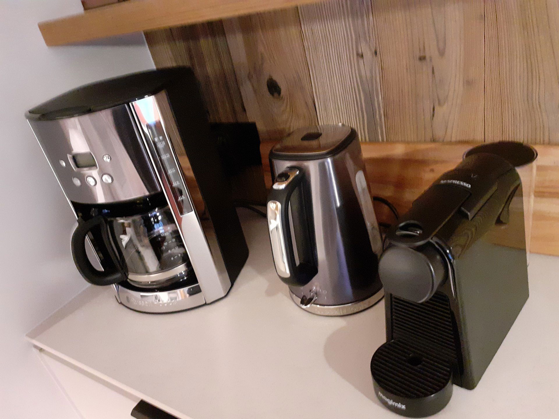Small kitchen appliances: coffee machine nesspresso Krupps, kettle, toaster, soup mixer