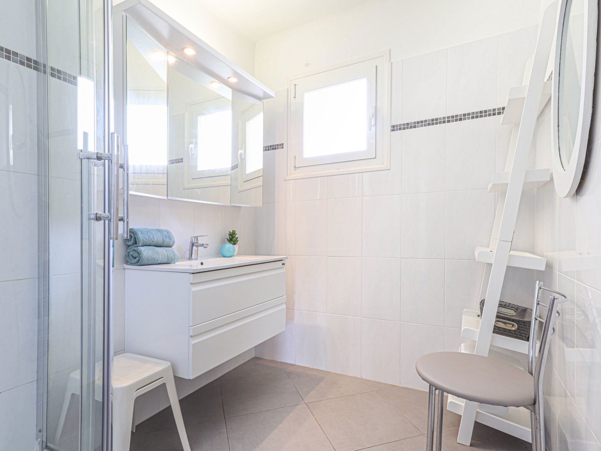 3-room apartment 65 m2 on 4th floor, west facing position. Bright, comfortable furnishings: living/dining room 20 m2 with TV (flat screen). Exit to the terrace. 1 room 18 m2 with 1 french bed (160 cm, length 200 cm), air conditioning. Exit to the terrace. 1 room 12 m2, window onto the courtyard with 2 beds (90 cm, length 190 cm). Kitchen (4 hot plates, oven, dishwasher, microwave, electric coffee machine). Exit to the balcony. Bathroom, sep. WC. Heating. Terrace 10 m2, roofed. Terrace furniture. Distant view of the sea and the resort. Facilities: washing machine, hair dryer. Internet (WiFi, free). Please note: 1 small pet/ dog allowed. Smoke alarm. Offer by a private individual according to Art. 155, IV of CGI. 061040009633O