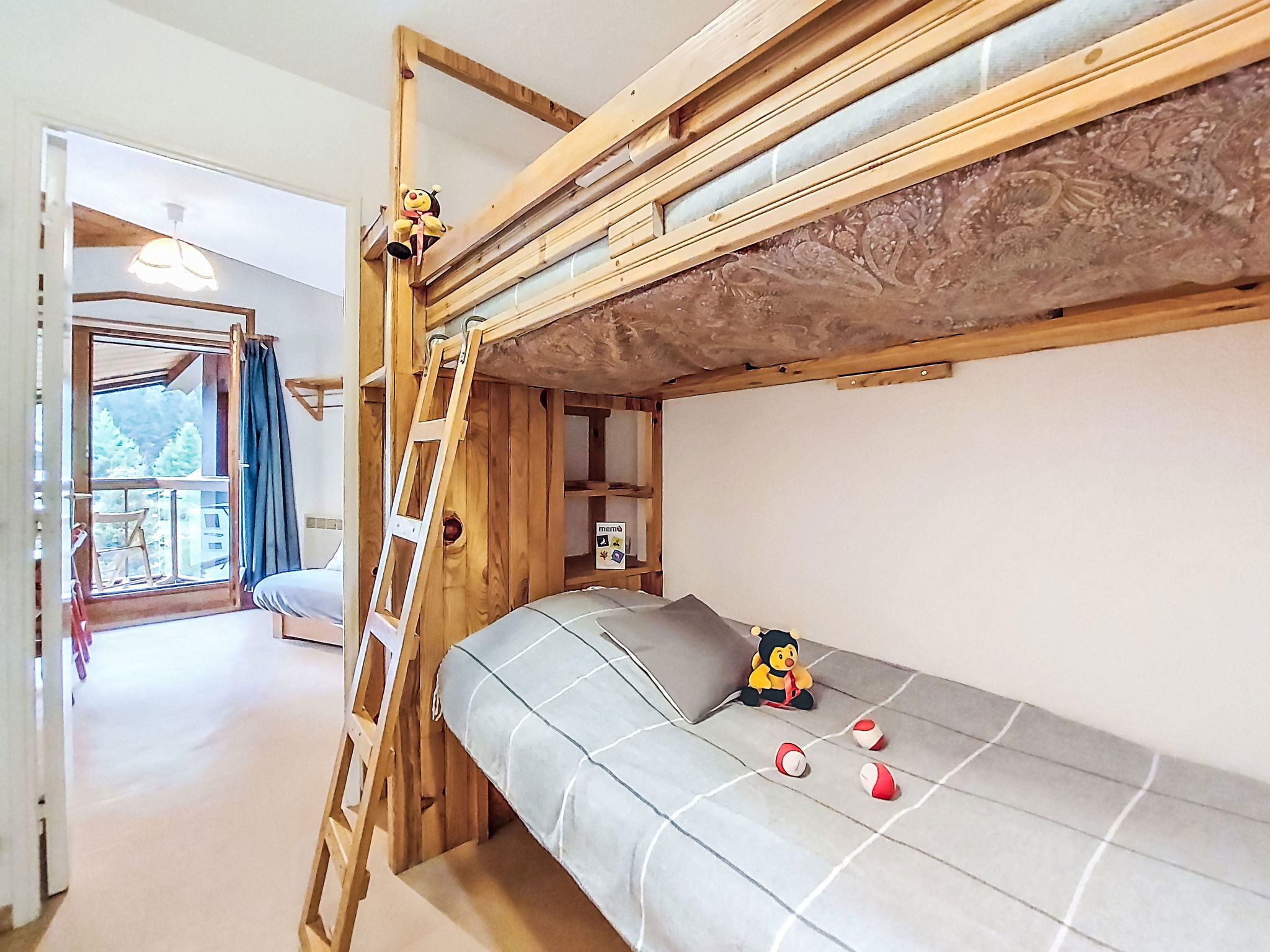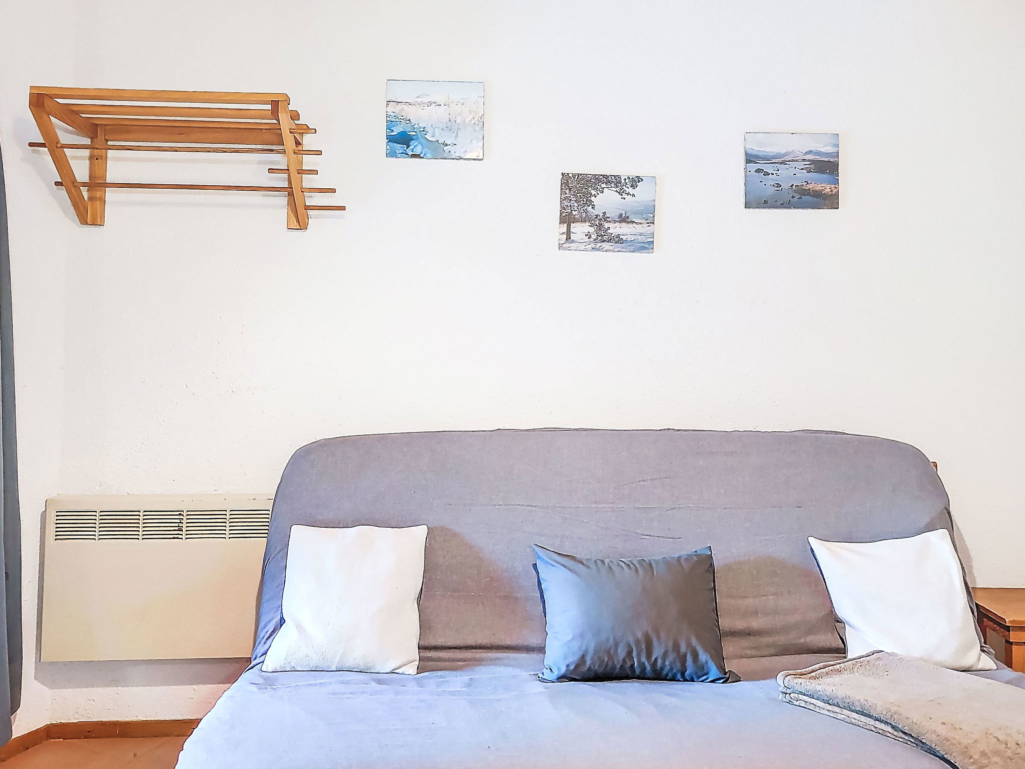 2-room apartment 32 m2 on 4th floor. Living/dining room with 1 double sofabed and TV. Exit to the balcony. 1 room with 1 french bed. Entrance hall with 1 x 2 bunk beds. Kitchenette (2 hot plates, oven, toaster, kettle, electric coffee machine, combination microwave). Bathroom, sep. WC. Electric heating. Balcony 3 m2, south-west facing position. Balcony furniture. View of the mountains. Facilities: baby cot. Internet (WiFi, extra). Please note: TV only FR. Smoke alarm. Building F. Scaffolding will be present on the facade of the building in August 2023. 74085 000459 OM