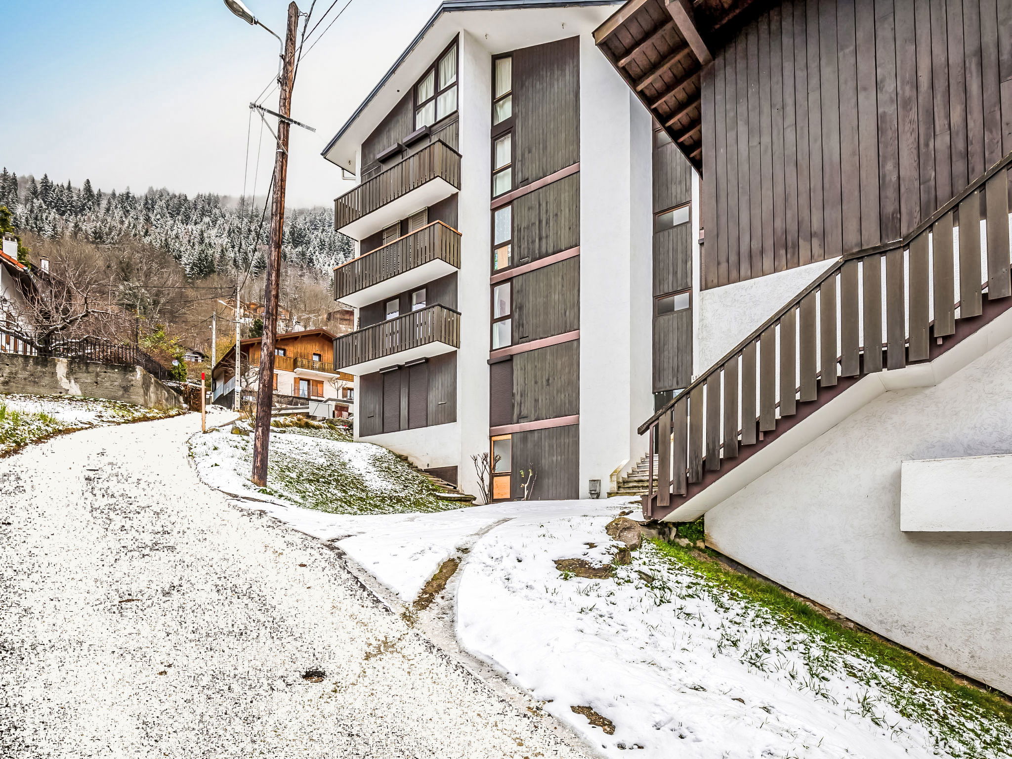 Residence "Le Sporting", 3 storeys. On the outskirts, 600 m from the centre of St Gervais, 8.7 km from the skiing area. Public parking 350 m. Shop 500 m, bus stop "La côte du Parc" 90 m, outdoor swimming pool 300 m. Tennis 300 m, skisport facilities 1.2 km. Nearby attractions: patinoire 250 m. Well-known ski regions can easily be reached: Evasion Mont Blanc 1.2 km.