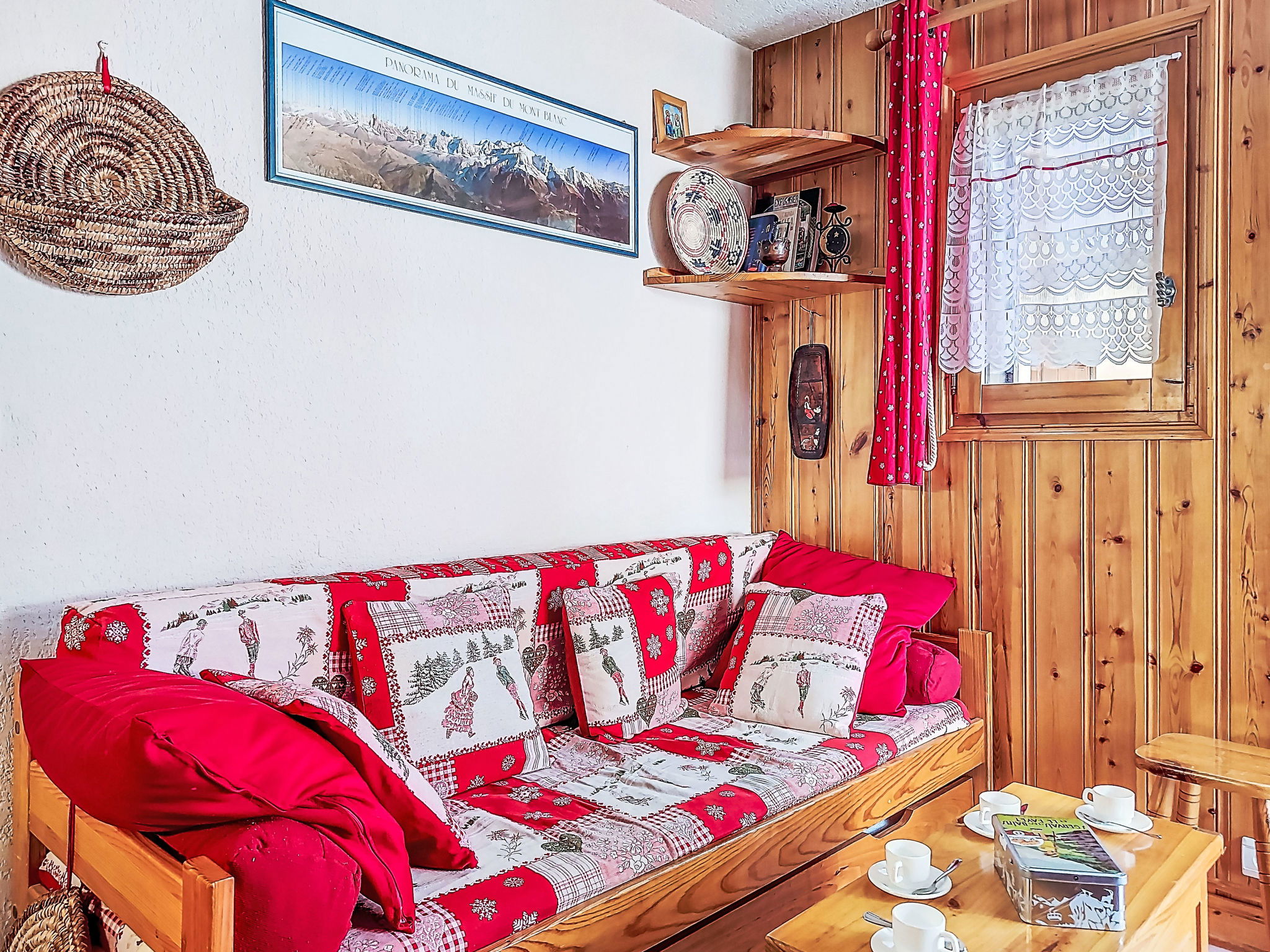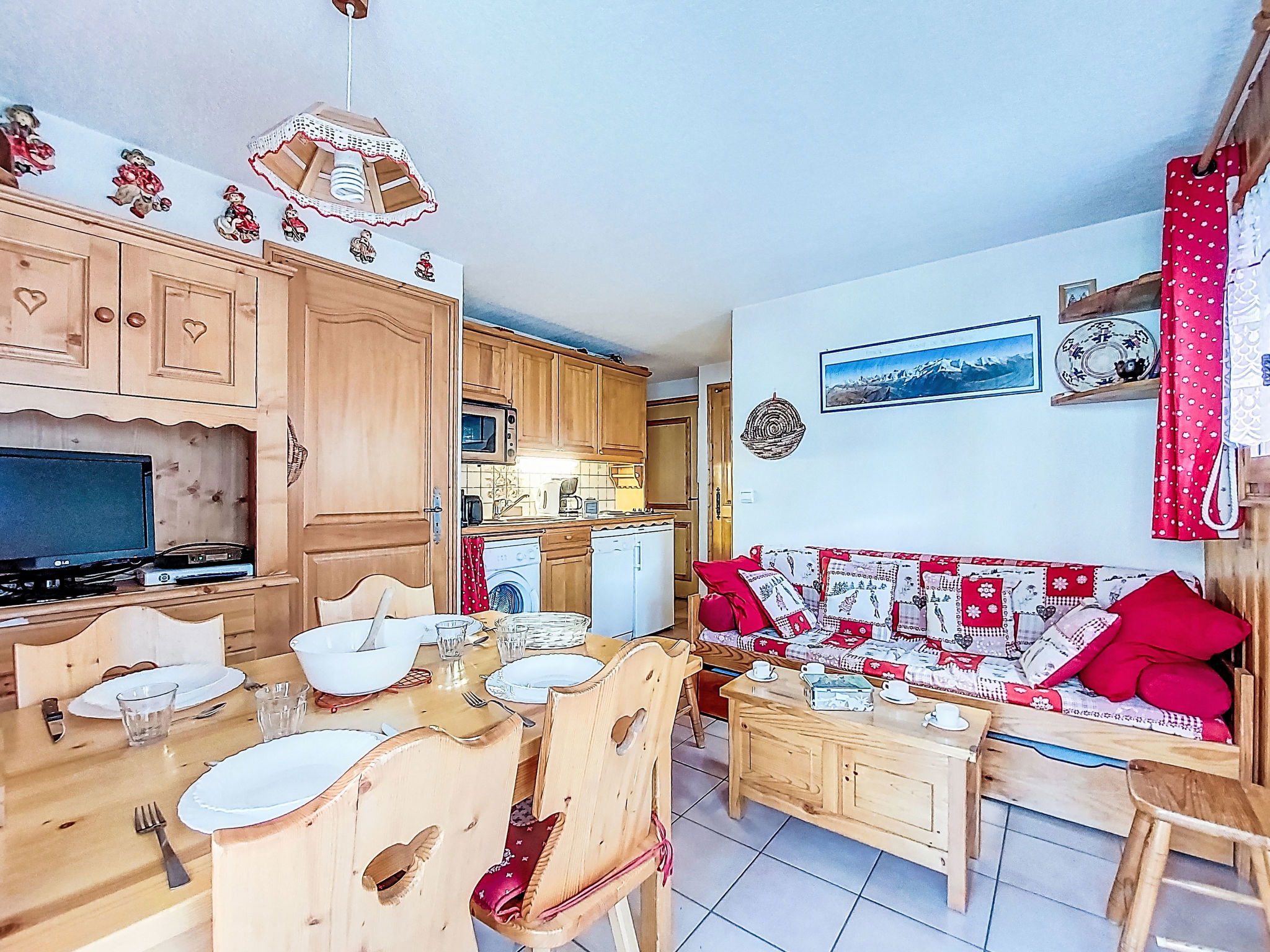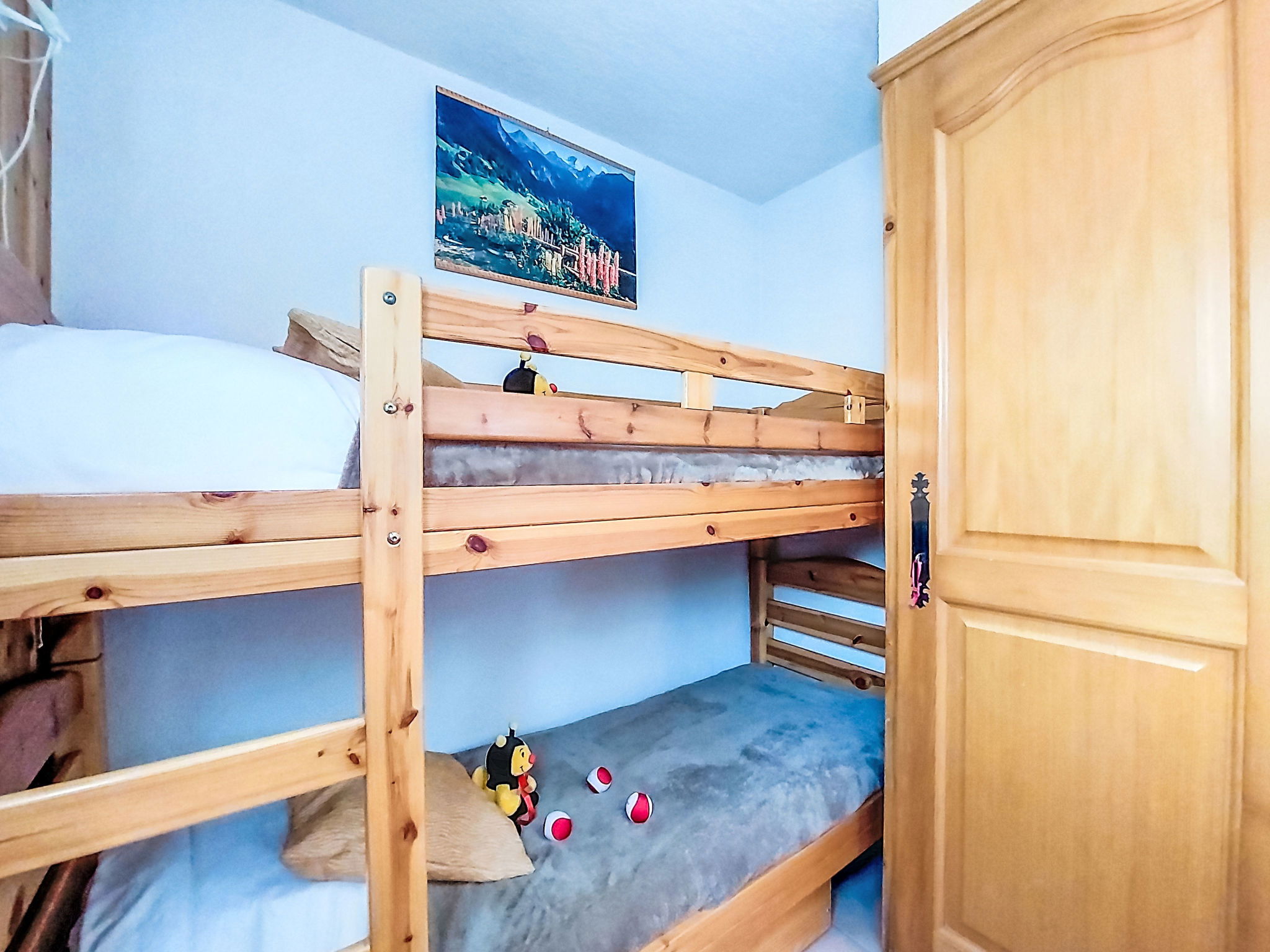 "Jardins Alpins", 2-room apartment 32 m2 on 2nd floor. Living/dining room with TV (flat screen). Exit to the balcony. 1 small room with 1 french bed (1 x 140 cm, length 190 cm). Sleeping alcove with 1 x 2 bunk beds (80 cm, length 190 cm). Open kitchen (4 hot plates, oven, dishwasher, toaster, kettle, electric coffee machine, Capsules for coffee machine (nespresso) extra, raclette grill). Bathroom, sep. WC. Electric heating. Small balcony, north-west facing position. Facilities: washing machine. Internet (WiFi, free). Garage space n 4 (1 car). Suitable for families. Instead of an enclosed bedroom, some sleeping areas are located in an open-plan area (gallery, alcove, etc.).