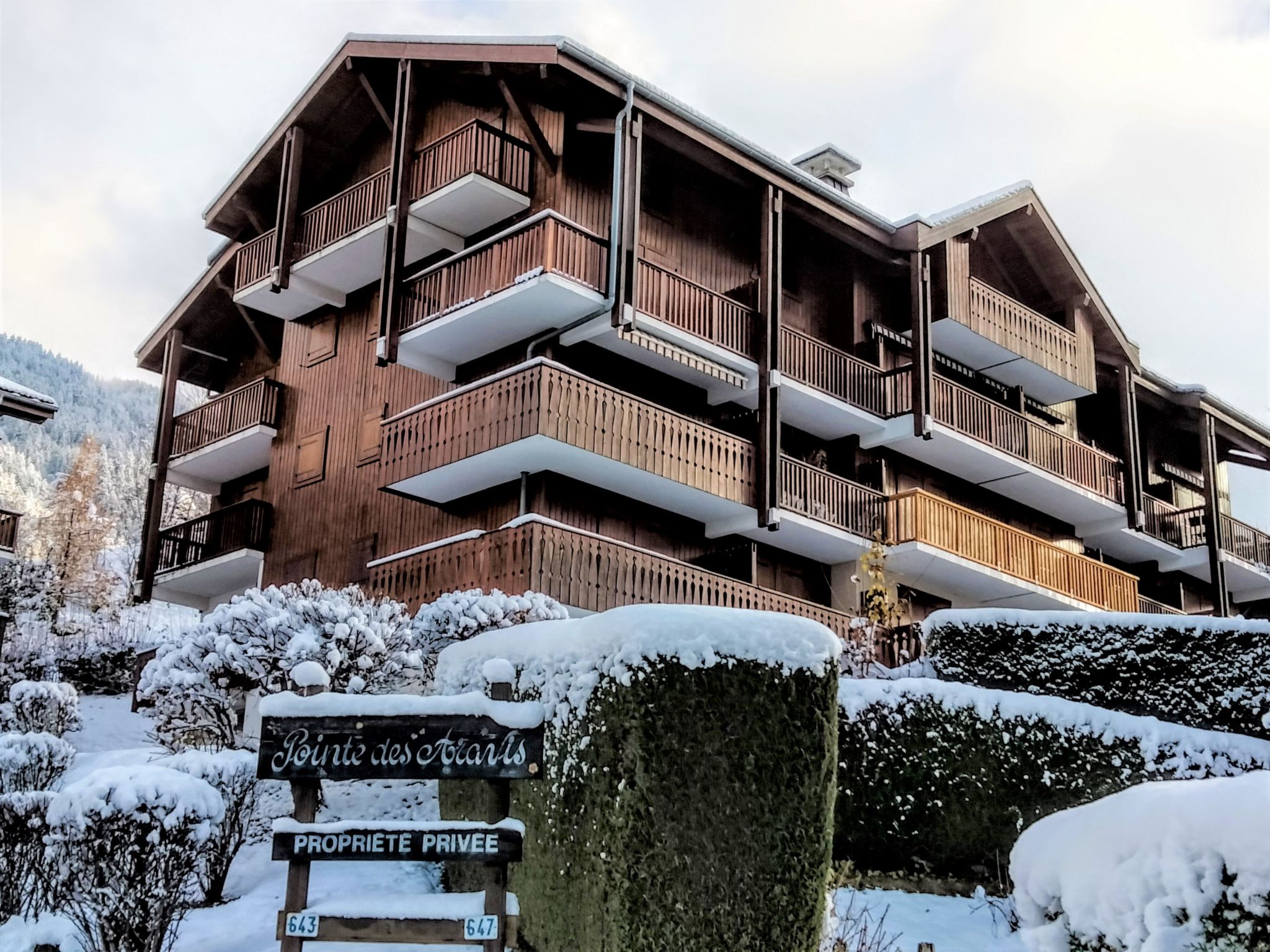 Residence "Pointe des Aravis", 4 storeys. On the outskirts, 800 m from the centre, in a quiet position, 9.6 km from the skiing area. In the house: storage room for skis. In Winter: please take snow chains. Parking. Shop, restaurant 500 m, bus stop "Le Pont" 450 m, railway station "Saint Gervais- Le Fayet" 4.3 km, outdoor swimming pool 1.6 km, thermal baths "Thermes de Saint Gervais" 4.7 km. Tennis 1.6 km, minigolf 1.6 km, gondola lift 1.8 km, ski bus stop 100 m, ice rink 1 km. Well-known ski regions can easily be reached: Evasion Mont-Blanc. Please note: car recommended, no lift. Ski bus (free of charge).