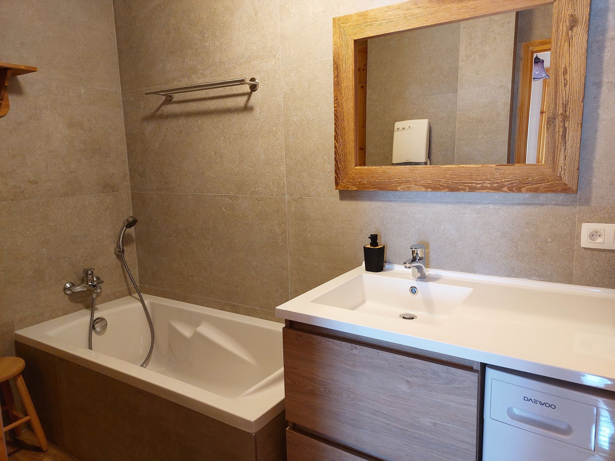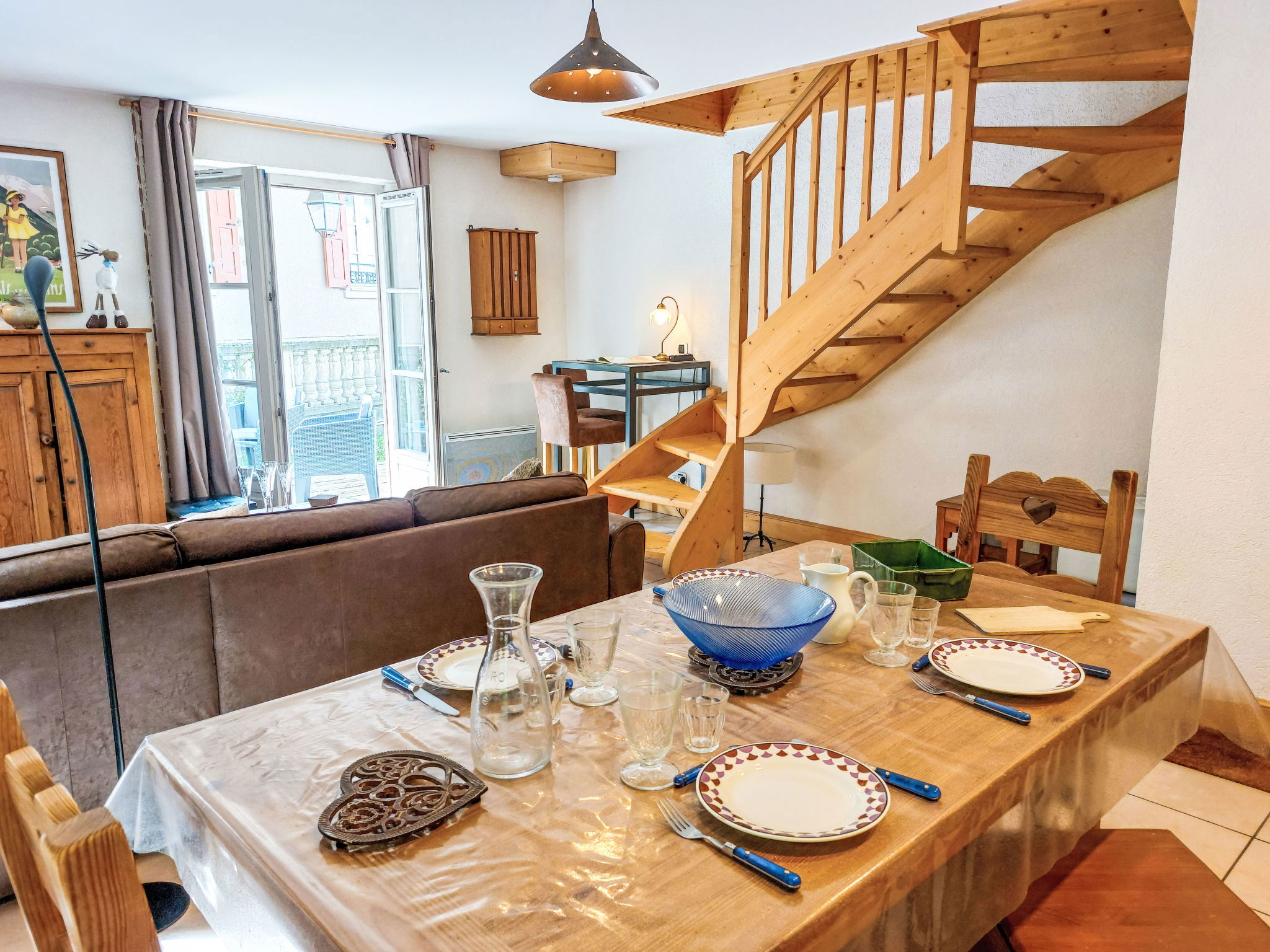 "Conseil 1", 3-room maisonette 60 m2 on 1st floor. Entrance hall. Living/dining room with TV and flat screen. Exit to the terrace. Kitchen (oven, dishwasher, 4 ceramic glass hob hotplates, toaster, kettle, electric coffee machine). Sep. WC. Upper floor: 1 room with 1 french bed (140 cm, length 190 cm). 1 room with 1 double sofabed (140 cm, length 190 cm), shower. Hip bath/WC. Electric heating. Terrace, south facing position. Facilities: washing machine, iron. Internet (WiFi, extra). Garage, height 200 cm, width 290 cm. Please note: non-smokers only. TV only FR. Smoke alarm.
