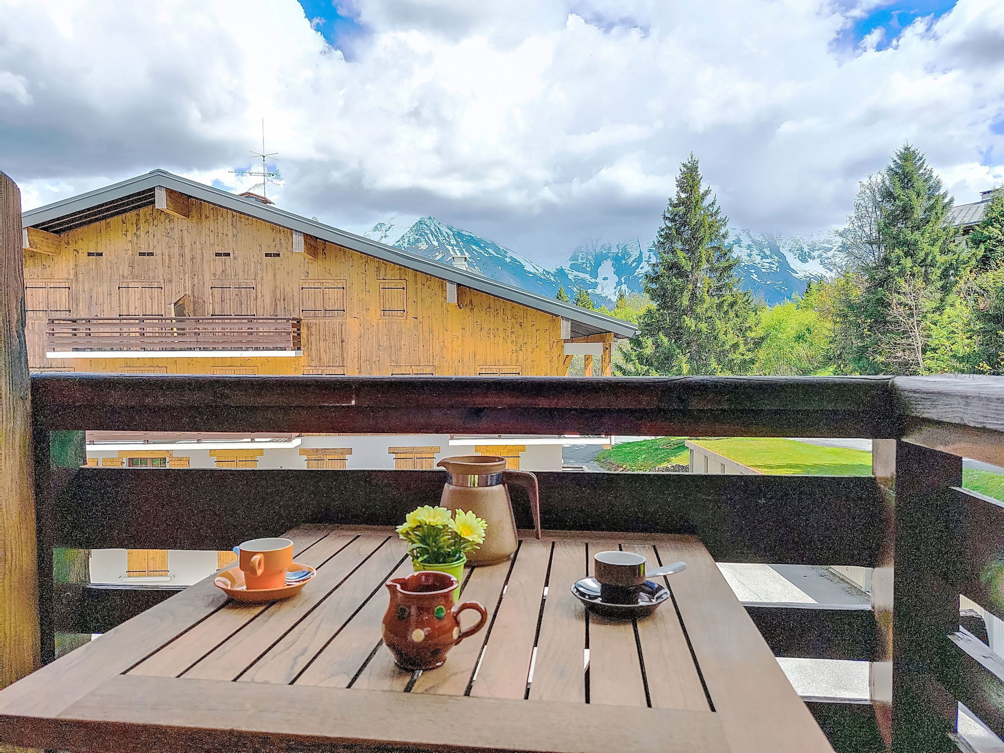 8 km from St Gervais: The La Christaz residence consists of 5 chalets divided into several apartments. Residence "La Christaz", 4 storeys. In the district of Le Bettex, outside the resort, 8 km from the centre of St Gervais, in a quiet, sunny position, 650 m from the skiing area. For shared use: swimming pool (12 x 6 m, seasonal availability: 01.Jul. - 30.Aug.). In the house: storage room for skis. In Winter: please take snow chains. Parking. Grocery 150 m, restaurant 600 m, bus stop "Le Gollet" 3.1 km, railway station "Saint-Gervias les Bains le Fayet" 12 km, outdoor swimming pool 9 km, thermal baths "Thermes de Saint-Gervais" 12 km. Gondola lift 700 m, skisport facilities, ski bus stop 100 m, ski-kindergarten, sled run, cross country ski track 500 m, ice rink 9 km. Well-known ski regions can easily be reached: Domaine Evasion Mont-Blanc 500 m. Please note: car recommended. Ski bus (free of charge).