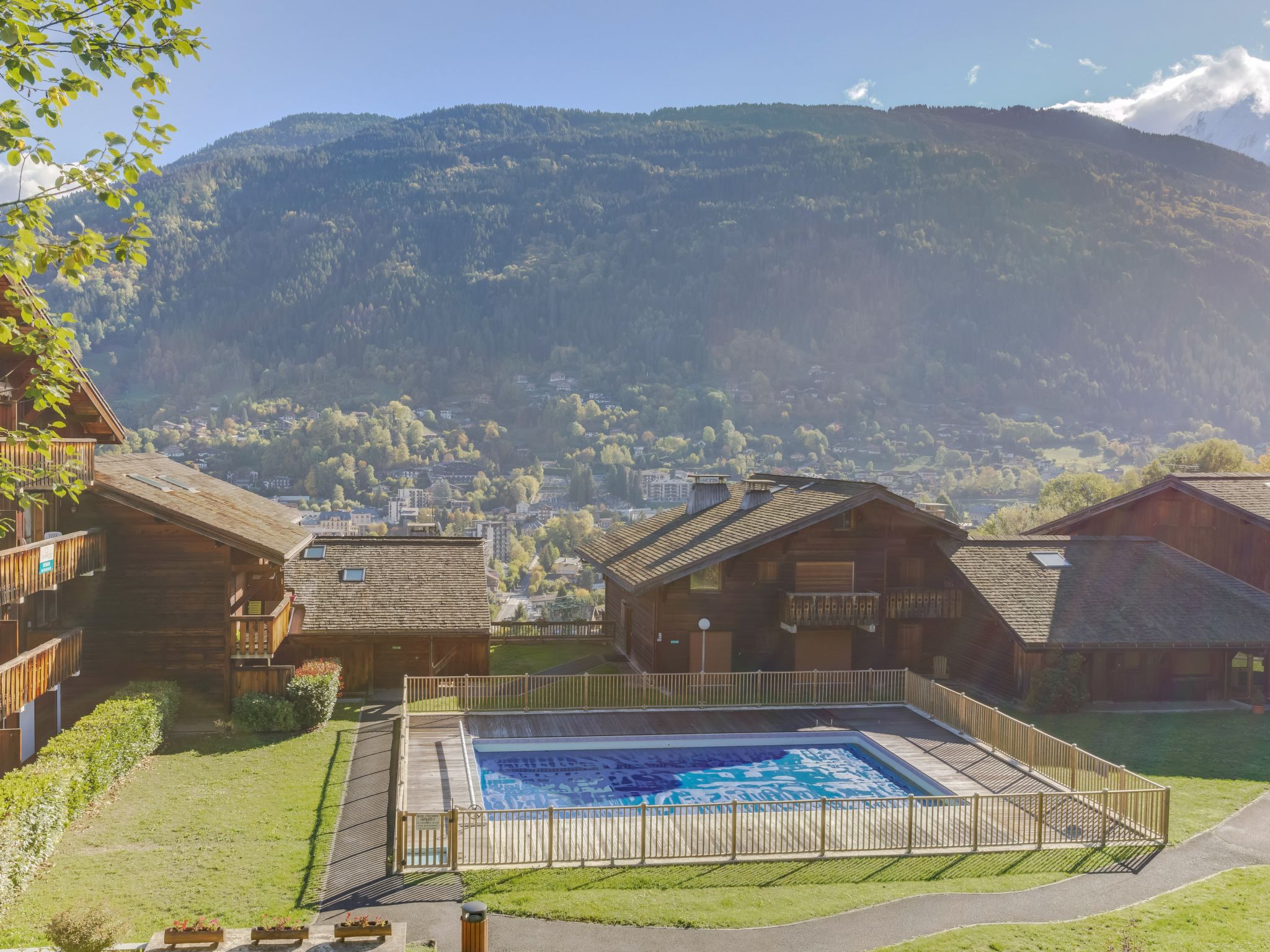 Residence "Les Grets", 2 storeys. Outside the resort, 2 km from the centre of St Gervais, 6.8 km from the skiing area, located by a road. For shared use: swimming pool heated (12 x 7 m, depth 100 - 220 cm, seasonal availability: 01.Jul. - 31.Aug.). In Winter: please take snow chains. Parking on the premises. Shop 1.8 km, supermarket 1.8 km, restaurant 1.8 km, 25 minute walk to the centre, bus stop "" 280 m, outdoor swimming pool 2.3 km, thermal baths "Thermes de Saint Gervais" 6.8 km. Tennis 2.3 km, minigolf 2.3 km, gondola lift 1.5 km, ski bus stop 280 m, ice rink 2 km. Well-known ski regions can easily be reached: Evasion Mont Blanc. Please note: car recommended. Ski bus (free of charge). In case of good snow conditions, the house is accessible on skis. Additional accommodations can be booked.