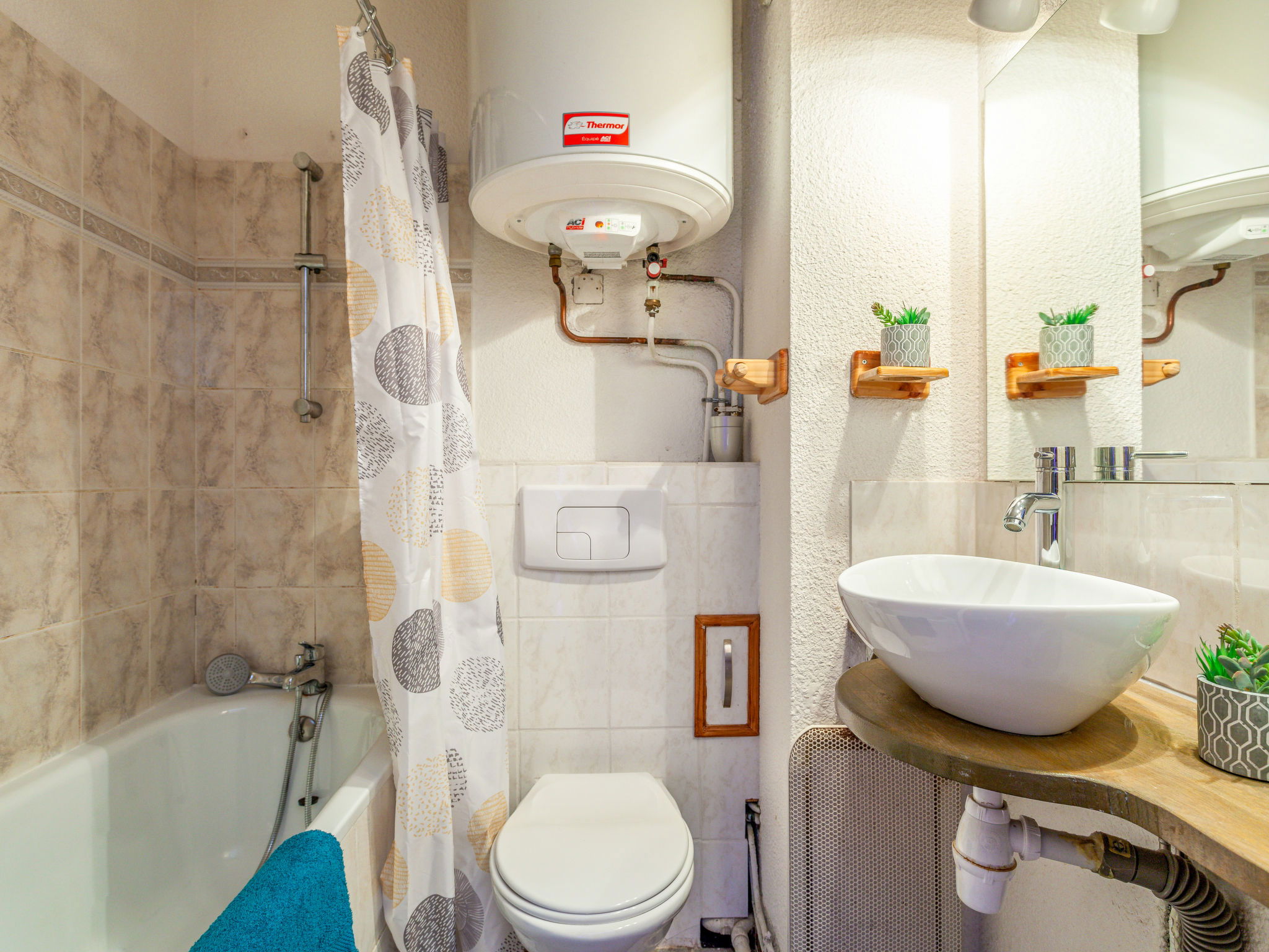 1-room apartment 25 m2 on 1st floor, south facing position. Beautiful furnishings: entrance hall with 1 x 2 bunk beds (90 cm). Living/dining room with TV (flat screen). Sleeping alcove with 1 french bed (140 cm). Kitchenette (oven, 2 induction hot plates, electric coffee machine, combination microwave). Bath/WC. Electric heating. Small balcony. View of the mountains and the ski run. Please note: smoke alarm. This property is situated in building A. Instead of an enclosed bedroom, some sleeping areas are located in an open-plan area (gallery, alcove, etc.). Offer by a private individual according to Art. 155, IV of CGI.