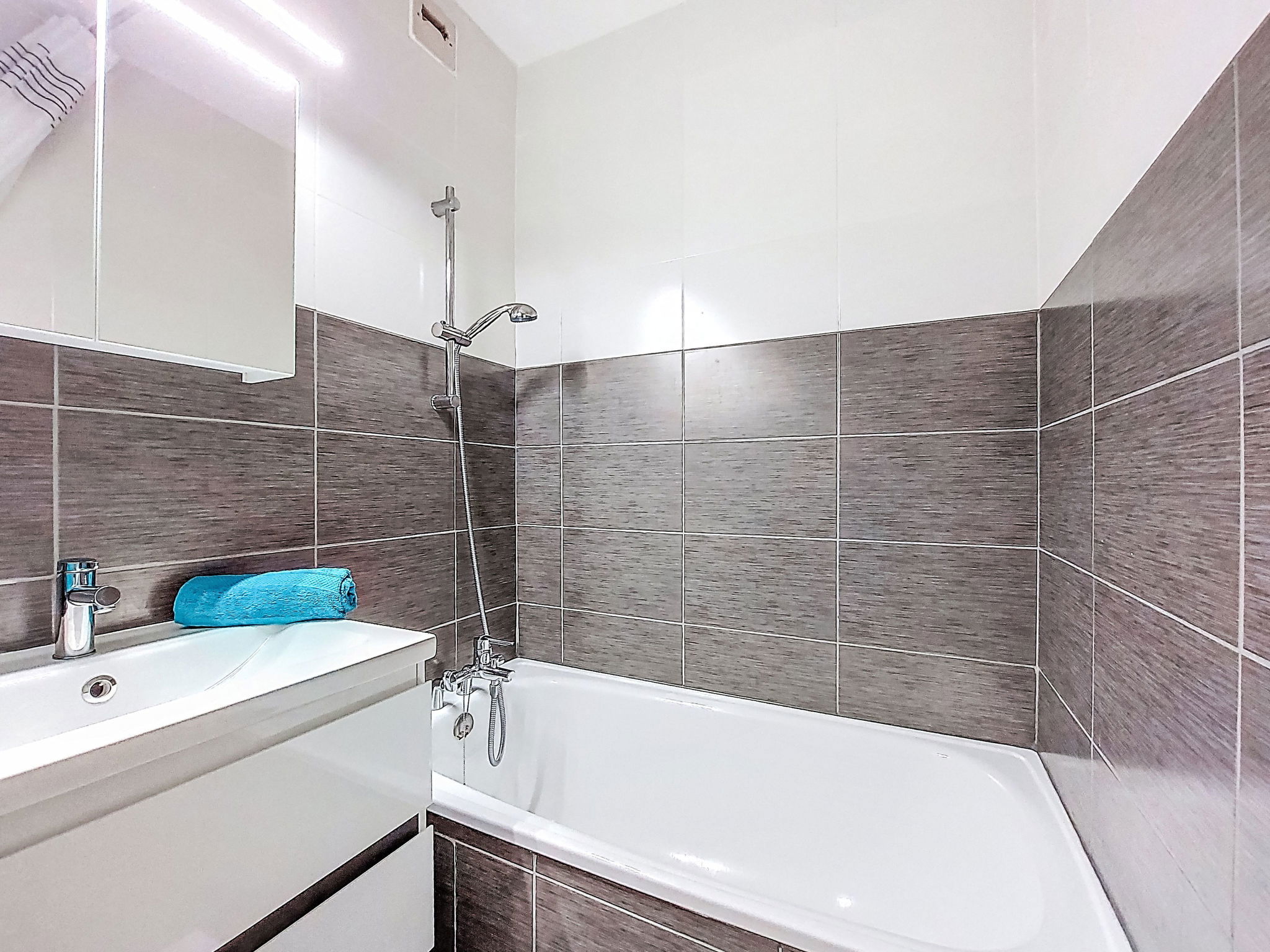 2-room apartment 32 m2 on 2nd floor, south facing position. Very beautiful and cosy furnishings: living/dining room with 1 double sofabed (140 cm, length 190 cm), TV (flat screen), DVD and electric shutters. Exit to the balcony, south facing position. 1 room with 1 x 2 bunk beds (90 cm, length 190 cm), electric shutters. Exit to the balcony, south facing position. Small kitchen (oven, dishwasher, 2 induction hot plates, toaster, kettle, microwave, electric coffee machine). Bathroom, sep. WC. Heating. Carpet. Balcony 6 m2, south facing position. Balcony furniture. Beautiful view of the mountains and the resort. Facilities: hair dryer. Internet (WiFi, extra). Please note: non-smokers only. Smoke alarm. Offer by a private individual according to Art. 155, IV of CGI.