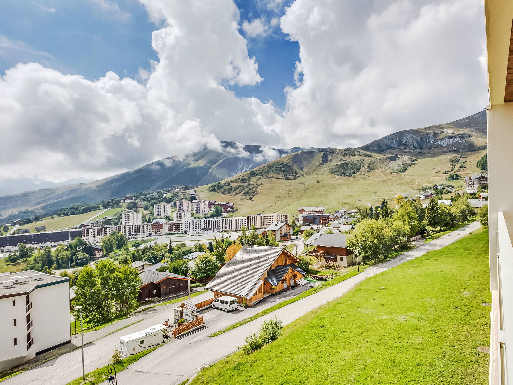 La Toussuire: Small apartment house "L'Edioule", 3 storeys. Above La Toussuire, in a quiet, elevated position, 500 m from the skiing area, south facing position. In the house: lift, storage room for skis. In Winter: please take snow chains. Public parking. Shop 400 m, grocery 200 m, restaurant, bar, bus stop 350 m, railway station "St Jean de Maurienne" 15 km. Chair lift 200 m, slopes 450 m, ski bus stop 150 m. Please note: ski bus (free of charge). The keys‘ handover takes place by the agency DU CORBIER in LA STATION VOISINE, 4 km.