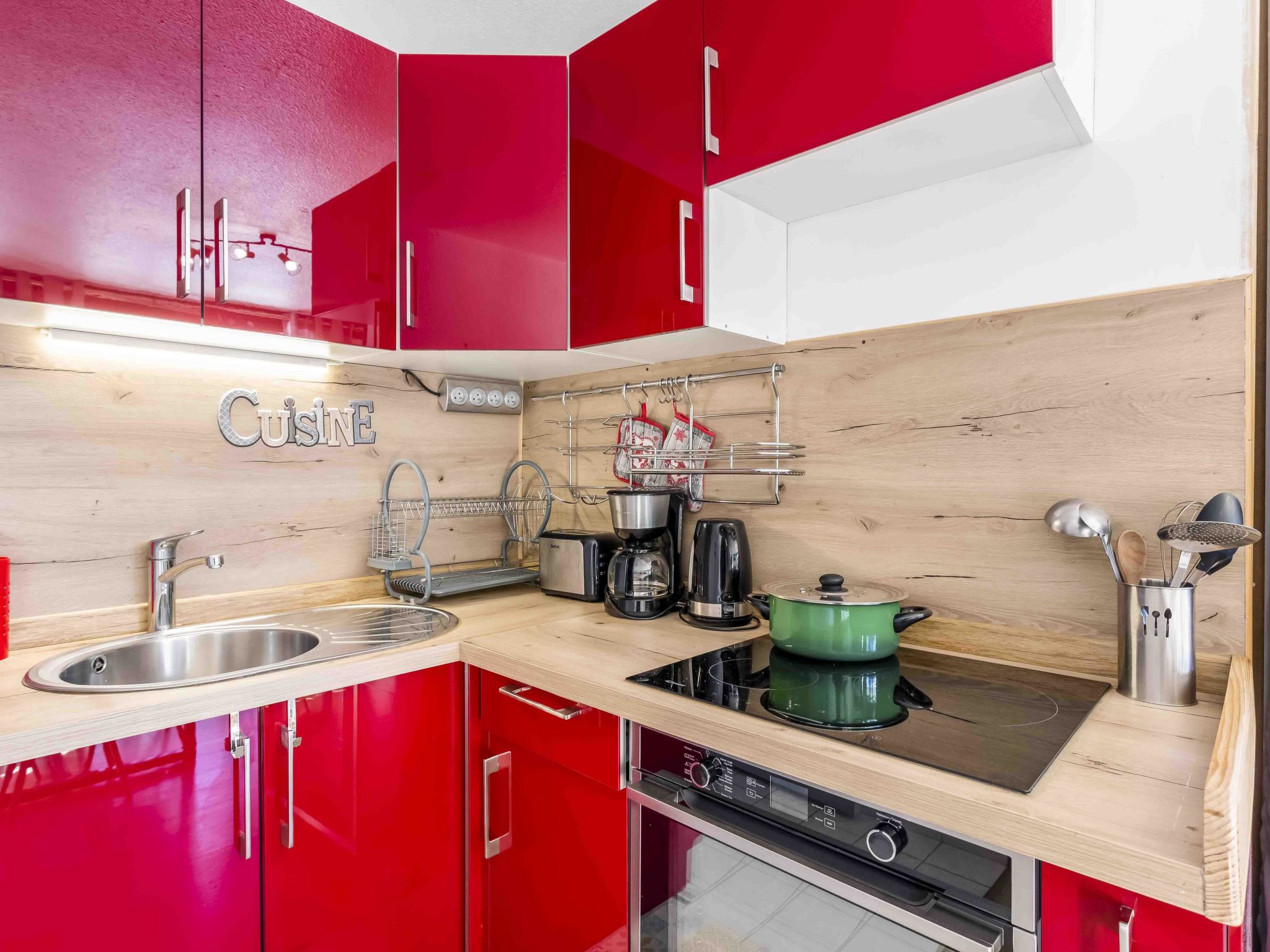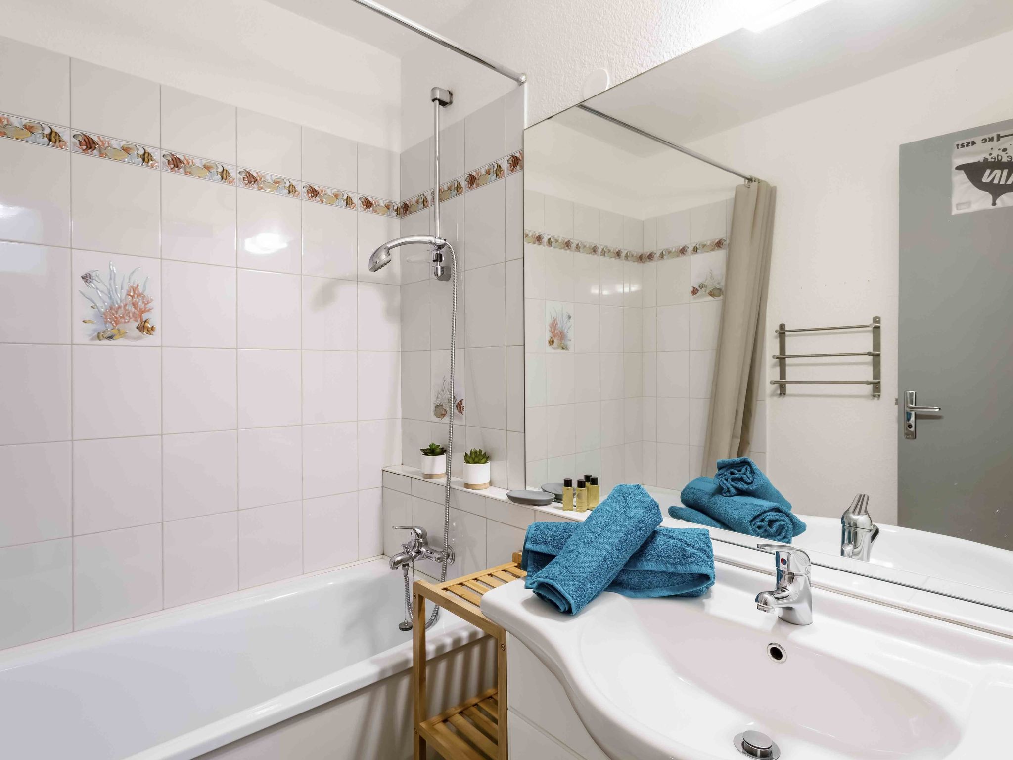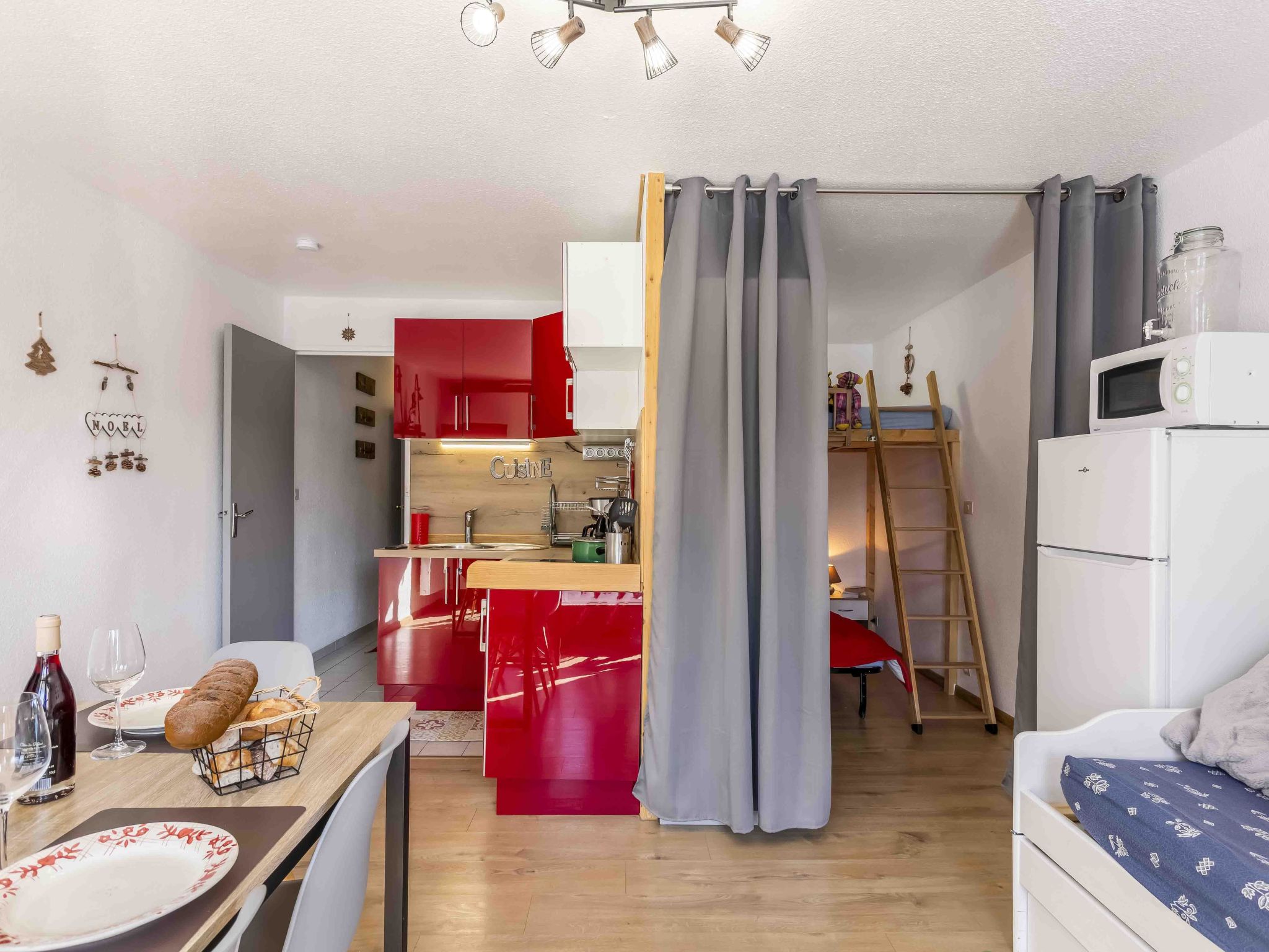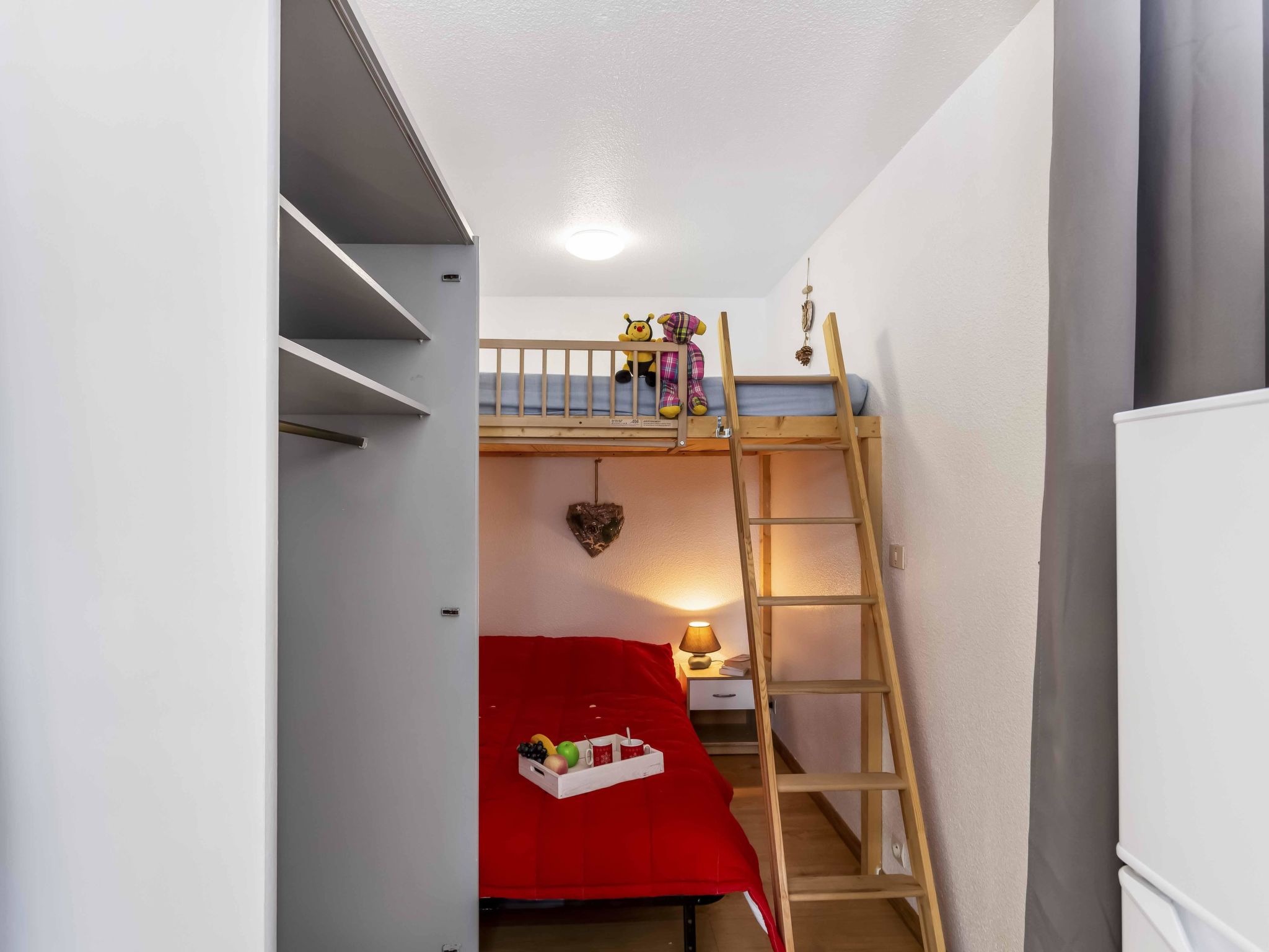 1-room studio 32 m2 on 11st floor, south facing position. Beautiful and cosy furnishings: living/dining room with 1 bed (90 cm, length 190 cm), TV (flat screen). Exit to the balcony, south facing position. Alcove with curtain with 1 double sofabed (120 cm, length 190 cm), 1 x 1 bunk beds (140 cm, length 190 cm). Kitchenette (oven, dishwasher, 3 ceramic glass hob hotplates, toaster, kettle, microwave, freezer, electric coffee machine, Capsules for coffee machine (senseo) extra, raclette grill, fondue Set (cheese)). Bathroom, sep. WC. Electric heating. Parquet floors. Balcony 4 m2, south facing position. Balcony furniture. View of the ski run. Facilities: children's high chair, baby cot. Internet (WiFi, extra). Please note: non-smokers only. Smoke alarm. Instead of an enclosed bedroom, some sleeping areas are located in an open-plan area (gallery, alcove, etc.). Offer by a private individual according to Art. 155, IV of CGI.