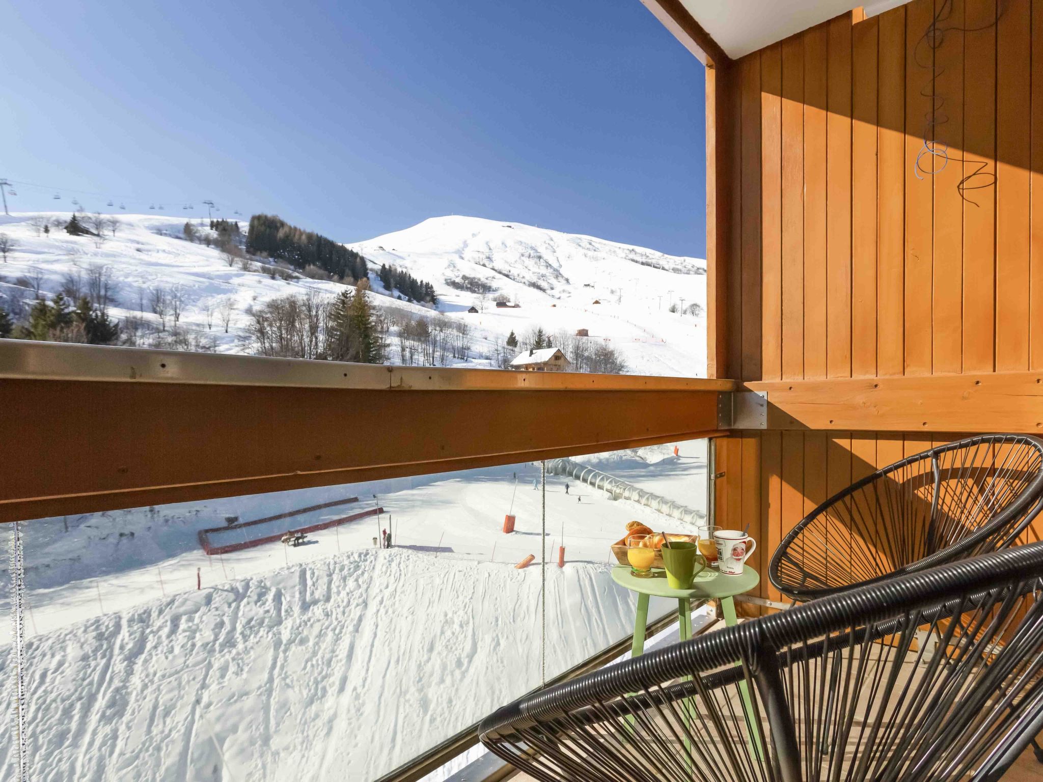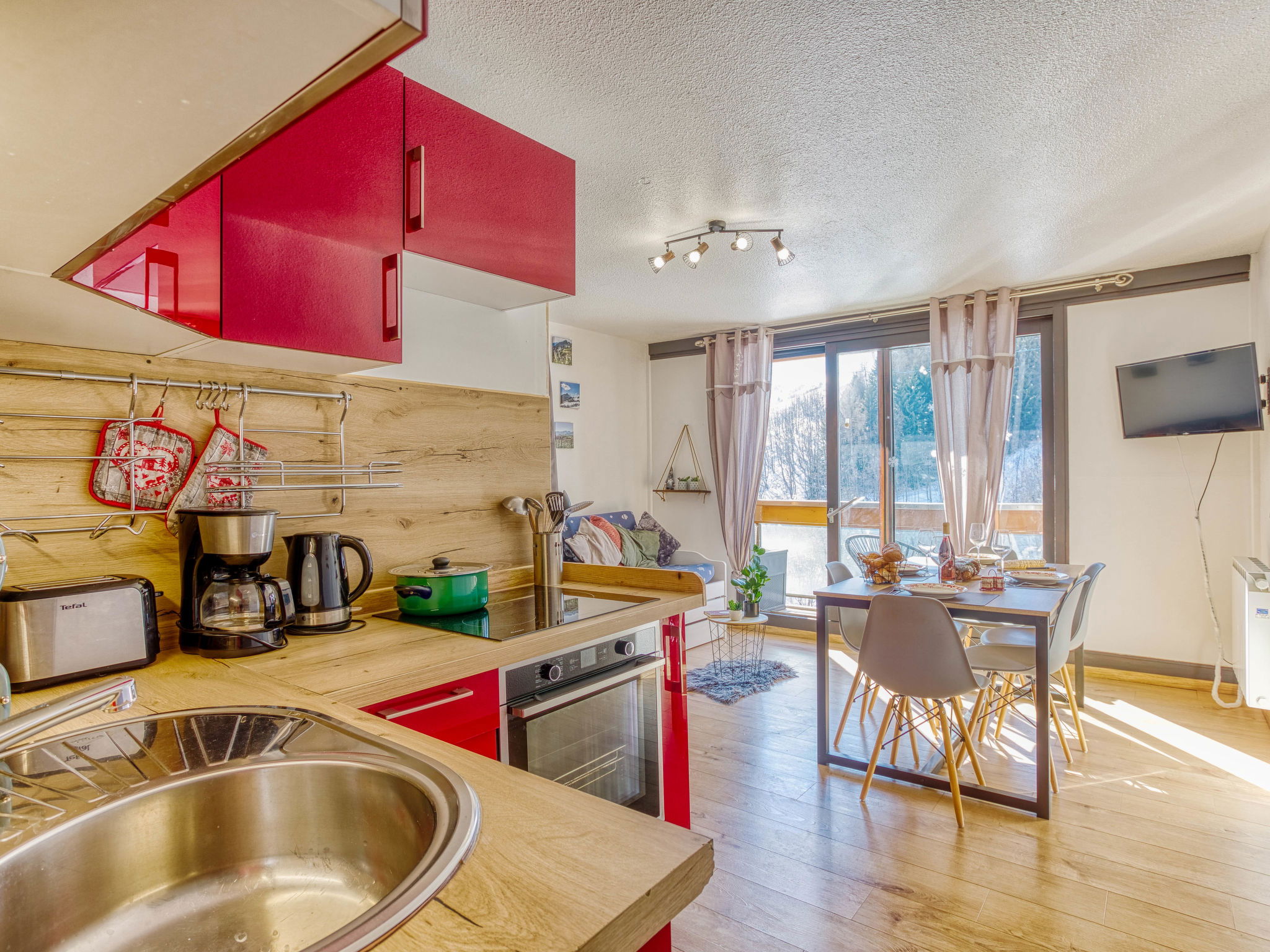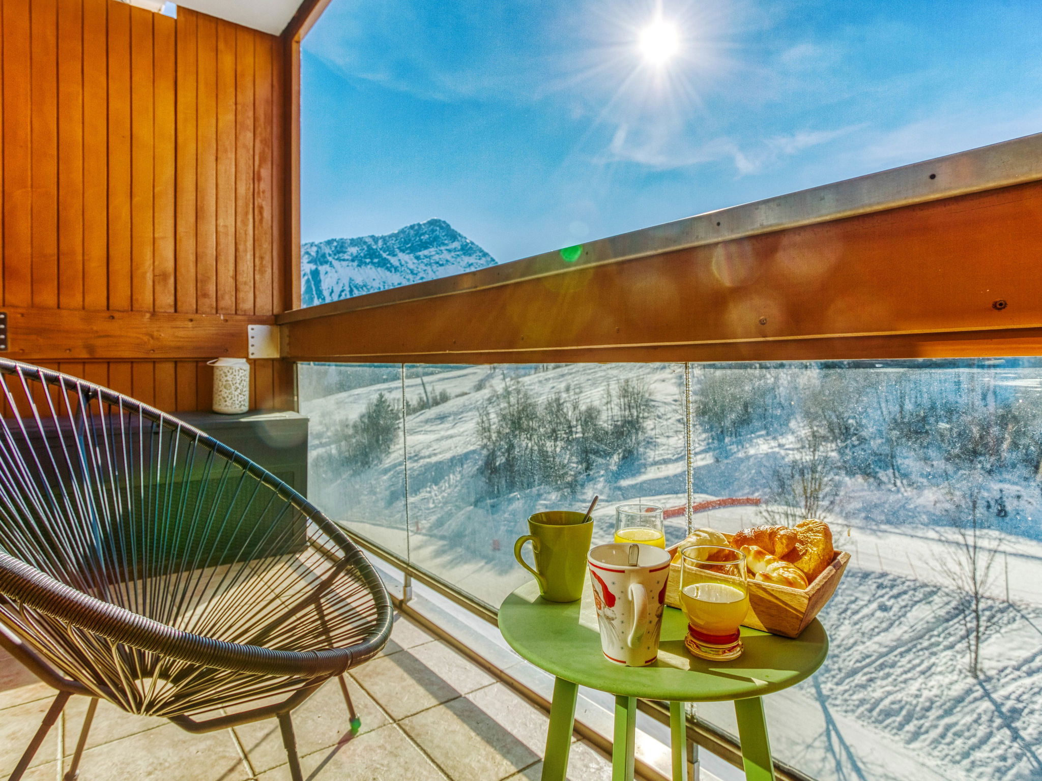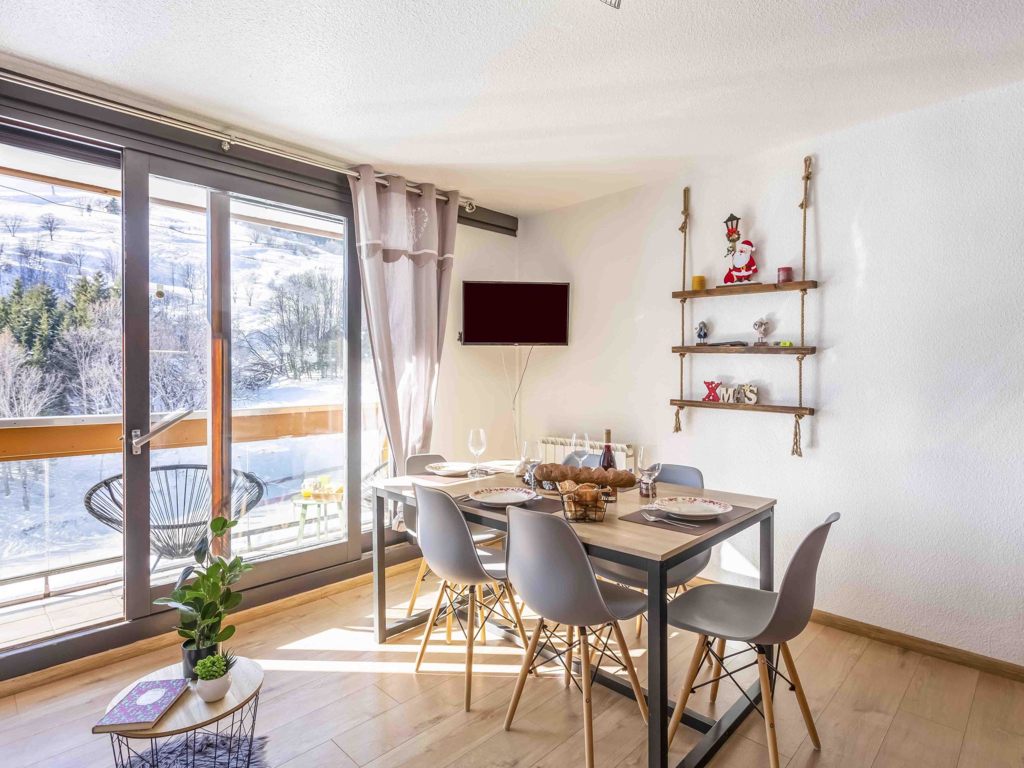 1-room studio 32 m2 on 11st floor, south facing position. Beautiful and cosy furnishings: living/dining room with 1 bed (90 cm, length 190 cm), TV (flat screen). Exit to the balcony, south facing position. Alcove with curtain with 1 double sofabed (120 cm, length 190 cm), 1 x 1 bunk beds (140 cm, length 190 cm). Kitchenette (oven, dishwasher, 3 ceramic glass hob hotplates, toaster, kettle, microwave, freezer, electric coffee machine, Capsules for coffee machine (senseo) extra, raclette grill, fondue Set (cheese)). Bathroom, sep. WC. Electric heating. Parquet floors. Balcony 4 m2, south facing position. Balcony furniture. View of the ski run. Facilities: children's high chair, baby cot. Internet (WiFi, extra). Please note: non-smokers only. Smoke alarm. Instead of an enclosed bedroom, some sleeping areas are located in an open-plan area (gallery, alcove, etc.). Offer by a private individual according to Art. 155, IV of CGI.