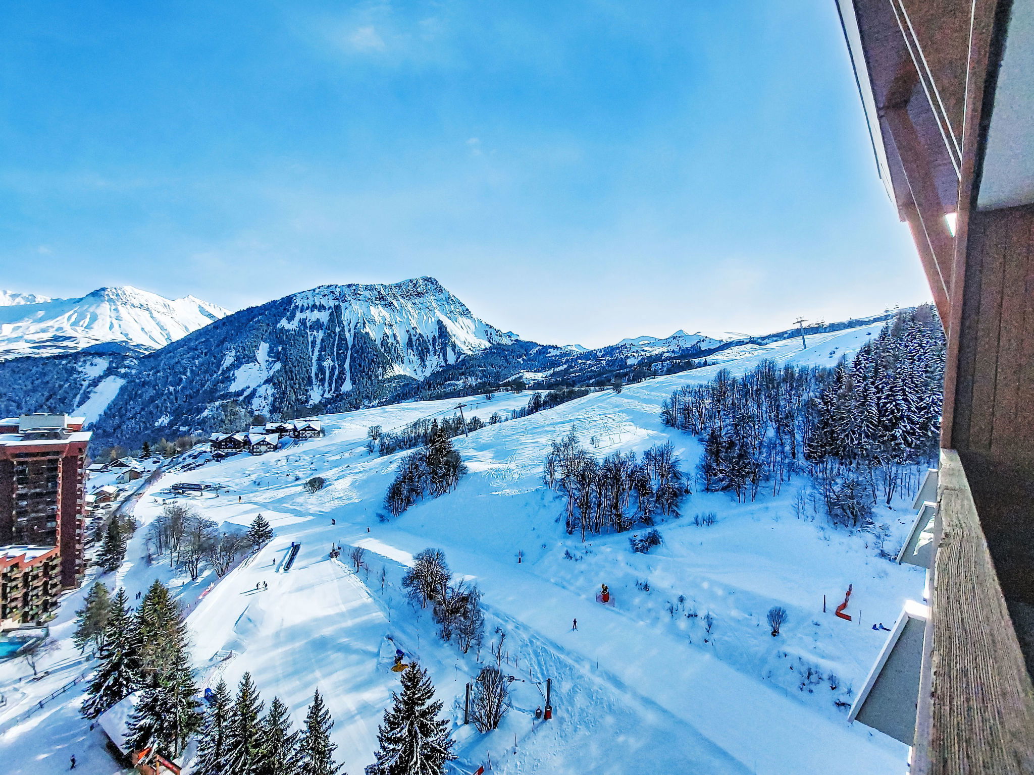 2-room apartment 33 m2 on 16th floor, north-east facing position. Very simple furnishings: living/dining room with 1 pull-out bed (2 pers. 2 x 80 cm, length 190 cm), TV (flat screen), DVD. Exit to the balcony. 1 room with 1 bed (80 cm, length 190 cm), 1 x 2 bunk beds (80 cm, length 190 cm). Kitchenette (2 hot plates, oven, toaster, microwave, electric coffee machine, Capsules for coffee machine (KRUPS) extra). Bathroom, sep. WC. Electric heating. Carpet. Balcony 5 m2, east facing position. View of the mountains and the ski run. Facilities: iron, hair dryer. Internet (WiFi, extra). Please note: smoke alarm. Offer by a private individual according to Art. 155, IV of CGI. G16 06