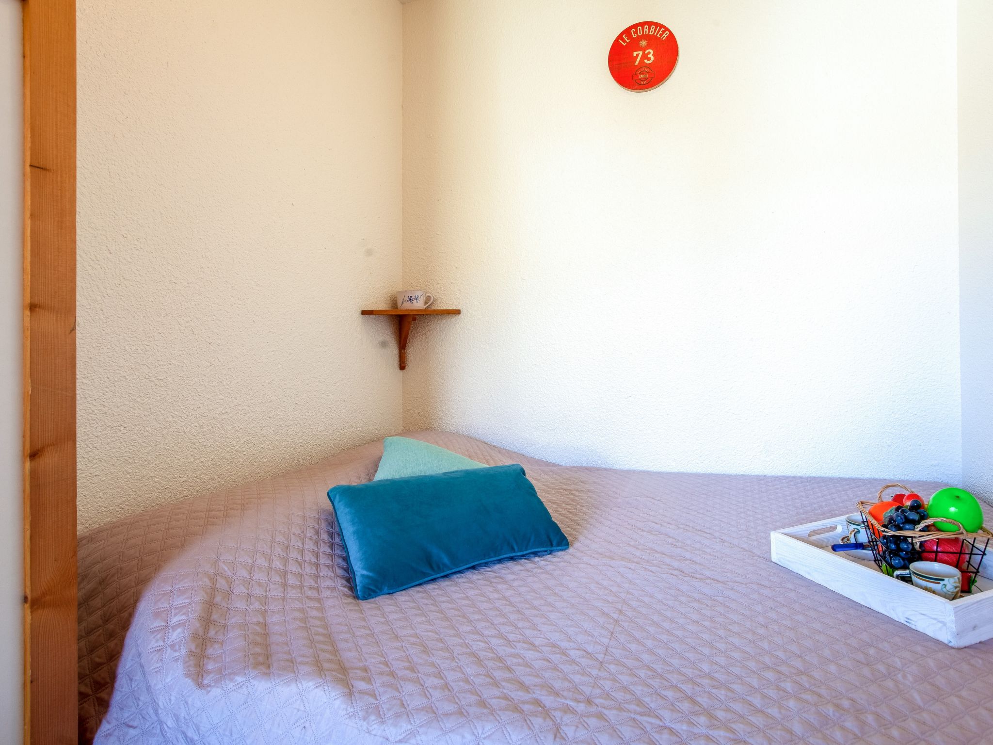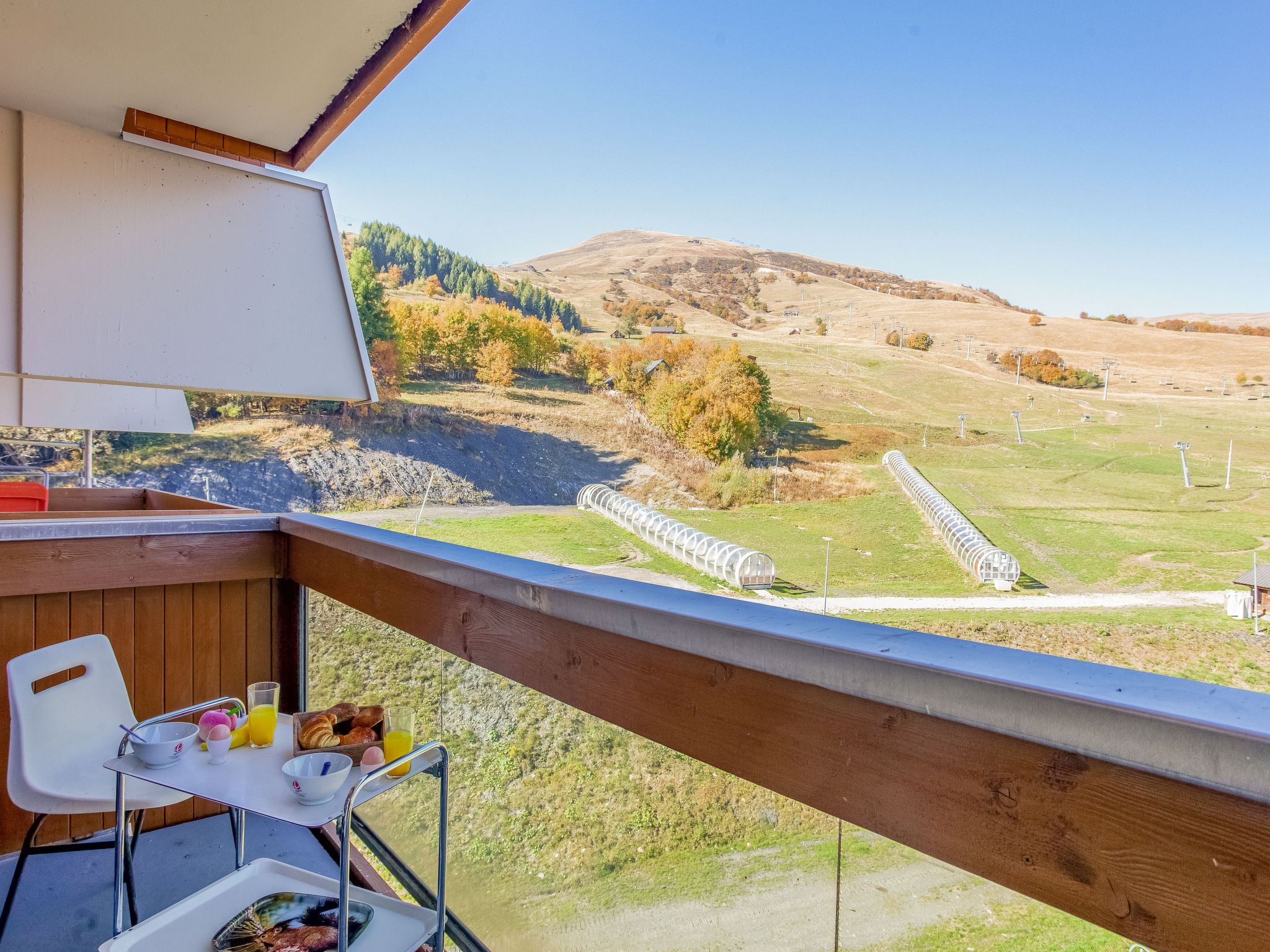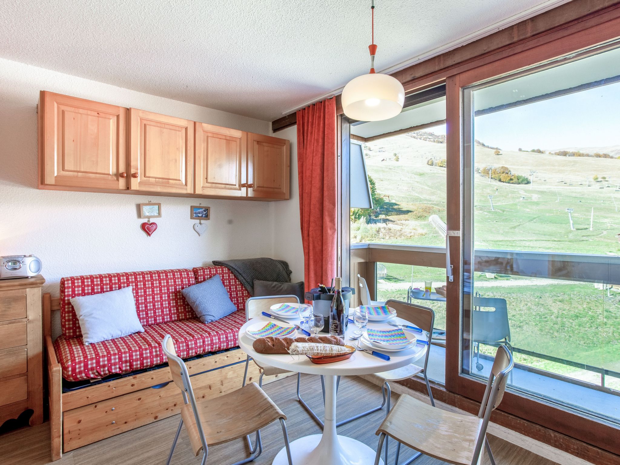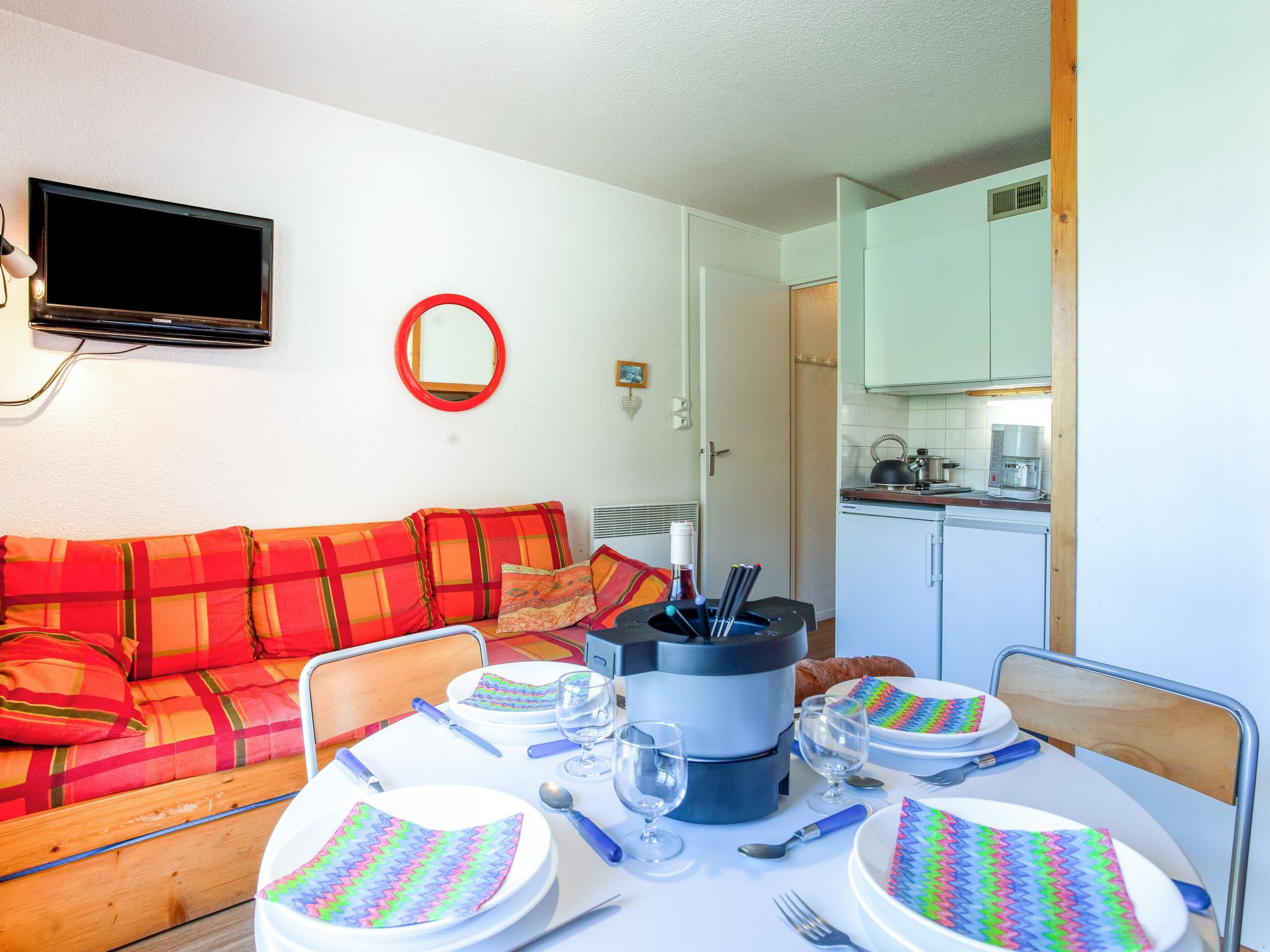 1-room studio 24 m2 on 8th floor, west facing position. Simple furnishings: living/dining room with 1 pull-out bed (2 pers. 2 x 80 cm, length 190 cm), TV (flat screen), radio. Exit to the balcony. Alcove with curtain with 1 french bed (140 cm, length 190 cm). Kitchenette (2 hot plates, oven, microwave, electric coffee machine). Bath/WC. Electric heating. Parquet floors. Balcony 4 m2, west facing position. Very beautiful view of the ski run, the swimming pool and the resort. Facilities: iron, hair dryer. Internet (WiFi, extra). Please note: non-smokers only. Smoke alarm. Instead of an enclosed bedroom, some sleeping areas are located in an open-plan area (gallery, alcove, etc.). Offer by a private individual according to Art. 155, IV of CGI.
