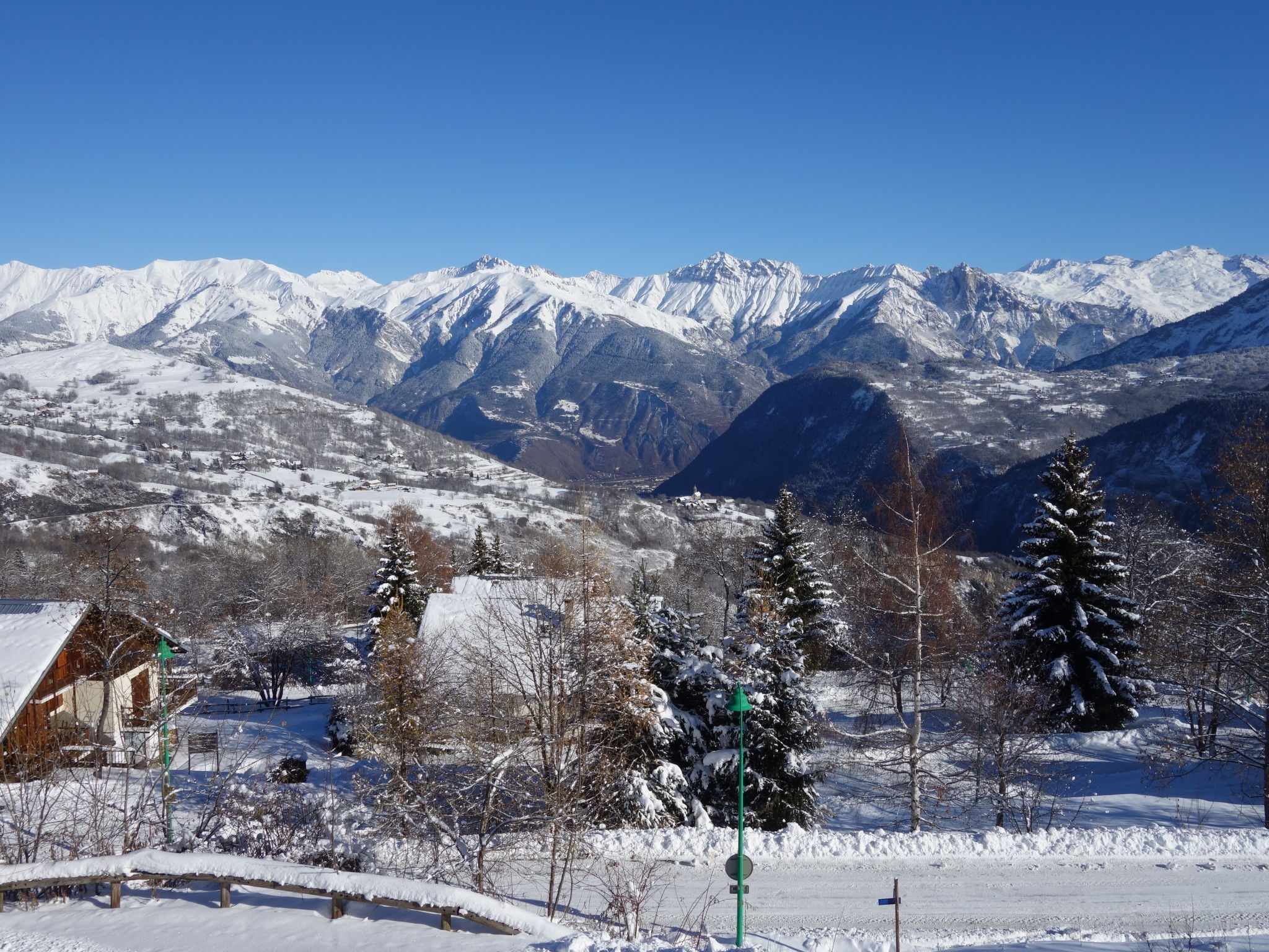 3-room apartment 40 m2 on 2nd floor, north-east facing position. Cosy furnishings: living/dining room with 1 pull-out bed (2 pers. 2 x 80 cm, length 190 cm), TV (flat screen). Exit to the balcony, north-east facing position. 1 room with 1 french bed (140 cm, length 190 cm). 1 room with 1 x 2 bunk beds (80 cm, length 190 cm). Open kitchen (dishwasher, 4 ceramic glass hob hotplates, toaster, kettle, microwave, electric coffee machine). Bathroom, shower, sep. WC. Electric heating. Carpet. Large balcony 10 m2, north-east facing position. Balcony furniture, deck chairs. Beautiful view of the mountains and the valley. Facilities: Internet (WiFi, extra). Please note: non-smokers only. Smoke alarm. Offer by a private individual according to Art. 155, IV of CGI.