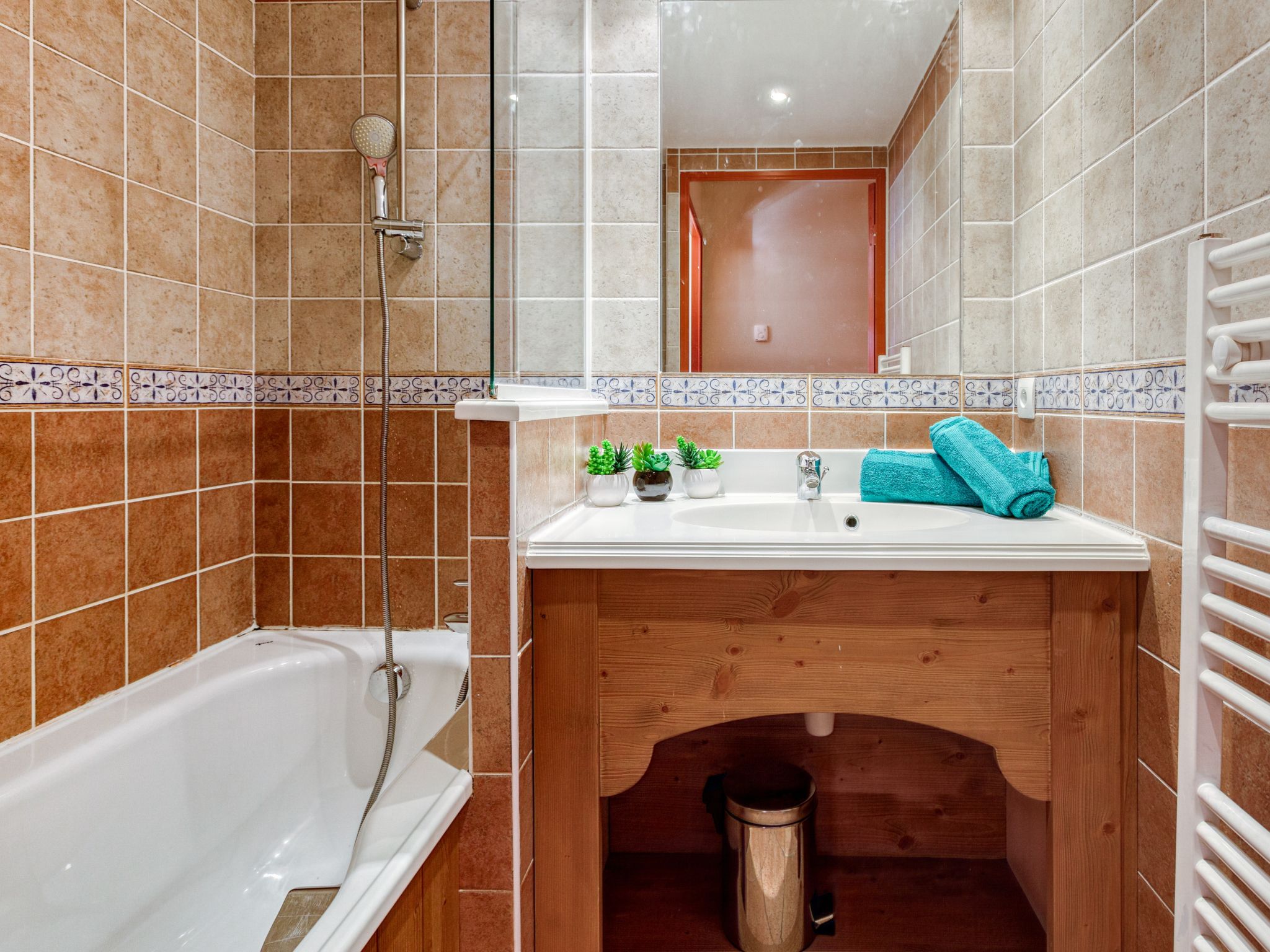 Beautiful residence "Les Alpages du Corbier", 8 storeys, built in 2007. Below Corbier, 700 m from the centre, 50 m from the skiing area. For shared use: swimming pool angular heated (5 x 10 m, depth 150 cm, seasonal availability: 13.Dec. - 10.Apr. and 04.Jul. - 28.Aug. pool opening hours: 10:00-18:45). Shower/WC in the pool area. In the complex: restaurant, bar, internet access, sauna, fitness room, lift, storage room for skis, washing machine, tumble dryer (for shared use, extra). 50 m long steep, narrow motor access. In Winter: please take snow chains. Public parking 150 m. Shop 600 m, grocery 100 m, restaurant, bar 600 m, bus stop "Centre-Bagagerie" 700 m, railway station "St Jean de Maurienne" 17 km. Chair lift, skisport facilities, slopes 100 m, ski bus stop 50 m, ski school 600 m, ski-kindergarten 400 m, sled run 600 m. Please note: ski bus (free of charge). In case of good snow conditions, the house is accessible on skis.