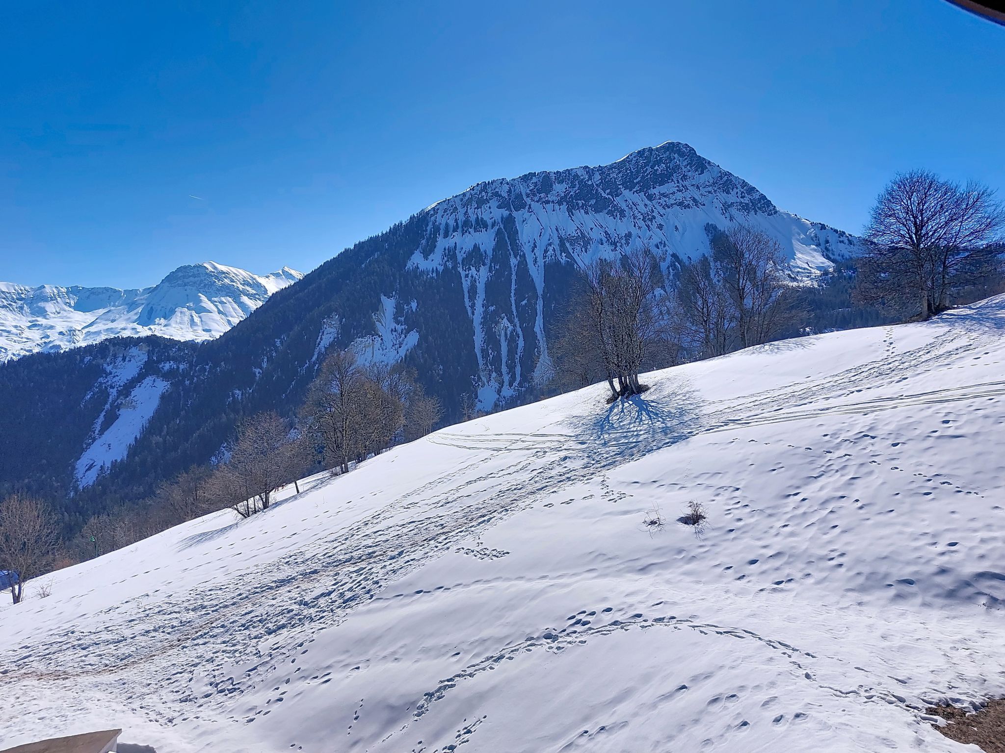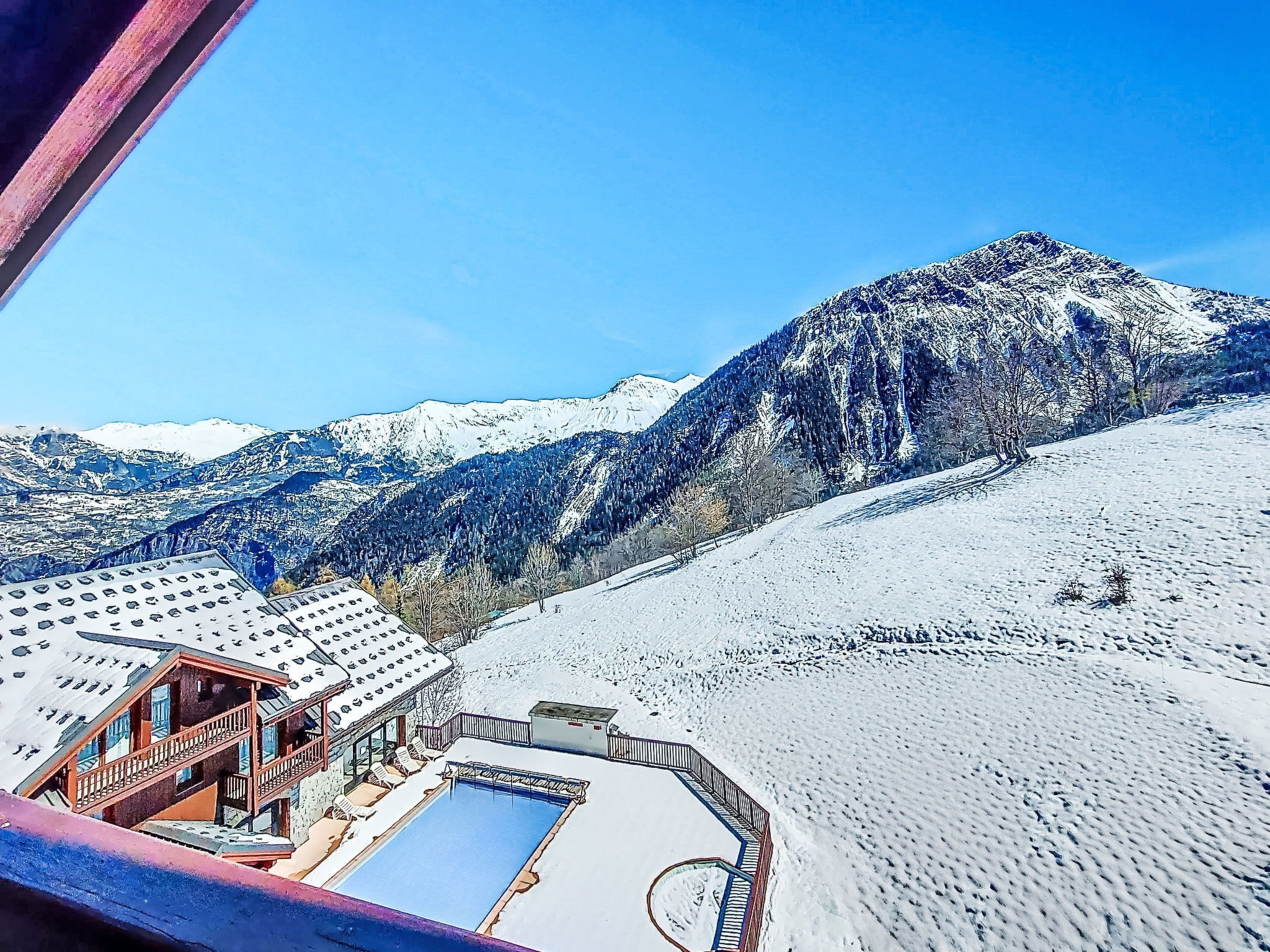 4-room apartment 58 m2 on 3rd floor, south-east facing position. Beautiful and cosy furnishings: living/dining room with sloping ceilings with 1 pull-out bed (2 pers. 2 x 80 cm, length 190 cm), TV (flat screen). Exit to the balcony, south-east facing position. 1 room with sloping ceilings with 1 french bed (140 cm, length 190 cm), TV (flat screen). Exit to the balcony, south-east facing position. 1 room with 1 x 2 bunk beds (80 cm, length 190 cm). 1 room with sloping ceilings with 2 beds (90 cm, length 190 cm). Open kitchen (oven, dishwasher, 4 ceramic glass hob hotplates, toaster, kettle, freezer, electric coffee machine, raclette grill, combination microwave). Bathroom, shower, sep. WC. Electric heating. Parquet floors. Large balcony 7 m2, south-east facing position. Balcony furniture, deck chairs (2). Very beautiful view of the mountains, the valley and the swimming pool. Facilities: iron, hair dryer. Internet (WiFi, extra). Parking space n 157 (roofed, 1 car), height 190 cm. Please note: non-smokers only. Smoke alarm. Offer by a private individual according to Art. 155, IV of CGI.