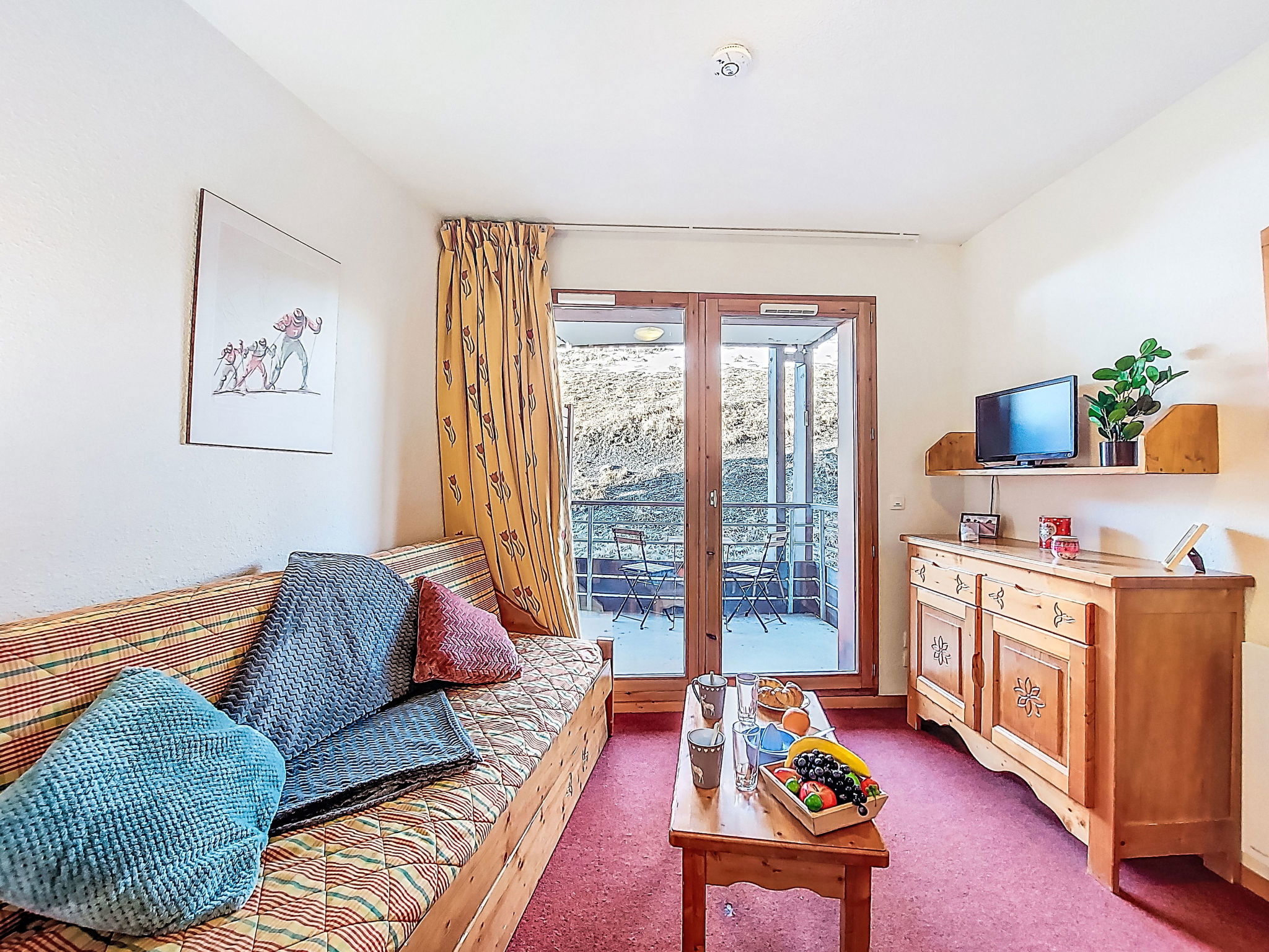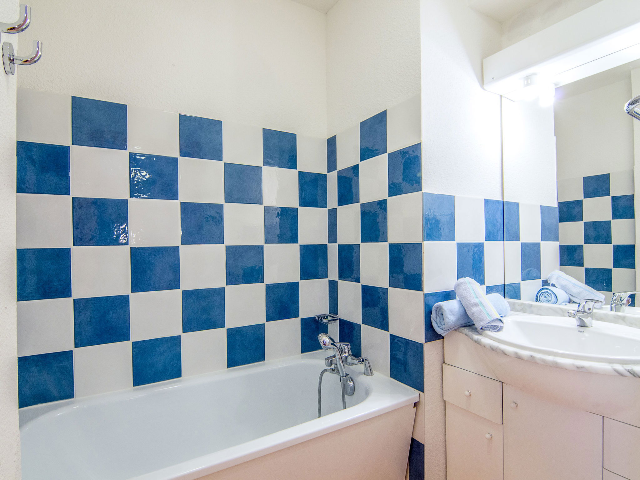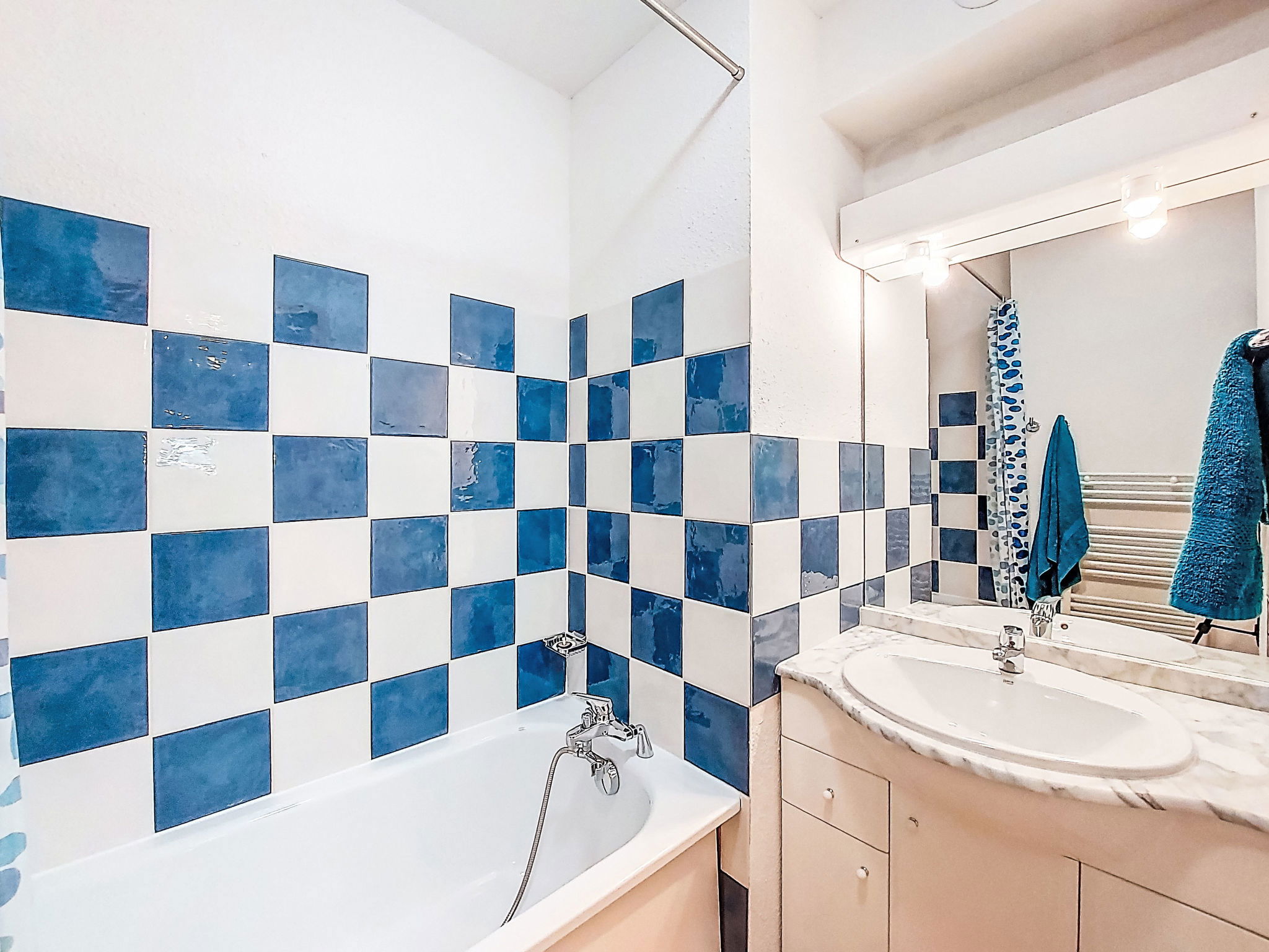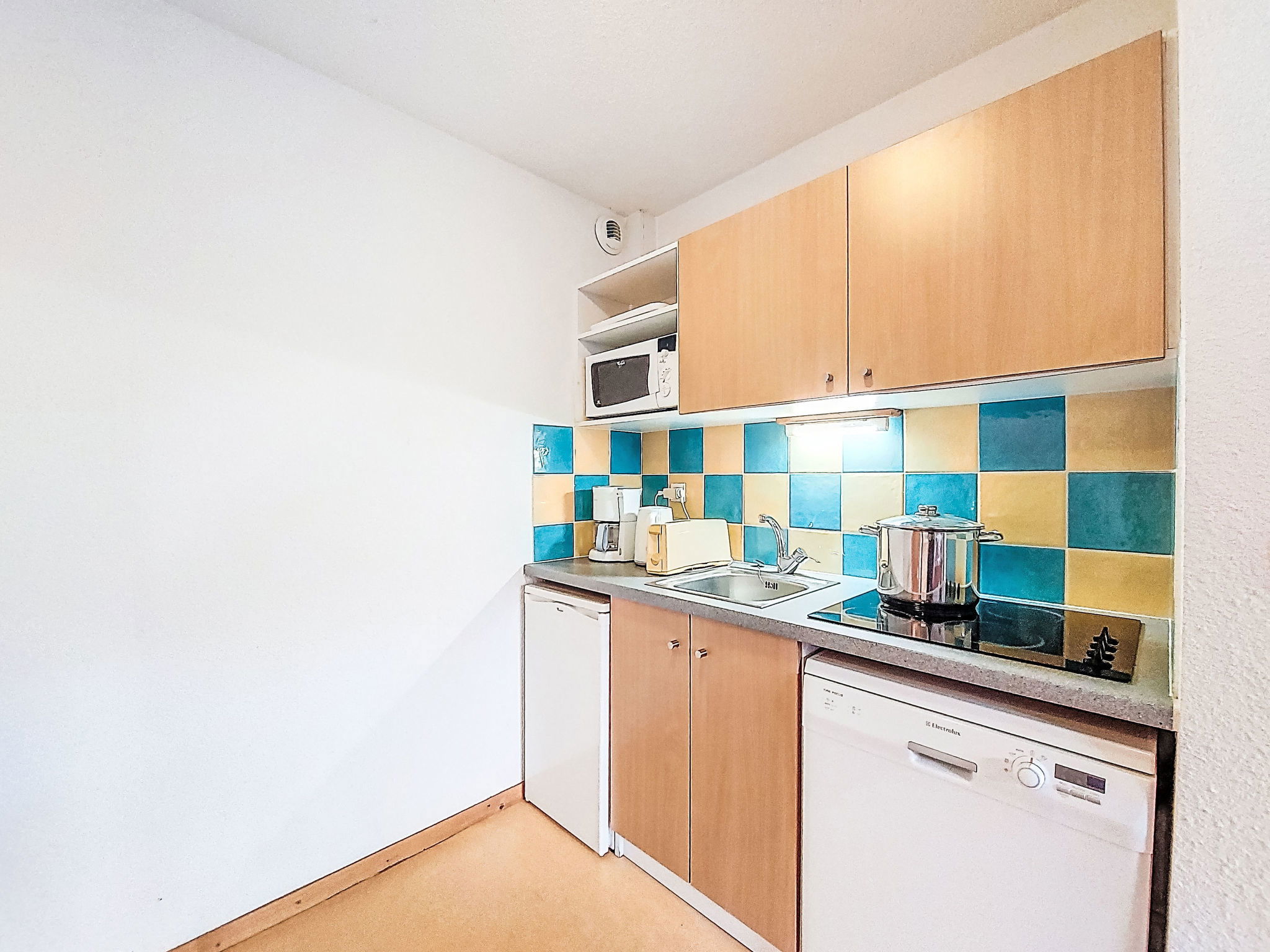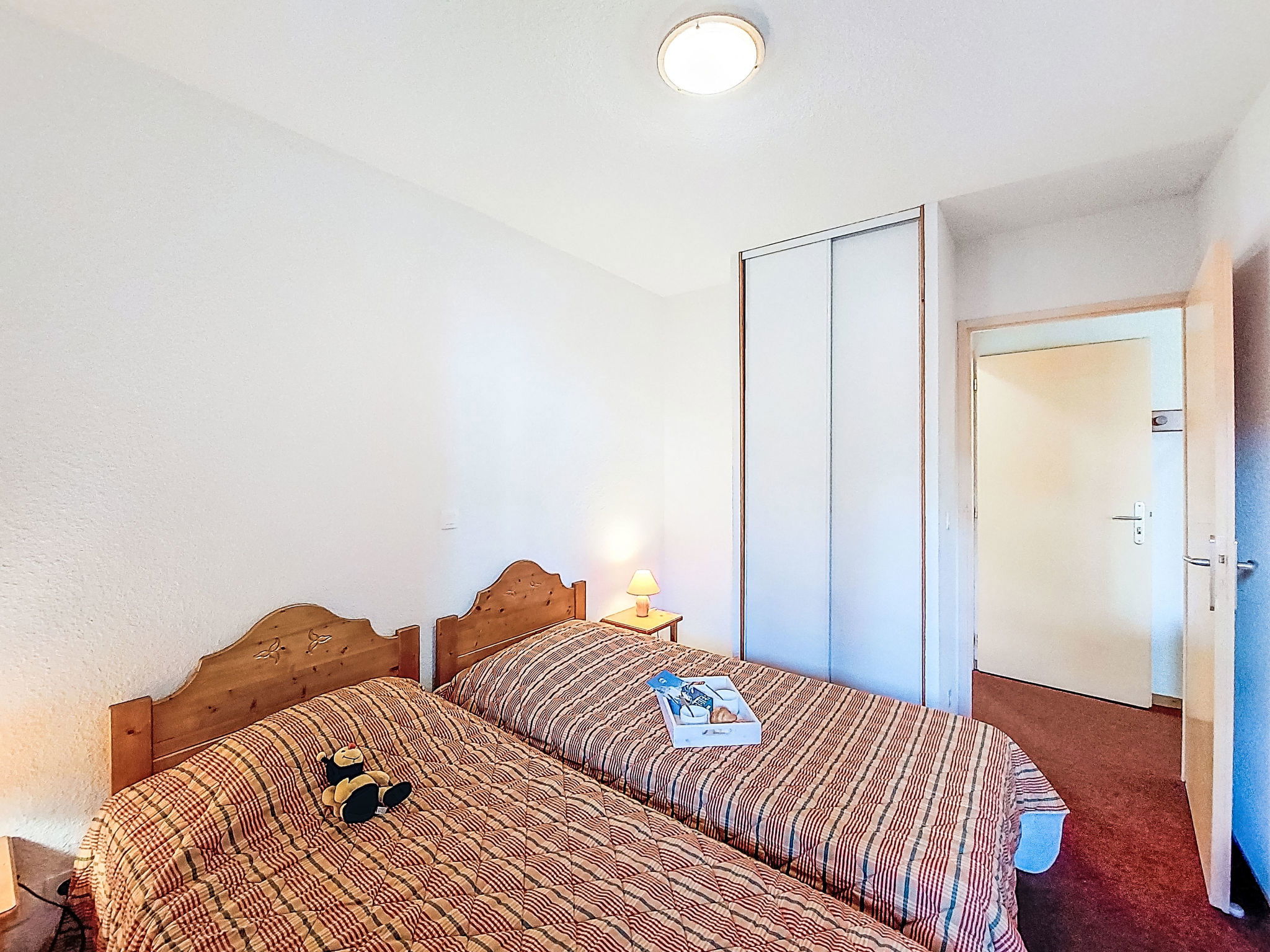"Bâtiment A", 2-room apartment 32 m2 on 1st floor, south facing position. Simple furnishings: living/dining room with 1 pull-out bed (2 pers. 2 x 80 cm, length 190 cm), TV (flat screen). Exit to the balcony, south facing position. 1 room, south facing position with 2 beds (90 cm, length 190 cm). Kitchenette (dishwasher, 4 ceramic glass hob hotplates, toaster, kettle, electric coffee machine, combination microwave). Bathroom, sep. WC. Electric heating. Carpet. Balcony 4 m2, south facing position. Balcony furniture. No view. Facilities: hair dryer. Internet (WiFi, extra). Please note: non-smokers only. Smoke alarm. Offer by a private individual according to Art. 155, IV of CGI.