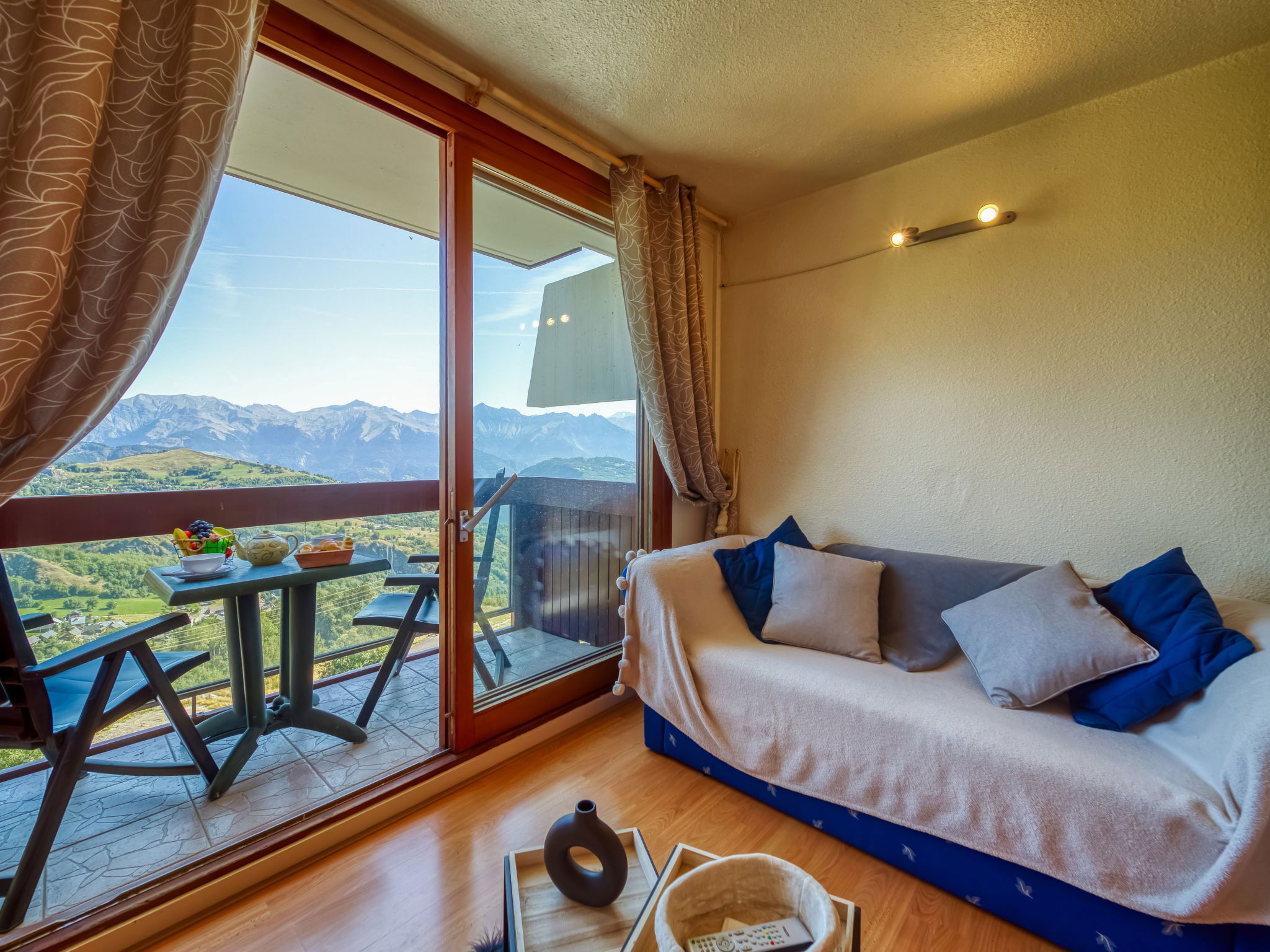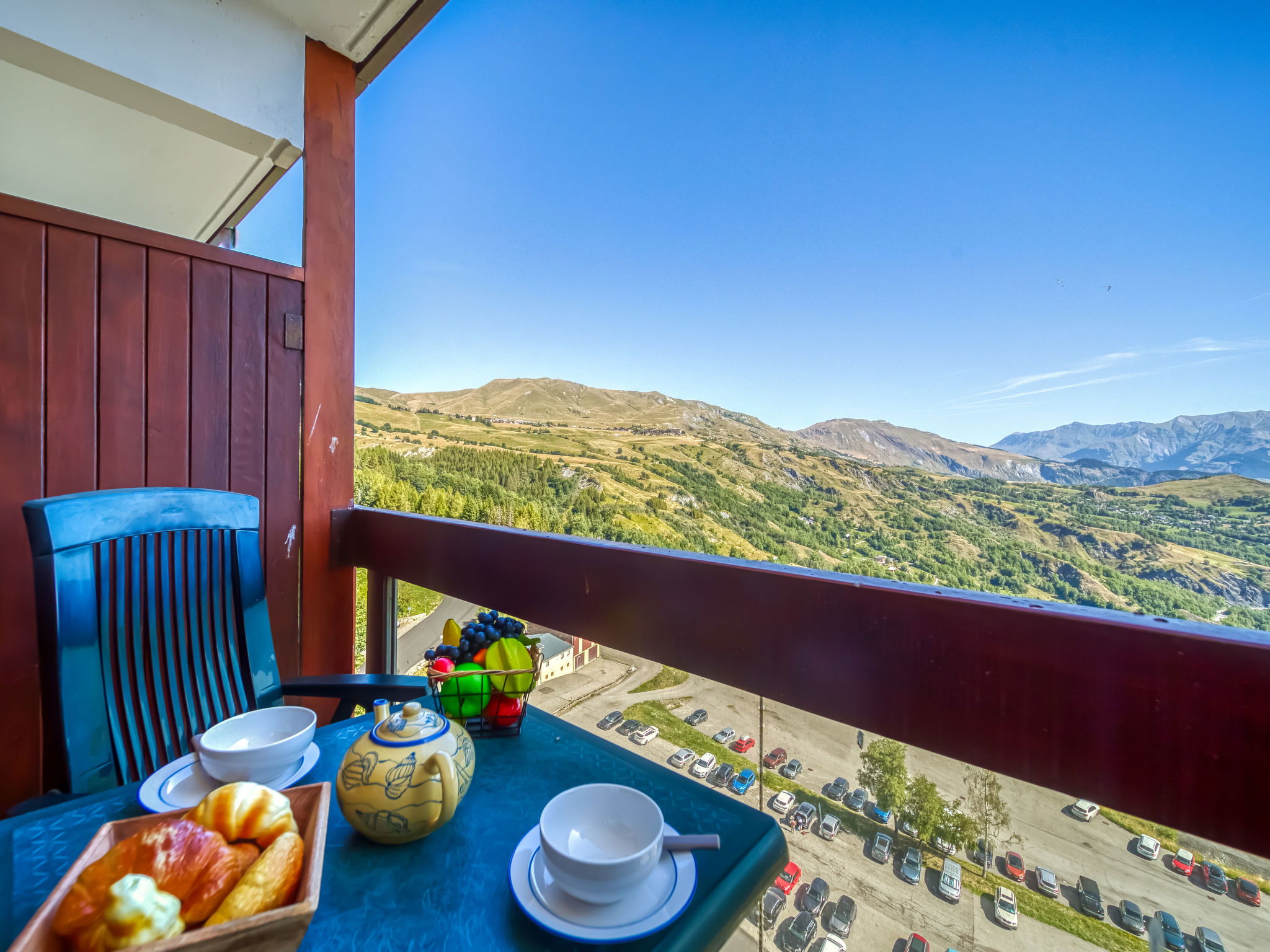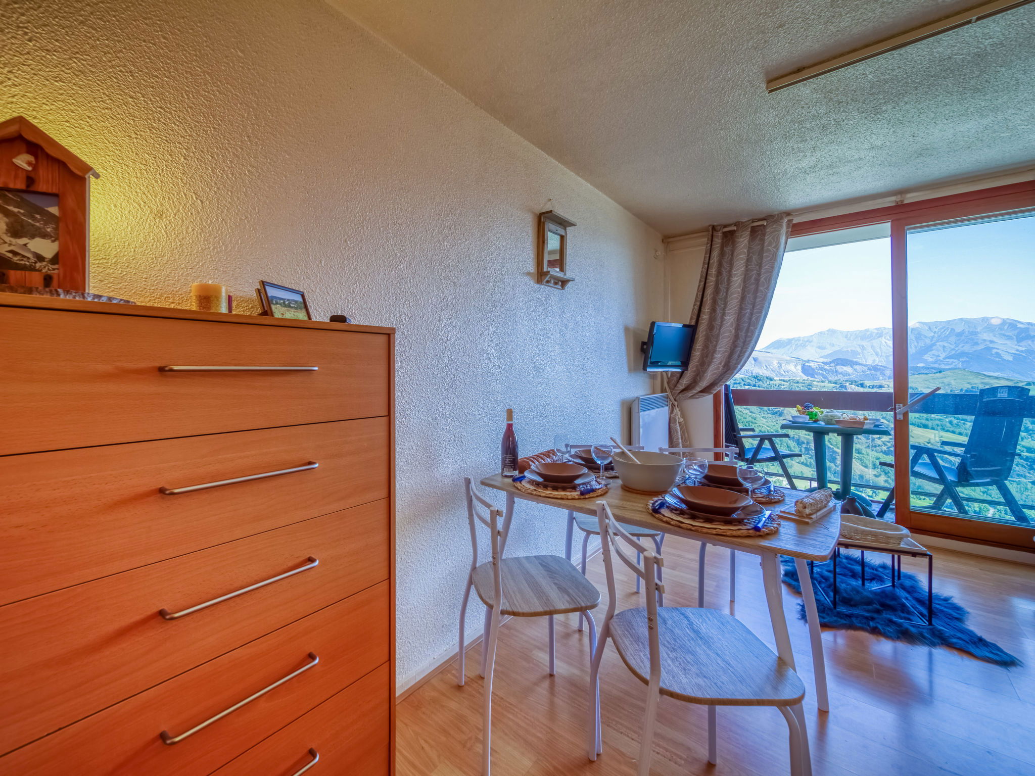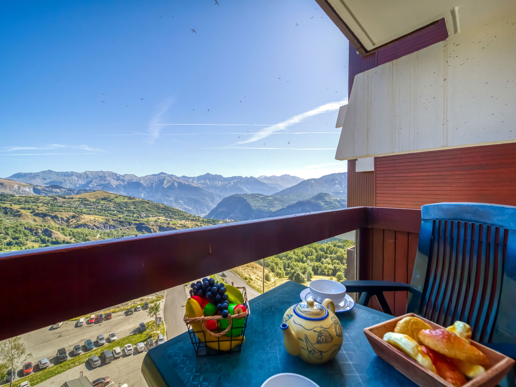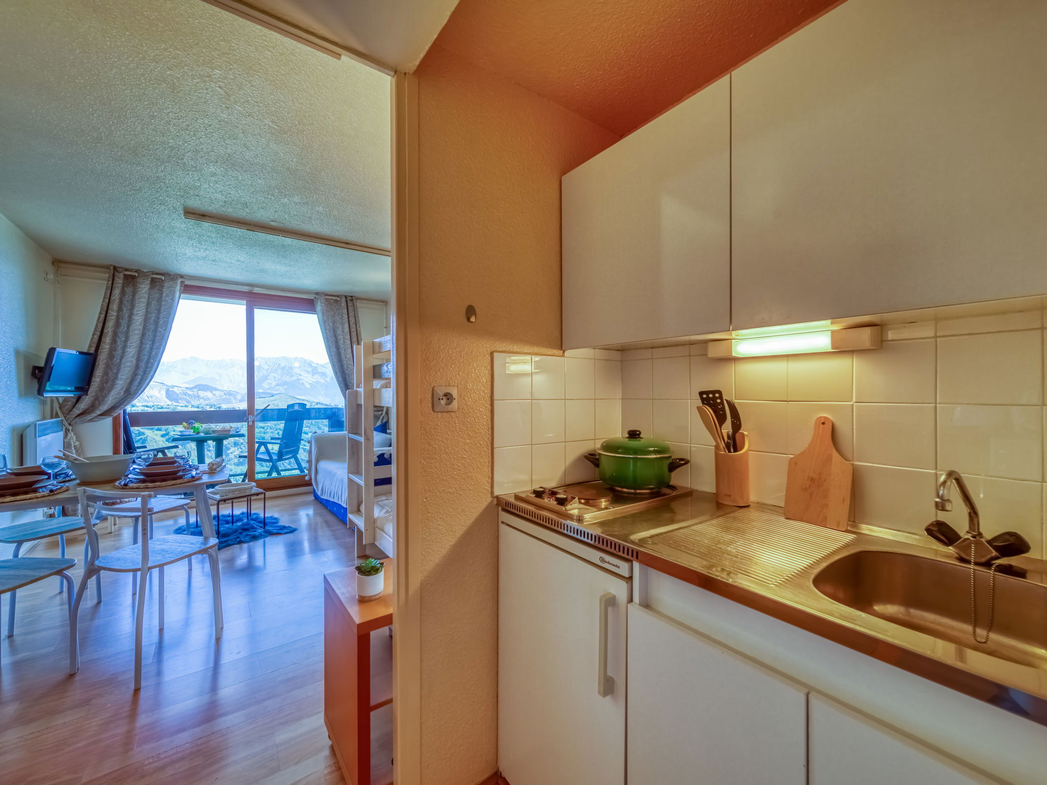 1-room studio 22 m2 on 15th floor, north facing position. Simple and beautiful furnishings: living/dining room with 1 double sofabed (140 cm, length 190 cm), 1 x 2 bunk beds (90 cm, length 190 cm), TV (flat screen). Small kitchenette (2 hot plates, oven, toaster, kettle, microwave, electric coffee machine, raclette grill). Bath/WC. Electric heating. Parquet floors. Balcony 4 m2, north facing position. Balcony furniture. View of the mountains and the valley. Facilities: Internet (WiFi, extra). Please note: non-smokers only. Smoke alarm. Offer by a private individual according to Art. 155, IV of CGI.