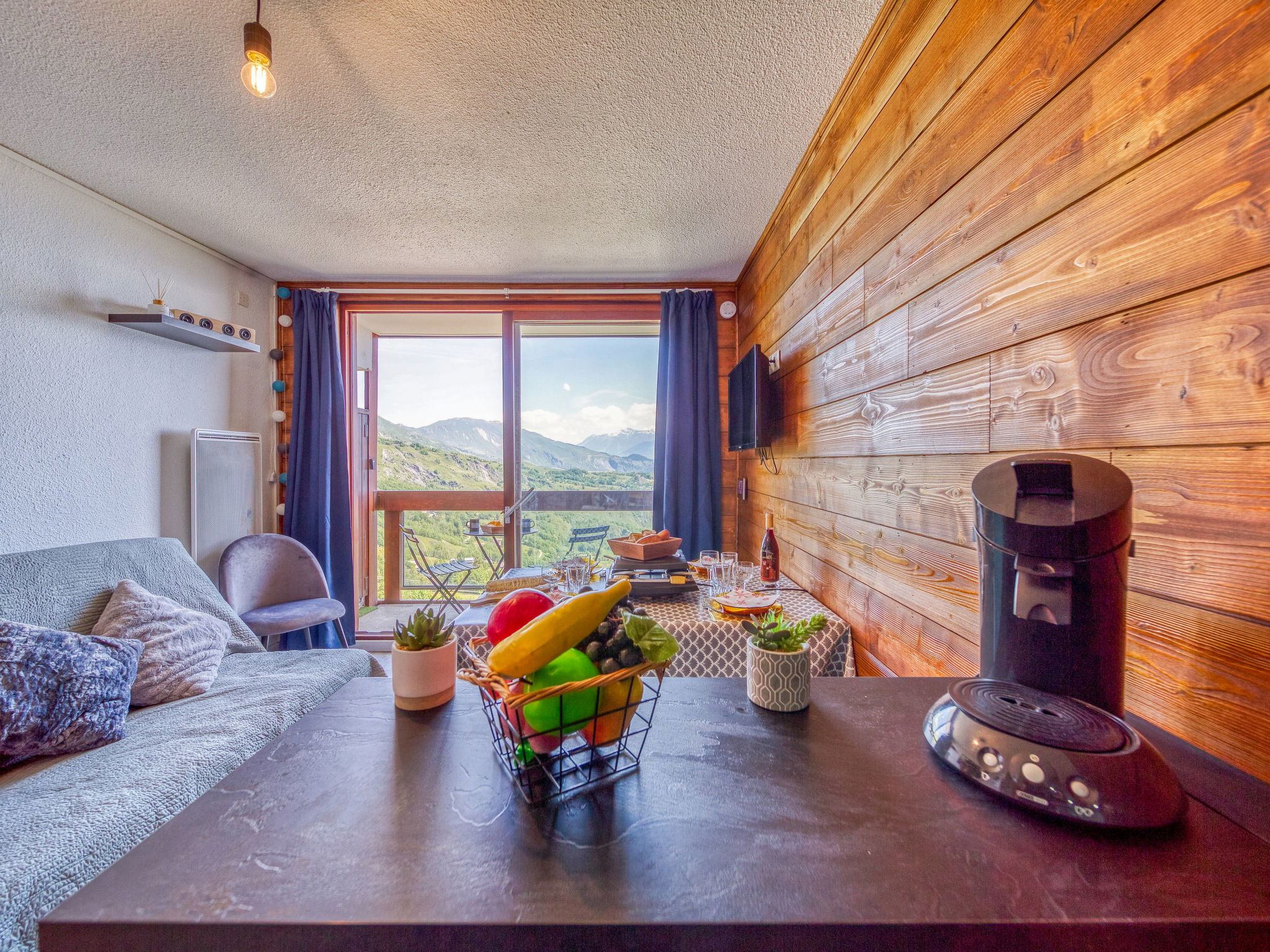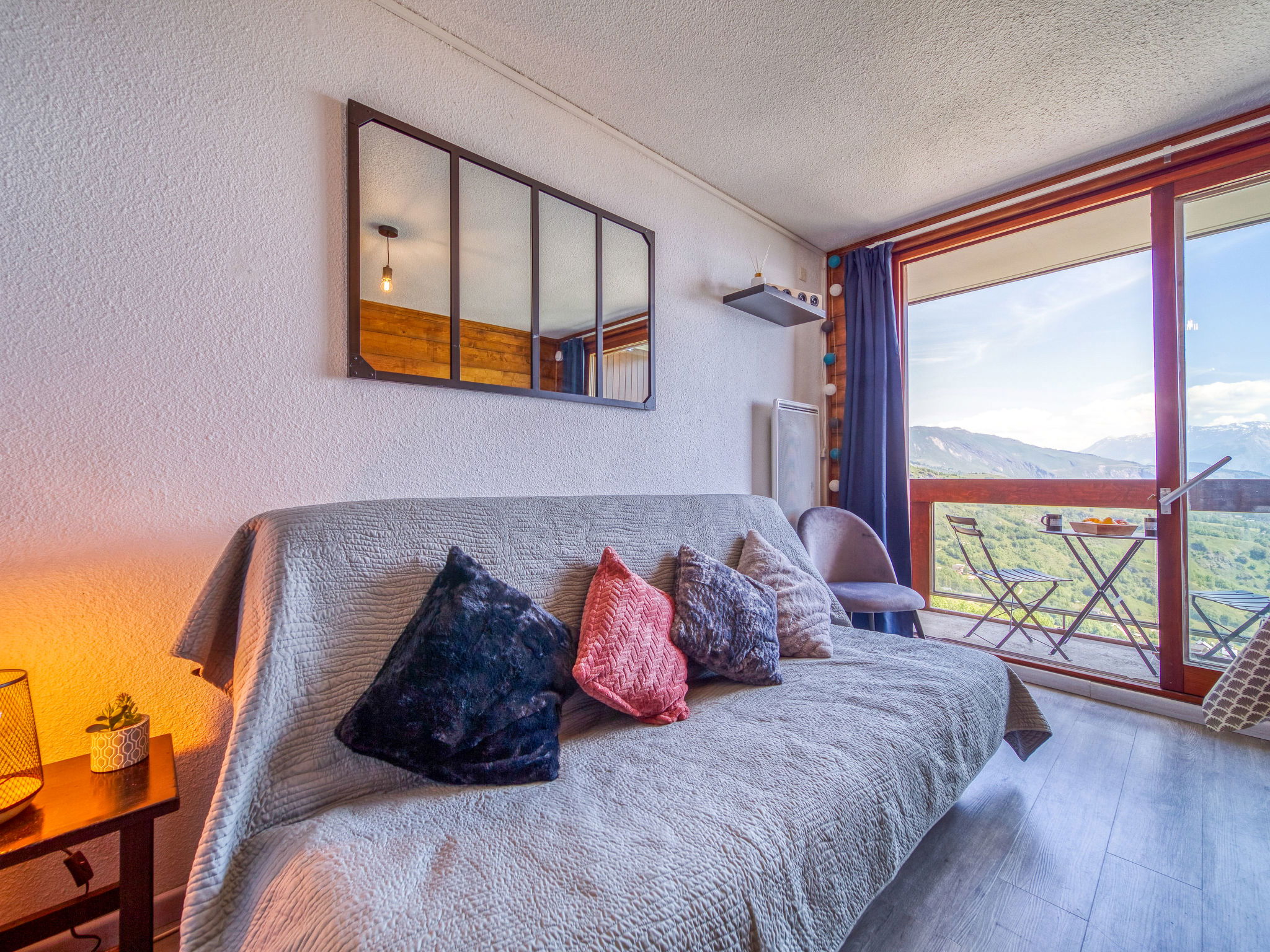 1-room apartment 22 m2 on 14th floor. Fully renovated in 2023, beautiful and modern furnishings: living/dining room with 1 double sofabed (1 x 140 cm, length 190 cm), TV (flat screen). Exit to the balcony, north facing position. Alcove with sliding door with 1 x 2 bunk beds (80 cm, length 190 cm). Kitchenette (oven, 2 ceramic glass hob hotplates, toaster, kettle, microwave, electric coffee machine, Capsules for coffee machine (senseo) extra, raclette grill) with bar. Bath/WC. Electric heating. Parquet floors. Balcony 4 m2, north facing position. Balcony furniture. View of the valley. Facilities: Internet (WiFi, extra). Please note: non-smokers only. Smoke alarm. Instead of an enclosed bedroom, some sleeping areas are located in an open-plan area (gallery, alcove, etc.). Offer by a private individual according to Art. 155, IV of CGI.