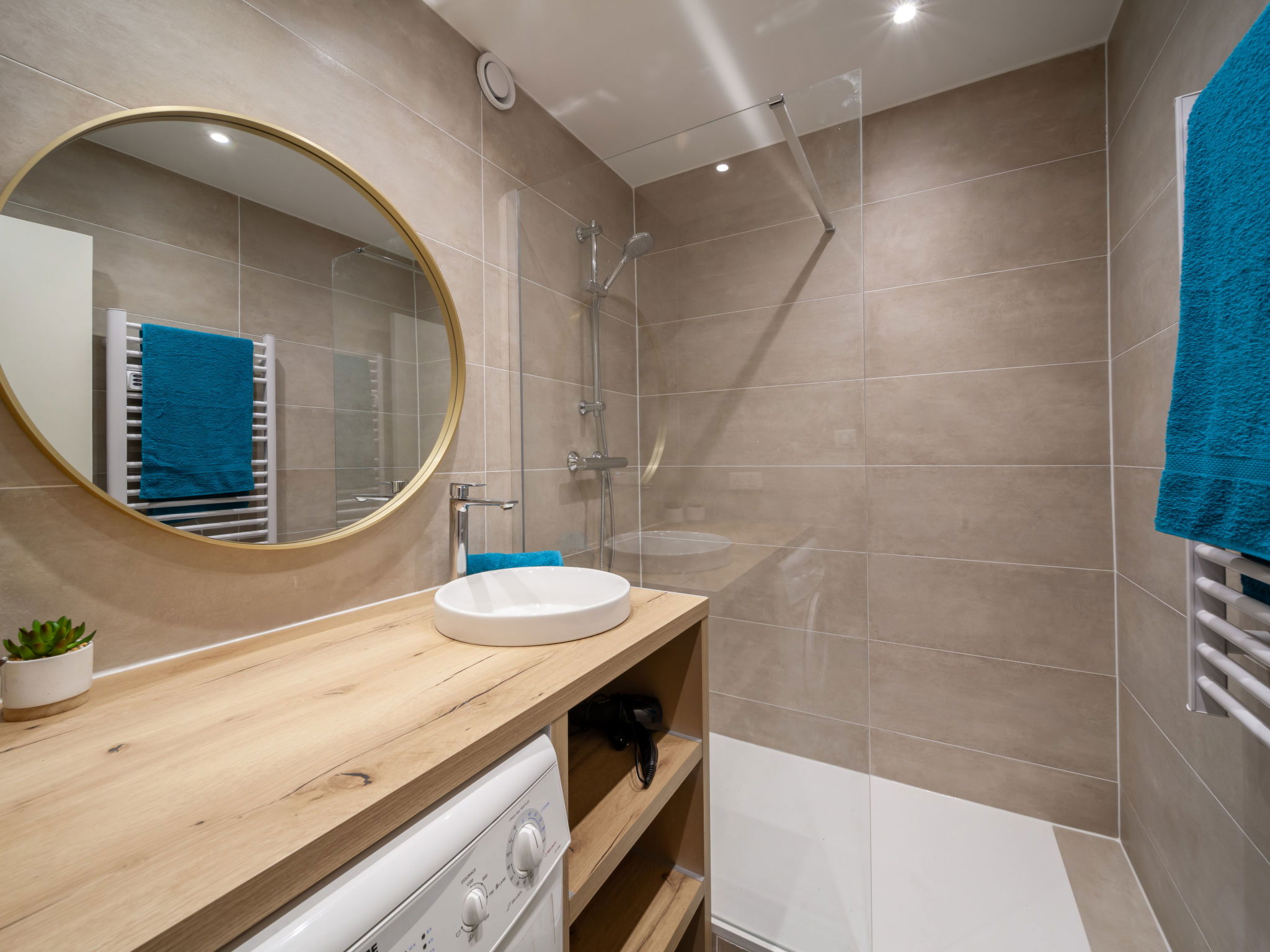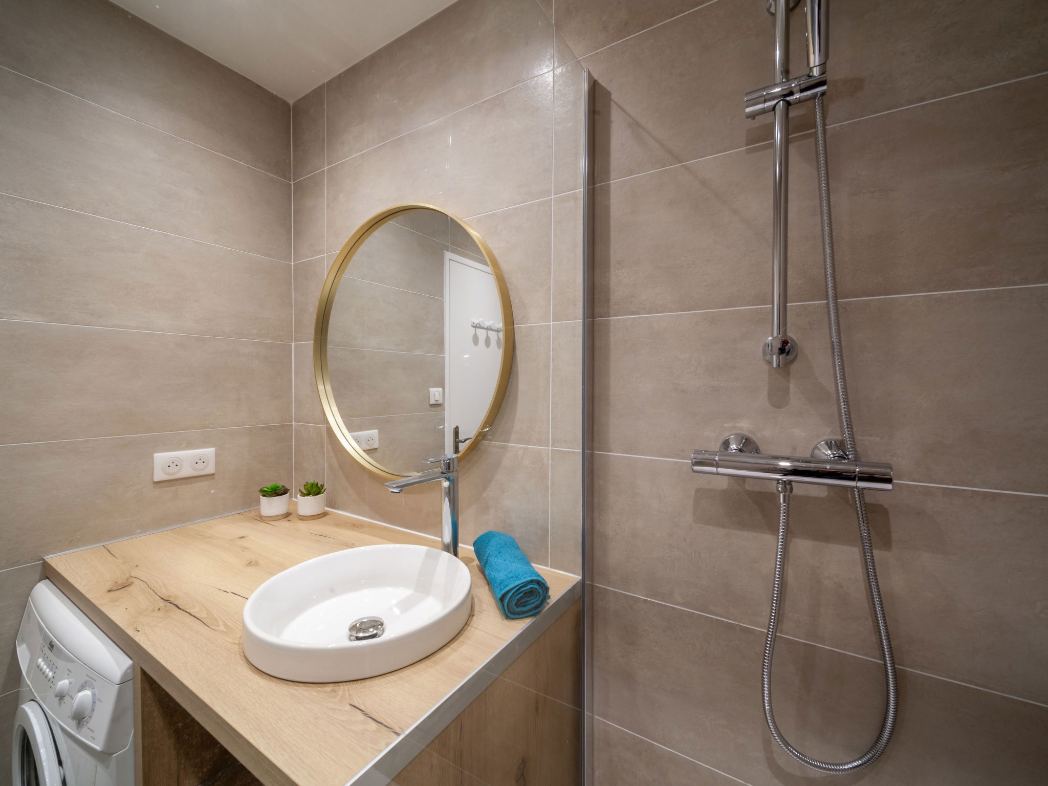 3-room apartment 48 m2 on 11st floor, east facing position. Bright, comfortable and cosy furnishings: living/dining room with 1 double sofabed (1 x 130 cm, length 190 cm), TV (flat screen). Exit to the balcony, east facing position. 1 small room with sliding door with 1 french bed (1 x 140 cm, length 190 cm). 1 room with sliding door with 1 x 2 bunk beds (90 cm, length 190 cm). Large, open kitchen (oven, dishwasher, 4 ceramic glass hob hotplates, toaster, kettle, microwave, electric coffee machine). Shower, sep. WC. Electric heating, boiler. Parquet floors. Balcony 6 m2, east facing position. Balcony furniture. Very beautiful view of the mountains, the valley and the resort. Facilities: washing machine, hair dryer. Internet (WiFi, extra). Please note: non-smokers only. Smoke alarm. Washing machine not available. Offer by a private individual according to Art. 155, IV of CGI.