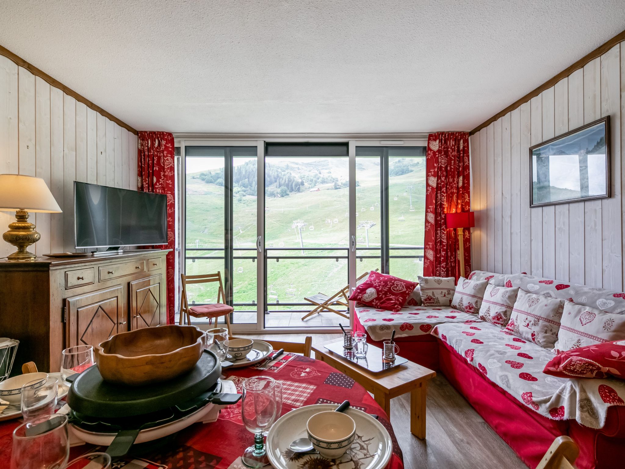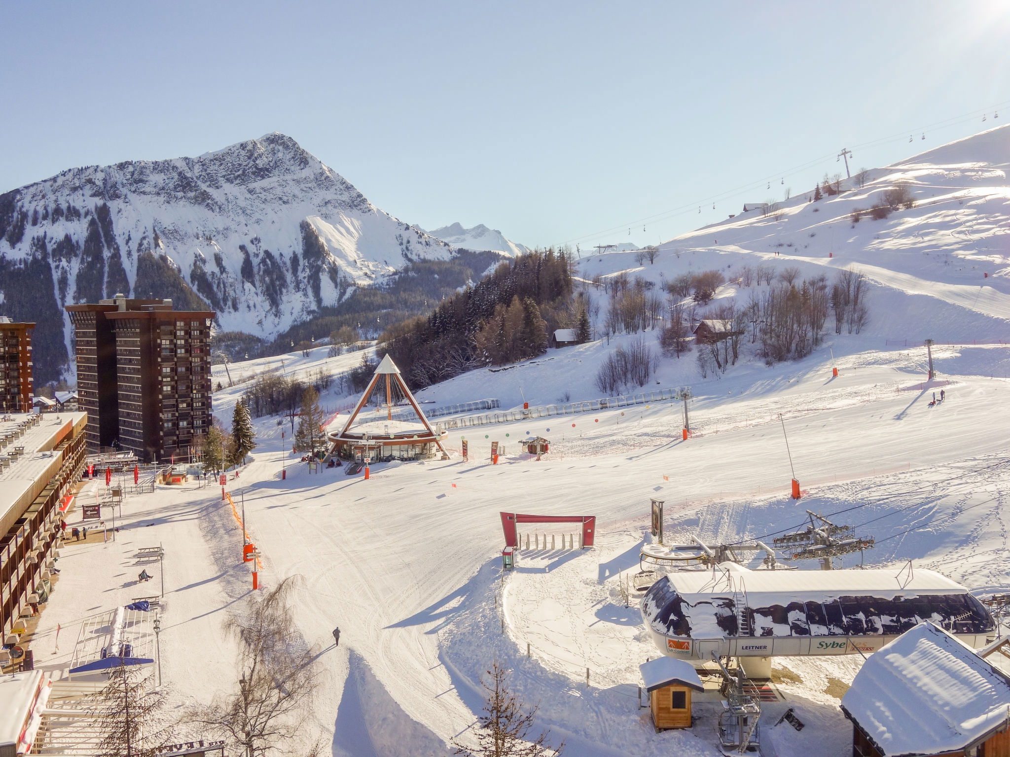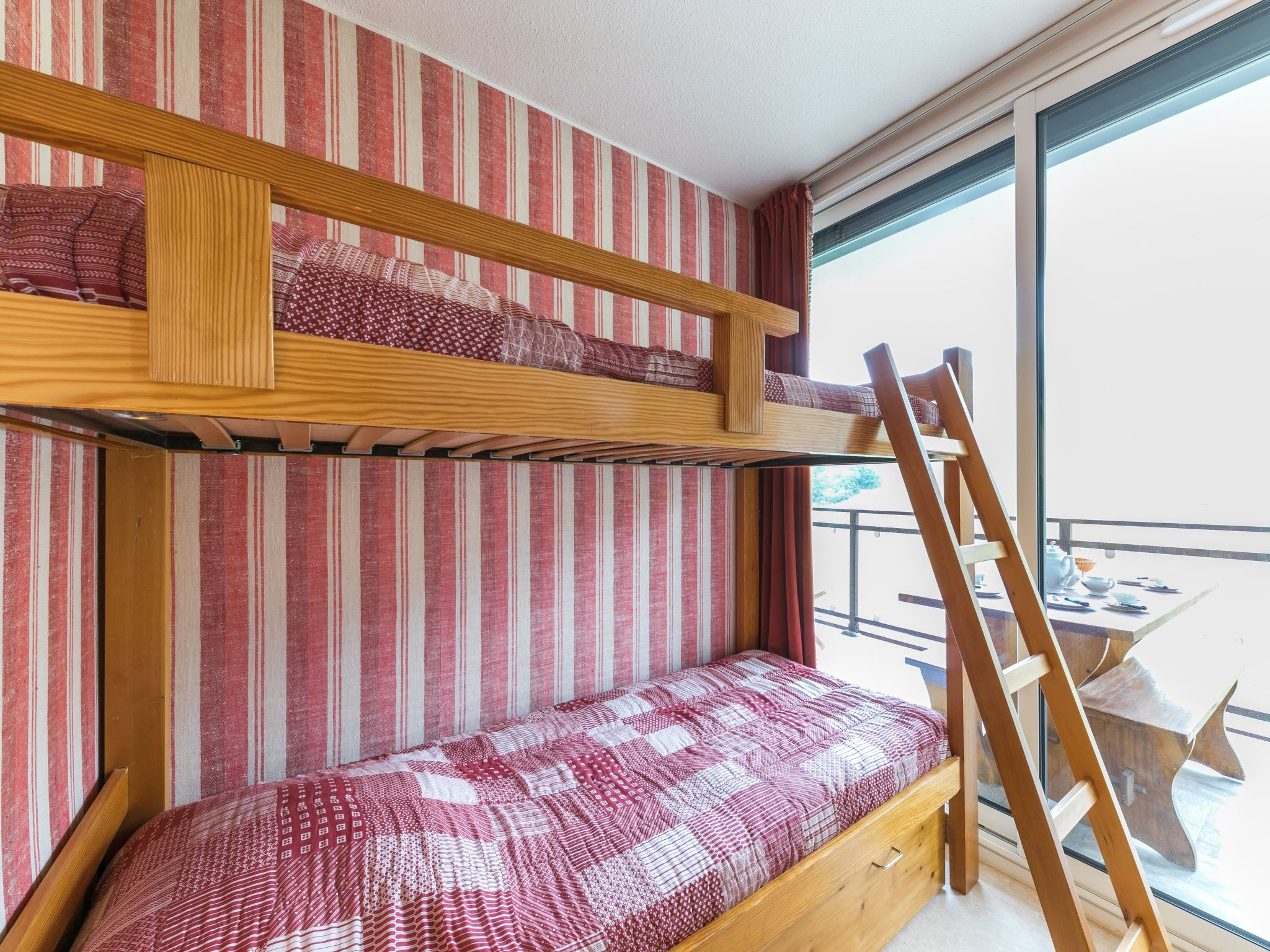 3-room apartment 35 m2 on 9th floor, south facing position. Beautiful and cosy furnishings: living/dining room with TV (flat screen). Exit to the balcony, south facing position. 1 small room with sliding door, without window with 1 french bed (140 cm, length 190 cm). 1 small room with 1 x 2 bunk beds (80 cm, length 190 cm), electric shutters. Exit to the balcony, south facing position. Kitchenette (dishwasher, 2 ceramic glass hob hotplates, toaster, kettle, freezer, electric coffee machine, Capsules for coffee machine (Nespresso) extra, raclette grill, combination microwave, fondue Set (cheese)) with bar. Bathroom, sep. WC. Electric heating, boiler. Parquet floors. Balcony 17 m2, south facing position. Balcony furniture, deck chairs (1). View of the ski run. Facilities: washing machine, iron. Internet (WiFi, extra). Please note: non-smokers only. Smoke alarm. Instead of an enclosed bedroom, some sleeping areas are located in an open-plan area (gallery, alcove, etc.). Offer by a private individual according to Art. 155, IV of CGI.