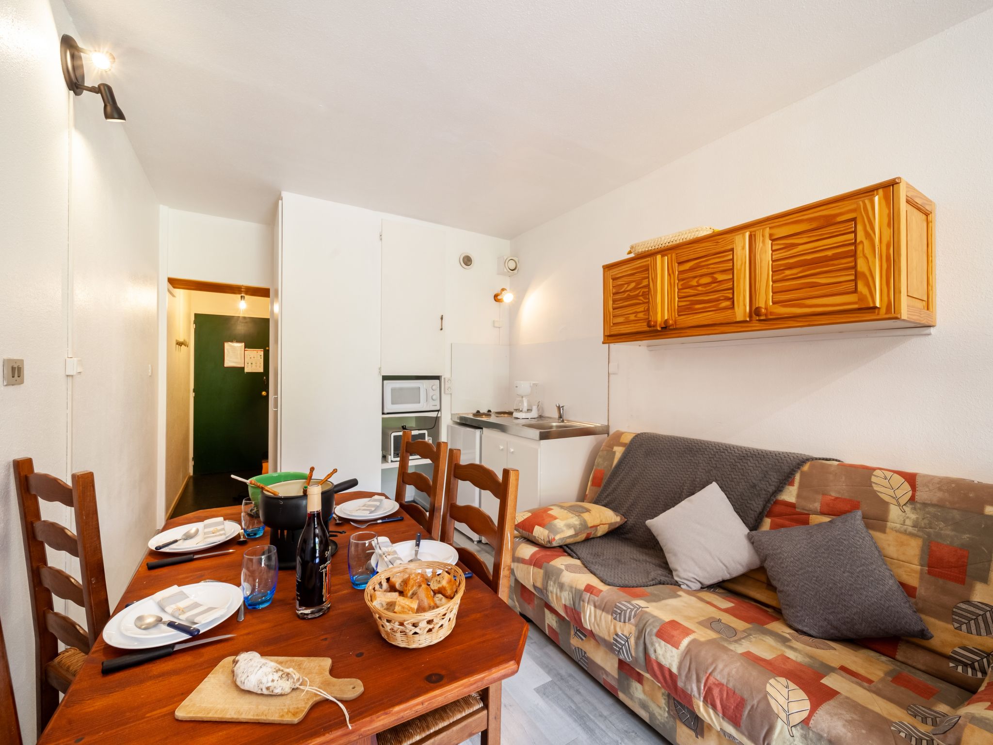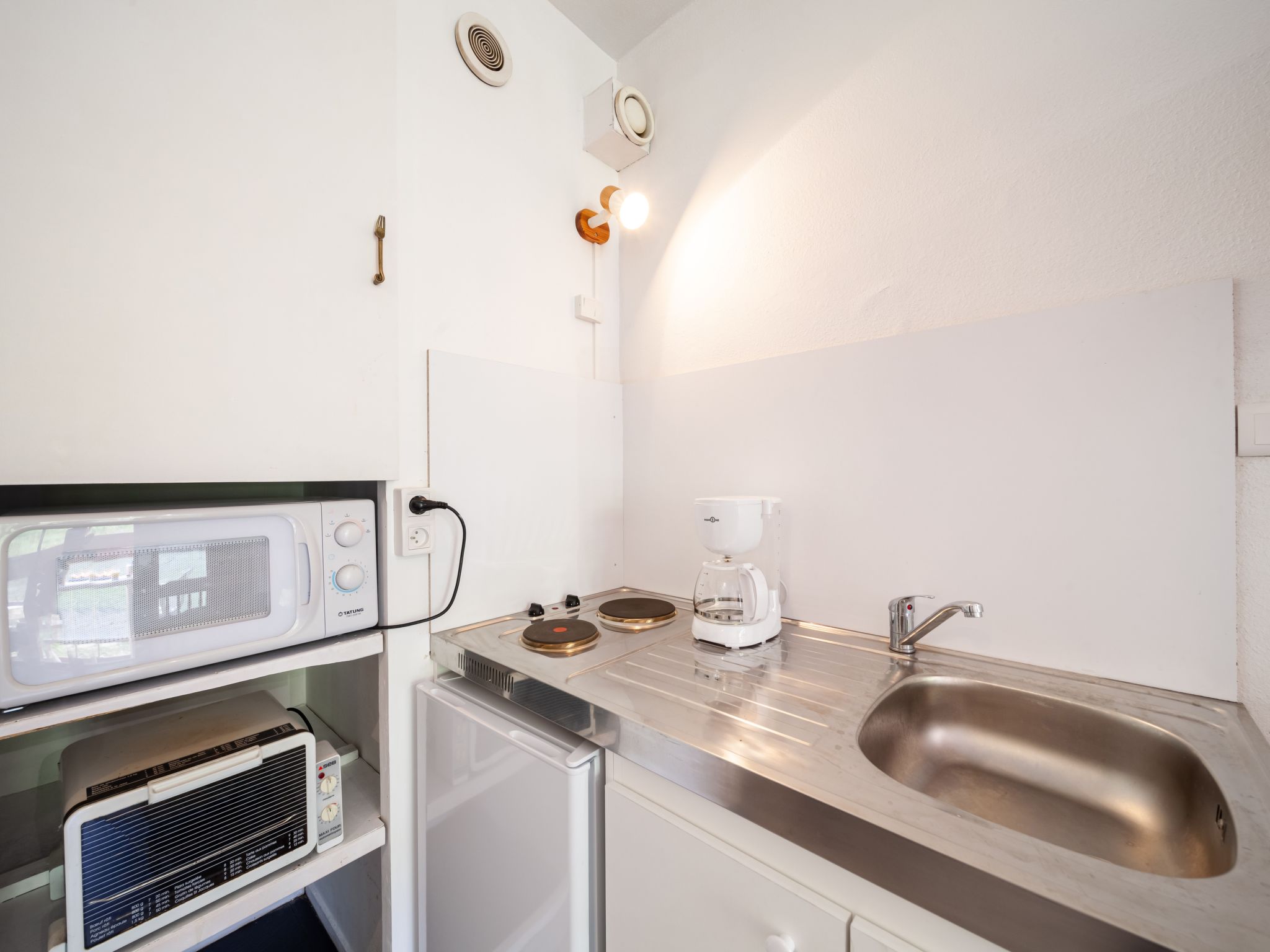 1-room studio 23 m2 on 4th floor, south facing position. Simple furnishings: living/sleeping room with 1 double sofabed (130 cm, length 190 cm), 1 x 2 bunk beds (80 cm, length 190 cm), TV (flat screen). Exit to the balcony. Kitchenette (2 hot plates, mini-oven, kettle, microwave, electric coffee machine, raclette grill, fondue Set (cheese)). Bath/WC. Electric heating. Parquet floors. Balcony 5 m2, south facing position. Balcony furniture. Beautiful view of the mountains. Facilities: iron, hair dryer. Internet (WiFi, extra). Please note: non-smokers only. Smoke alarm. Offer by a private individual according to Art. 155, IV of CGI.