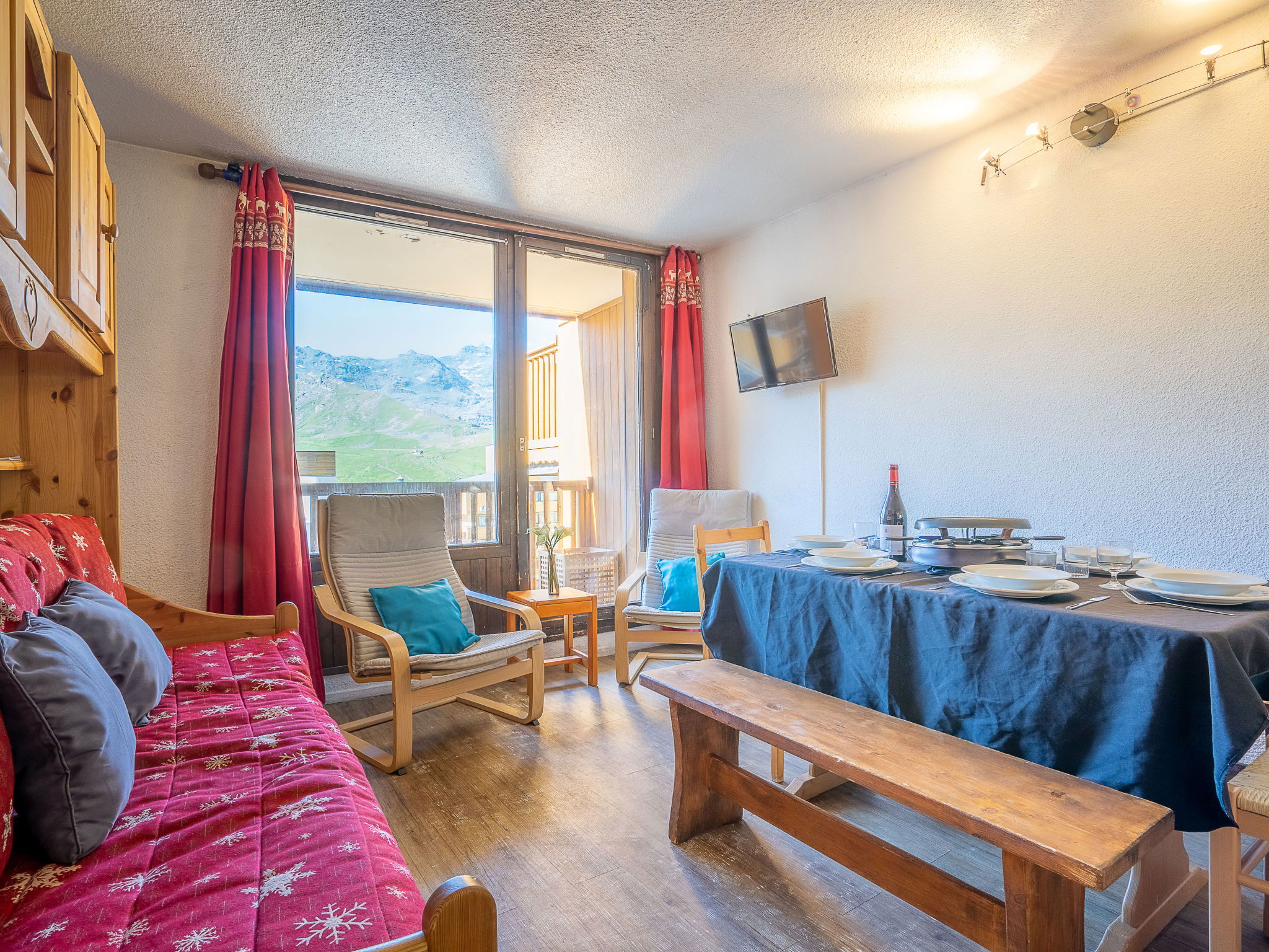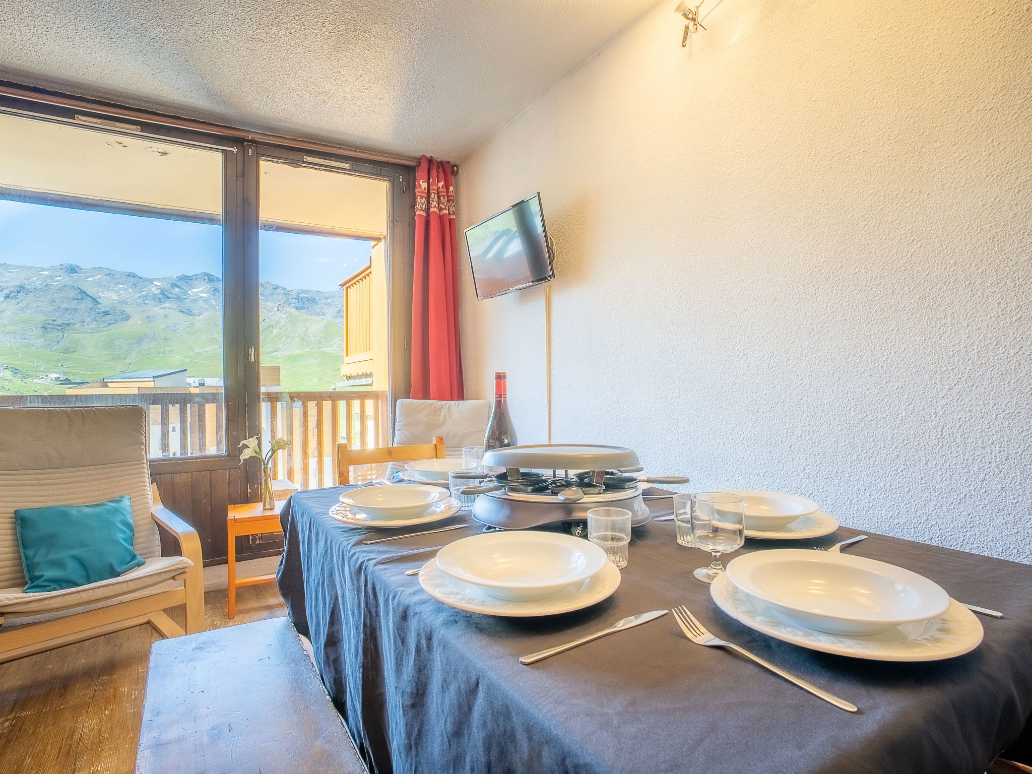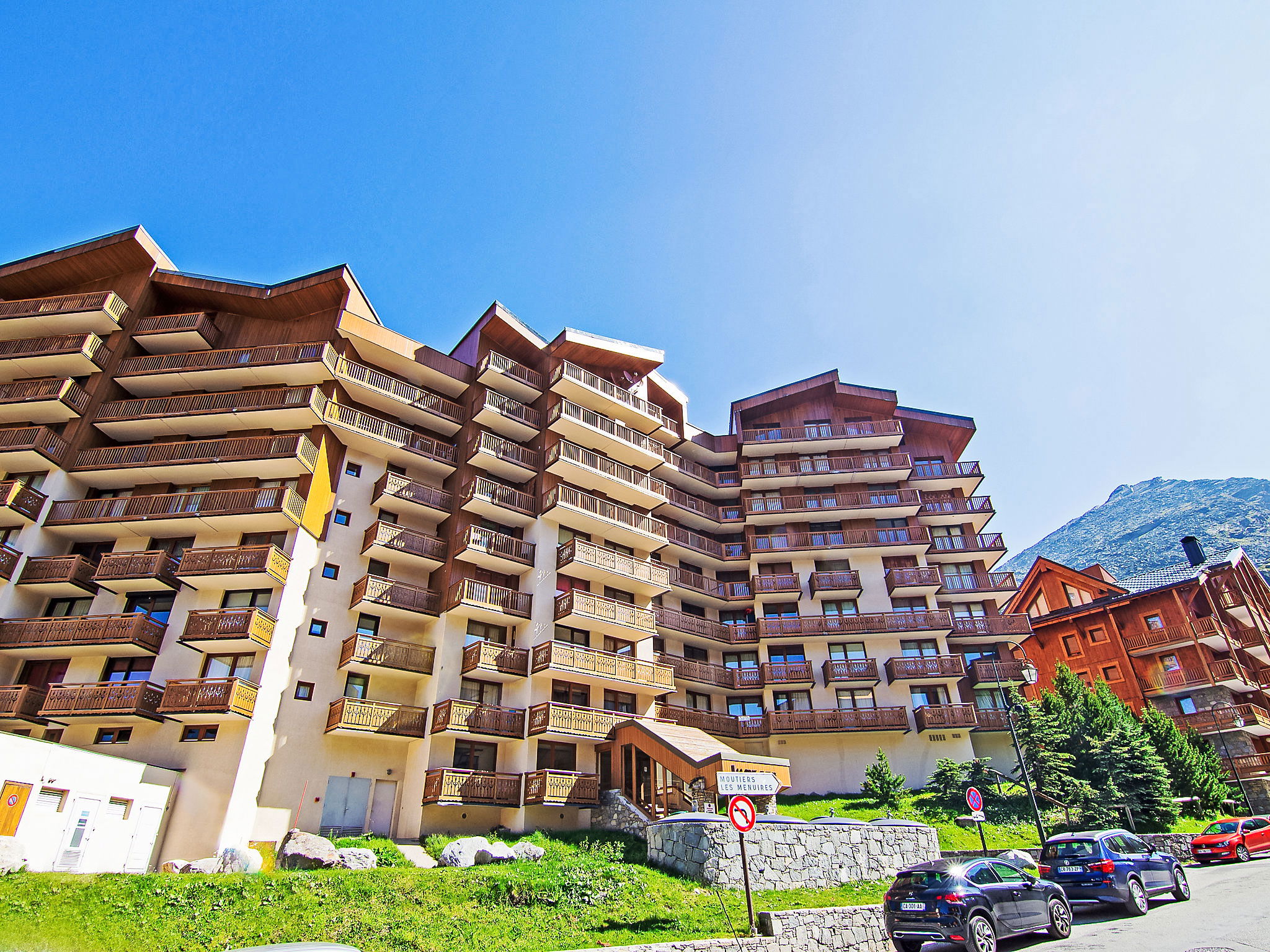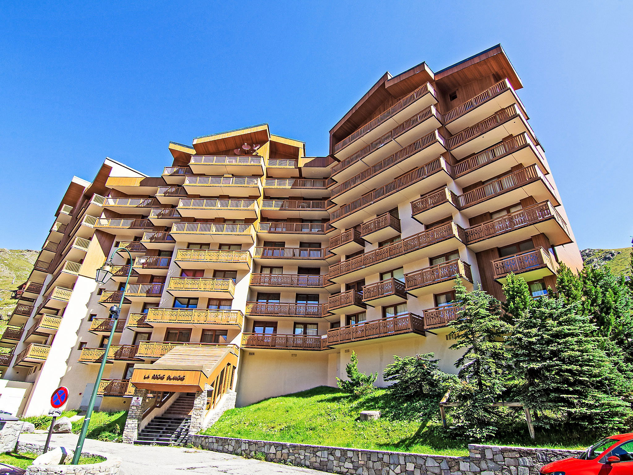 Residence "La Roche Blanche". In the centre of Val Thorens, in a central position, 50 m from the skiing area. In the complex: lift. In Winter: please take snow chains. Public car park at 250 m, extra. Shop 100 m, grocery 50 m, supermarket, shopping centre 100 m, restaurant, bar 50 m, bakery 400 m, café, pedestrian zone 50 m, 2 minute walk to the centre, bus stop 550 m, outdoor swimming pool 100 m. Sports centre 400 m, chair lift 100 m, ski bus stop 25 m, ski school 10 m, ice rink 100 m. Nearby attractions: bowling 10 m. Please note: baby equipment on request (extra). Additional accommodations can be booked. Neighbourhood highly sensitive to noise. Quietness and good behaviour expected.