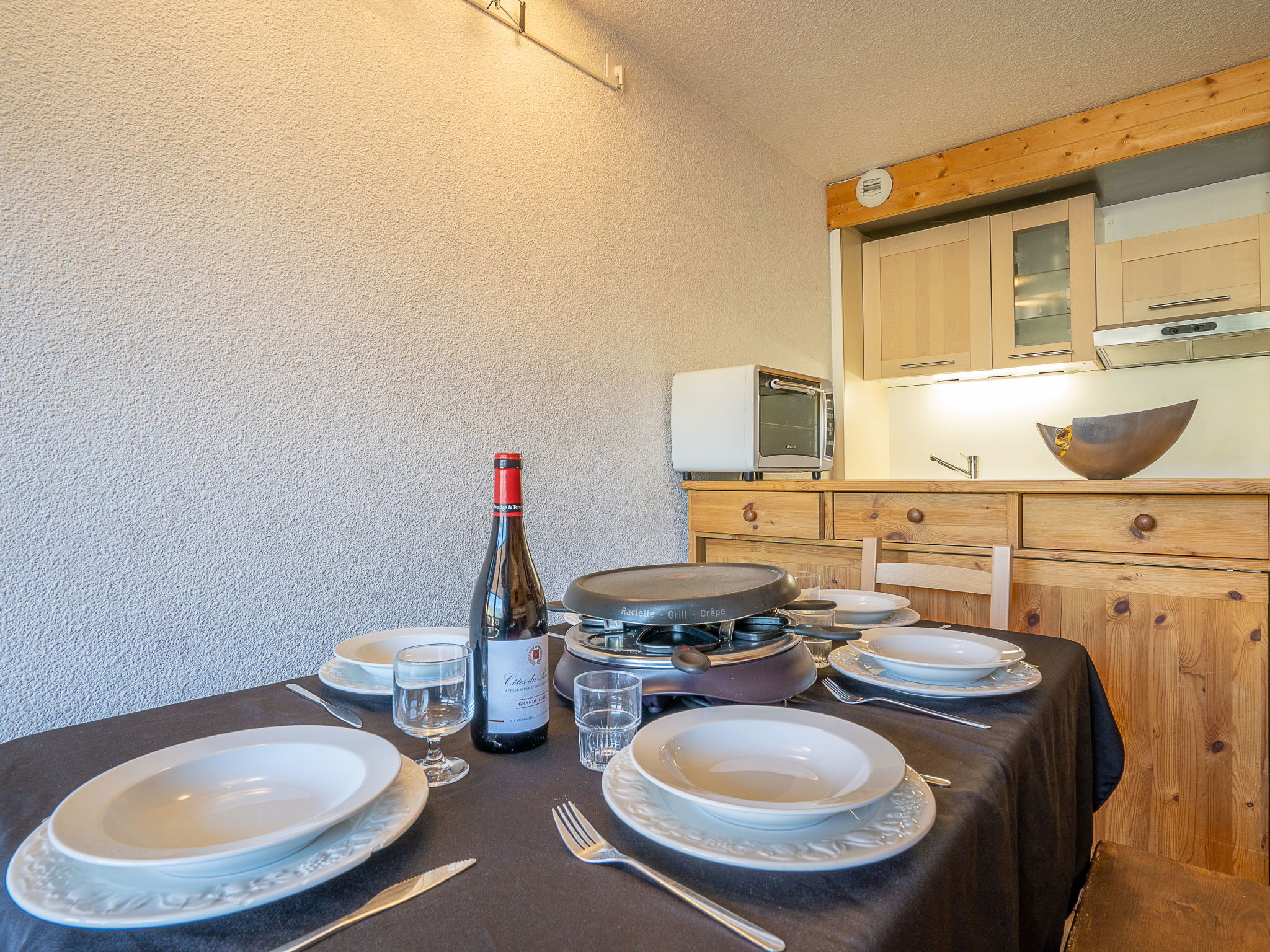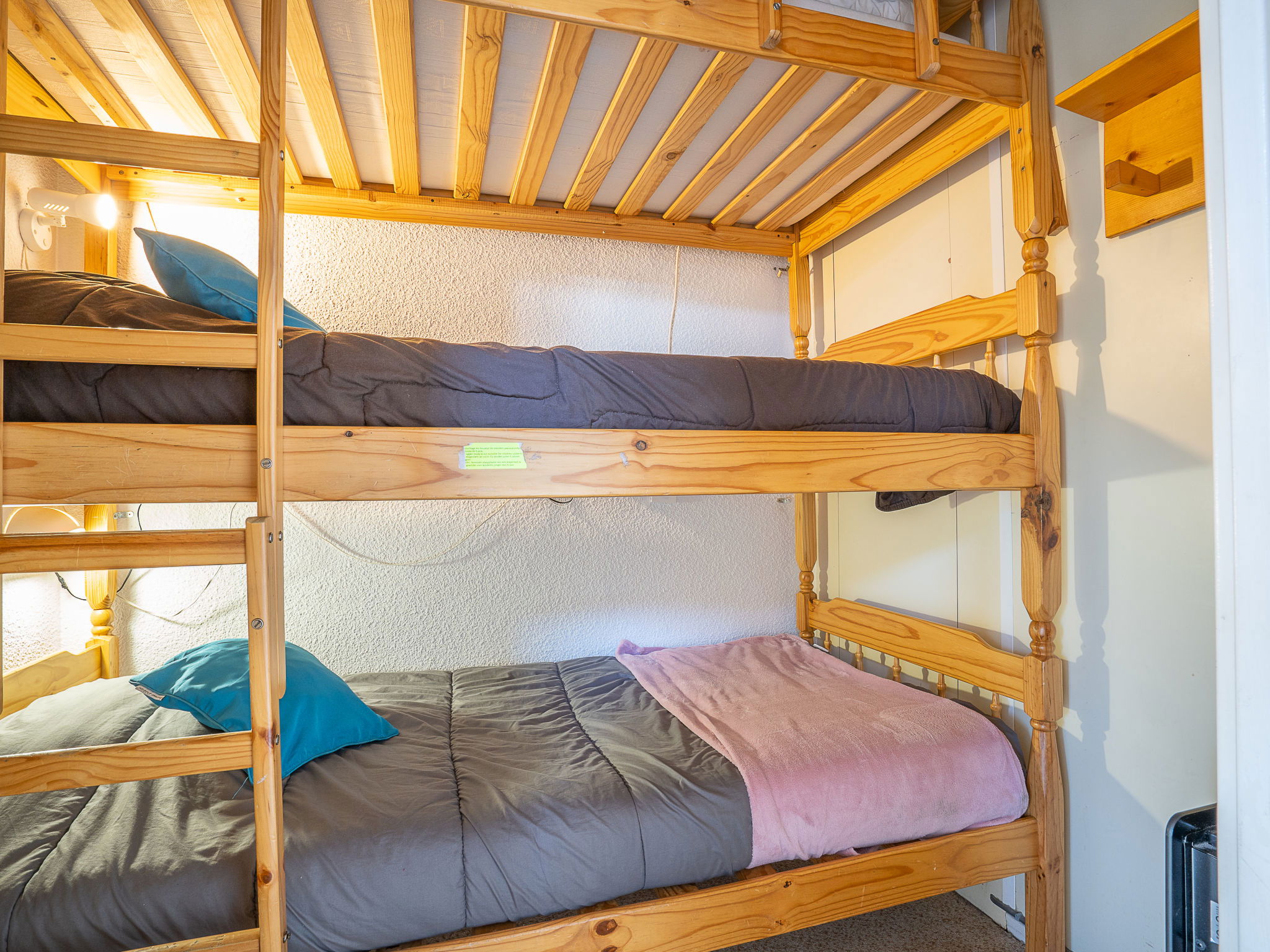 "Roche Blanche 183", 2-room apartment 44 m2 on 2 levels on 6th floor. Living/dining room with 1 pull-out bed (2 pers. 2 x 80 cm, length 190 cm), TV (flat screen), heating stove. Kitchenette (oven, dishwasher, 4 ceramic glass hob hotplates, electric coffee machine). Bath/WC. Upper floor: 1 room with 1 french bed (140 cm, length 190 cm), heating stove. Sleeping alcove with 1 x 2 bunk beds (80 cm, length 190 cm), heating stove. Bath/WC. 2 small balconies 3 m2, south facing position. Facilities: Internet (WiFi, extra). Please note: smoke alarm. Instead of an enclosed bedroom, some sleeping areas are located in an open-plan area (gallery, alcove, etc.). 73257001342SB