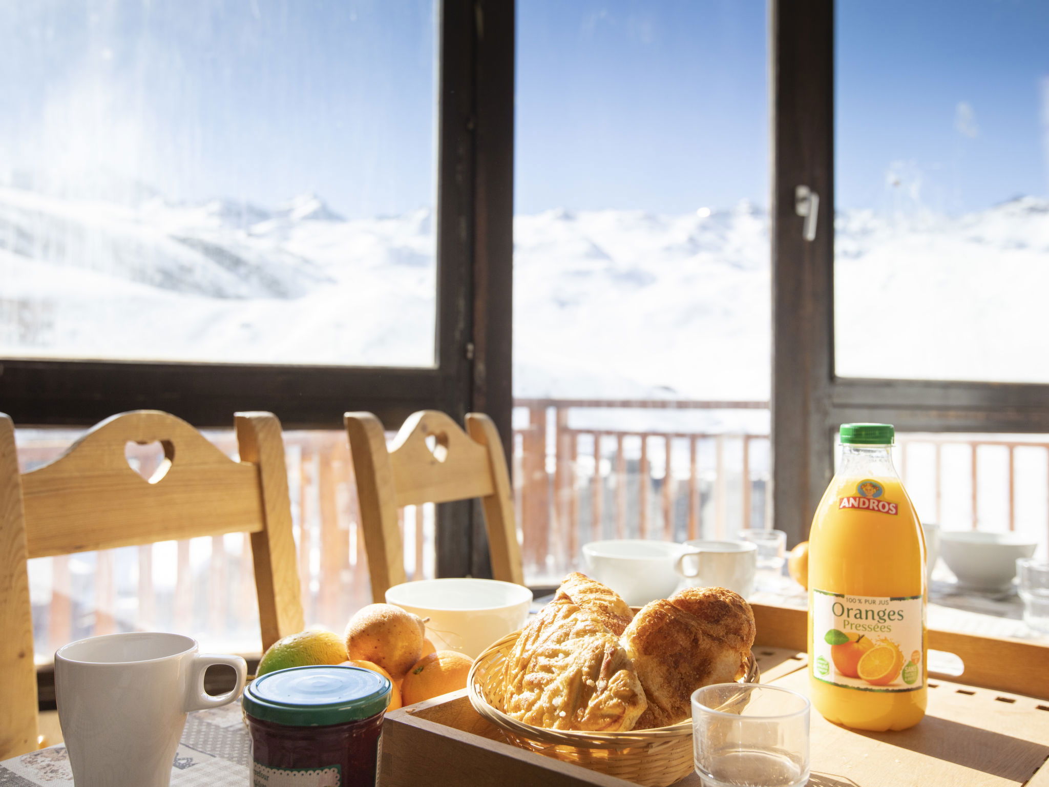 "Trois Vallées 517", 1-room apartment 33 m2 on 2nd floor, south facing position. Bright, beautiful furnishings: living/dining room with 1 pull-out bed (2 pers. 2 x 80 cm, length 190 cm), TV (flat screen), electric heater. Sleeping alcove with 1 x 2 bunk beds (90 cm, length 190 cm). Kitchen (4 hot plates, oven, dishwasher, kettle, electric coffee machine). Bathroom, sep. WC. Balcony, south facing position. Very beautiful view of the ski run. Facilities: Internet (WiFi, extra). Please note: non-smokers only. Smoke alarm. Shared private entrance with FR7365.650.1. Instead of an enclosed bedroom, some sleeping areas are located in an open-plan area (gallery, alcove, etc.). 73257006222AK
