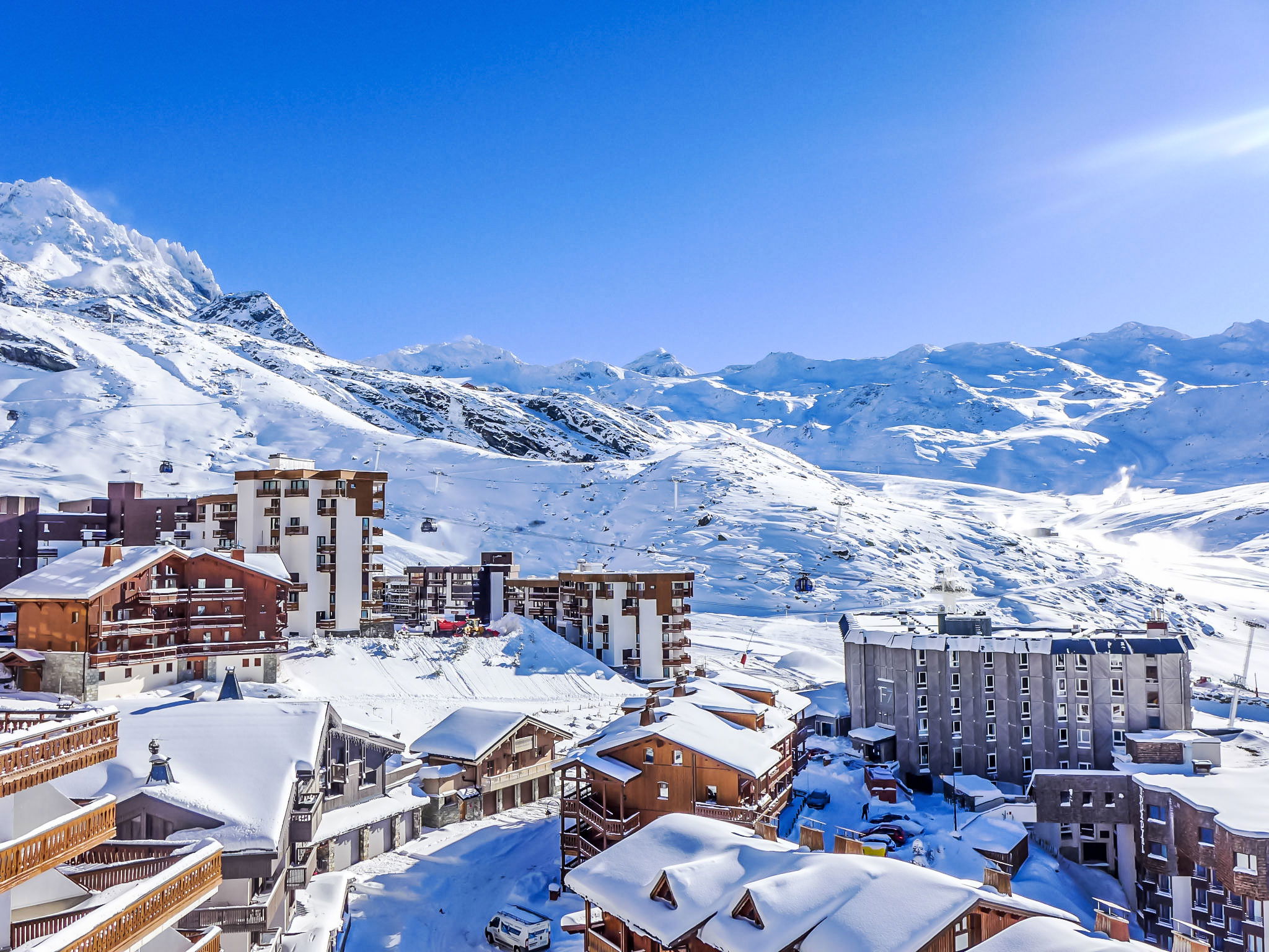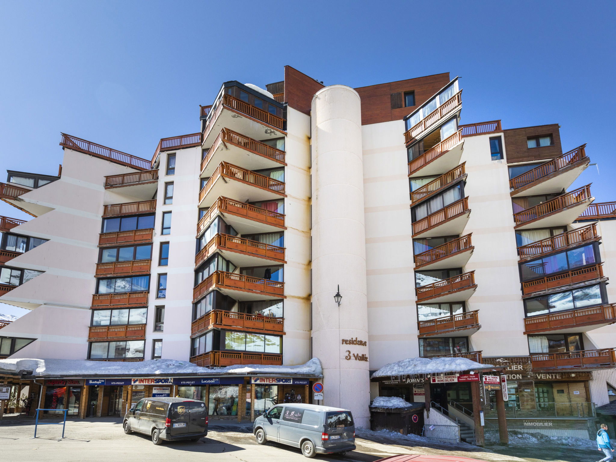 Residence "Les Trois Vallées". In the district of Péclet, in the centre, in the resort, 500 m from the centre, in a busy, sunny position, 50 m from the skiing area, south facing position. In the house: WiFi (extra). Lift, central heating system. In Winter: please take snow chains. Public car park, public parking 500 m. Shop 20 m, grocery, supermarket 10 m, shopping centre 50 m, restaurant 10 m, bar 100 m, bakery 500 m, pedestrian zone 150 m, 5 minute walk to the centre, bus stop 600 m, outdoor swimming pool 150 m. Sports centre 500 m, cable car, chair lift, gondola lift, slopes 150 m, ski rental, ski bus stop 10 m, ski school 200 m, ice rink 20 m, children's playground 50 m. Please note: nightclub/disco. Additional accommodations can be booked.