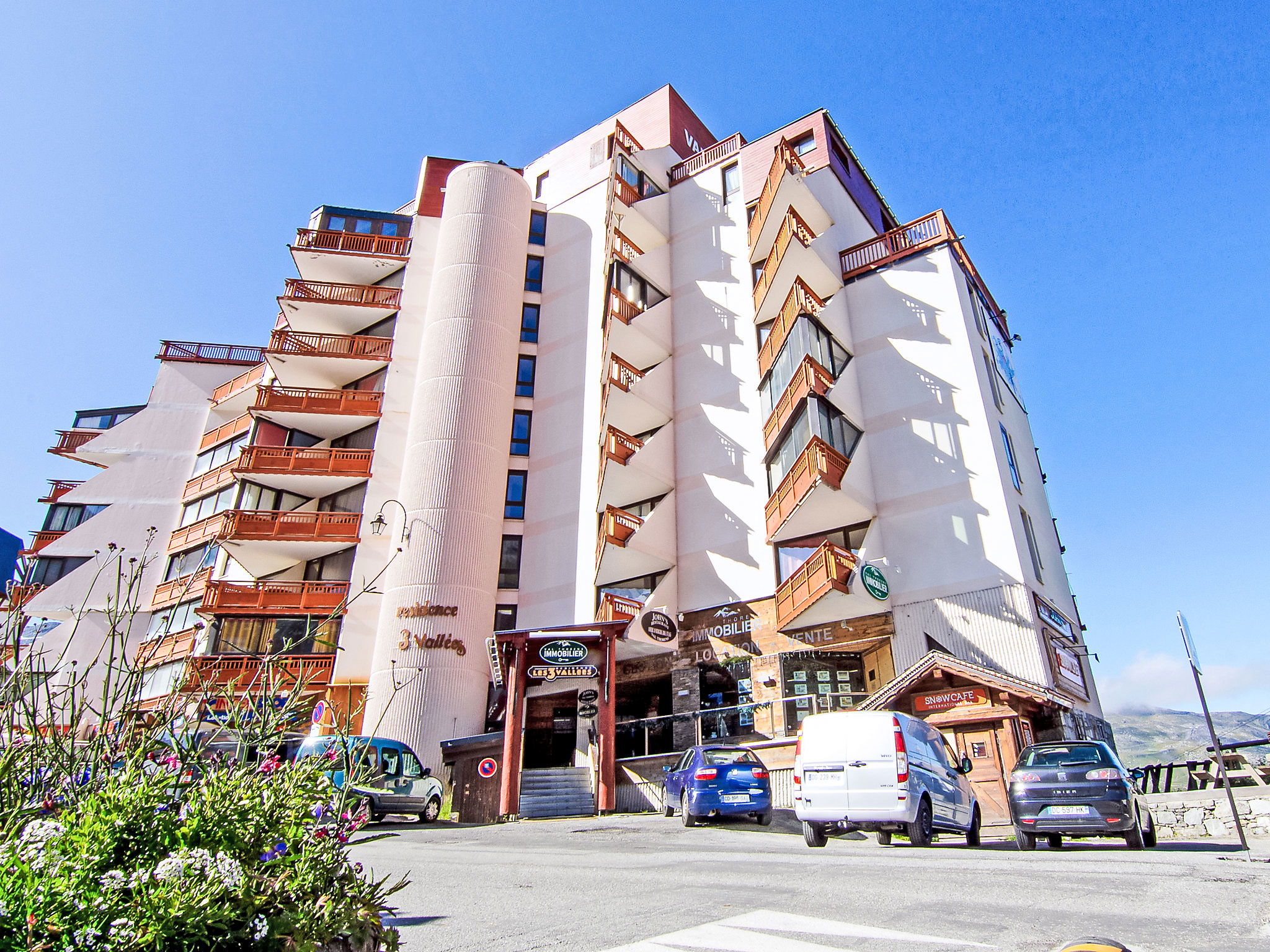 Residence "Les Trois Vallées". In the district of Péclet, in the centre, in the resort, 500 m from the centre, in a busy, sunny position, 50 m from the skiing area, south facing position. In the house: WiFi (extra). Lift, central heating system. In Winter: please take snow chains. Public car park, public parking 500 m. Shop 20 m, grocery, supermarket 10 m, shopping centre 50 m, restaurant 10 m, bar 100 m, bakery 500 m, pedestrian zone 150 m, 5 minute walk to the centre, bus stop 600 m, outdoor swimming pool 150 m. Sports centre 500 m, cable car, chair lift, gondola lift, slopes 150 m, ski rental, ski bus stop 10 m, ski school 200 m, ice rink 20 m, children's playground 50 m. Please note: nightclub/disco. Additional accommodations can be booked.