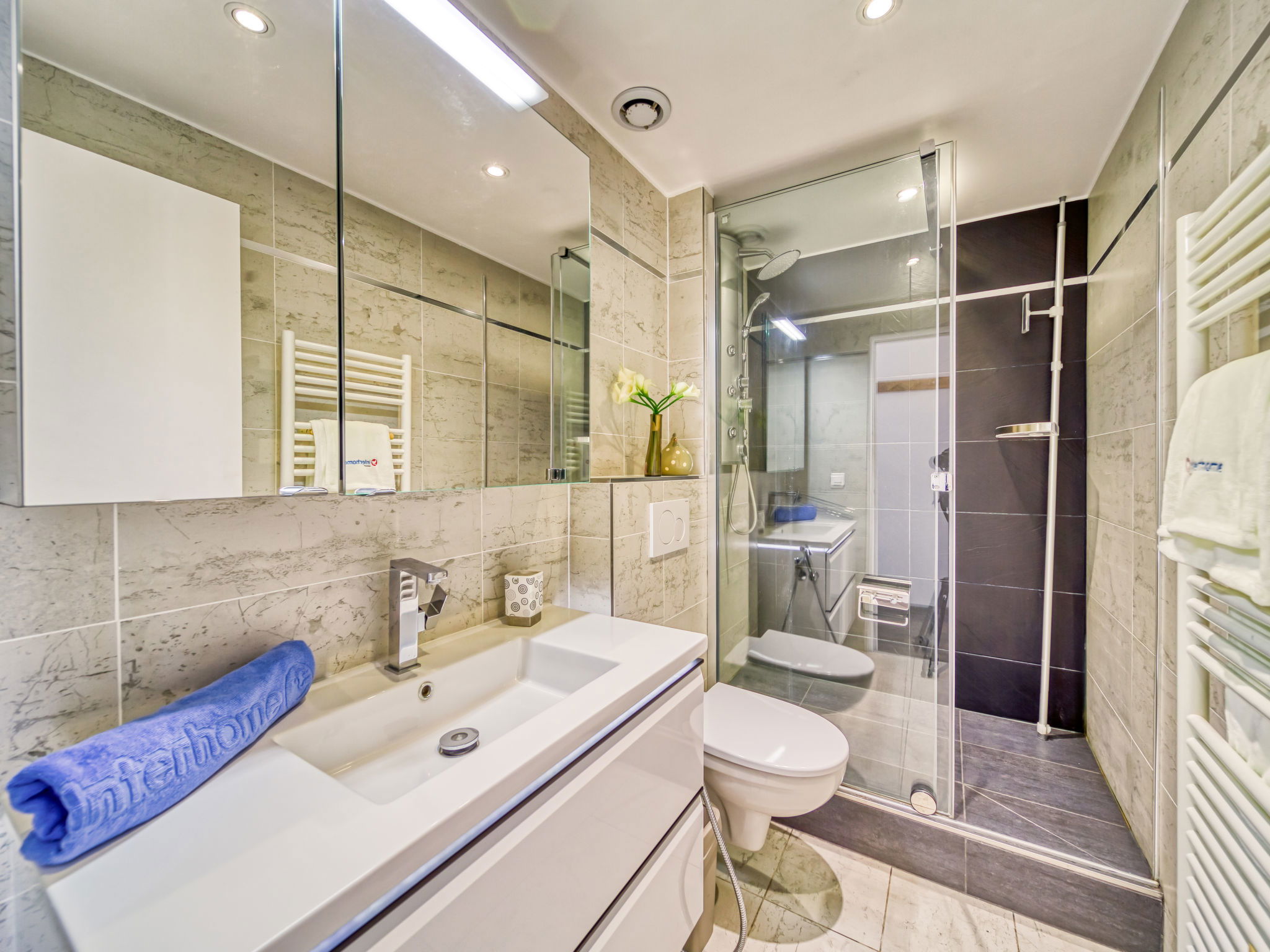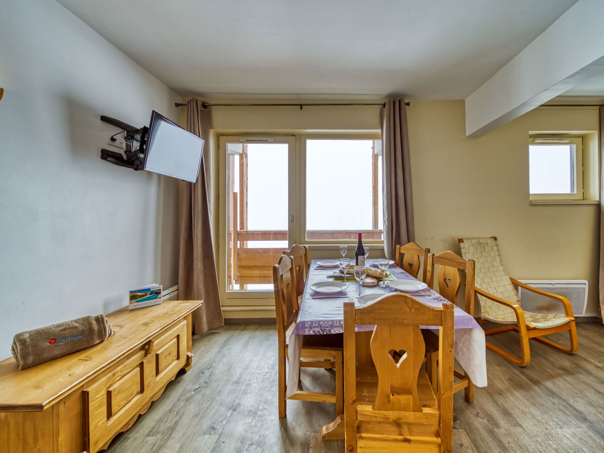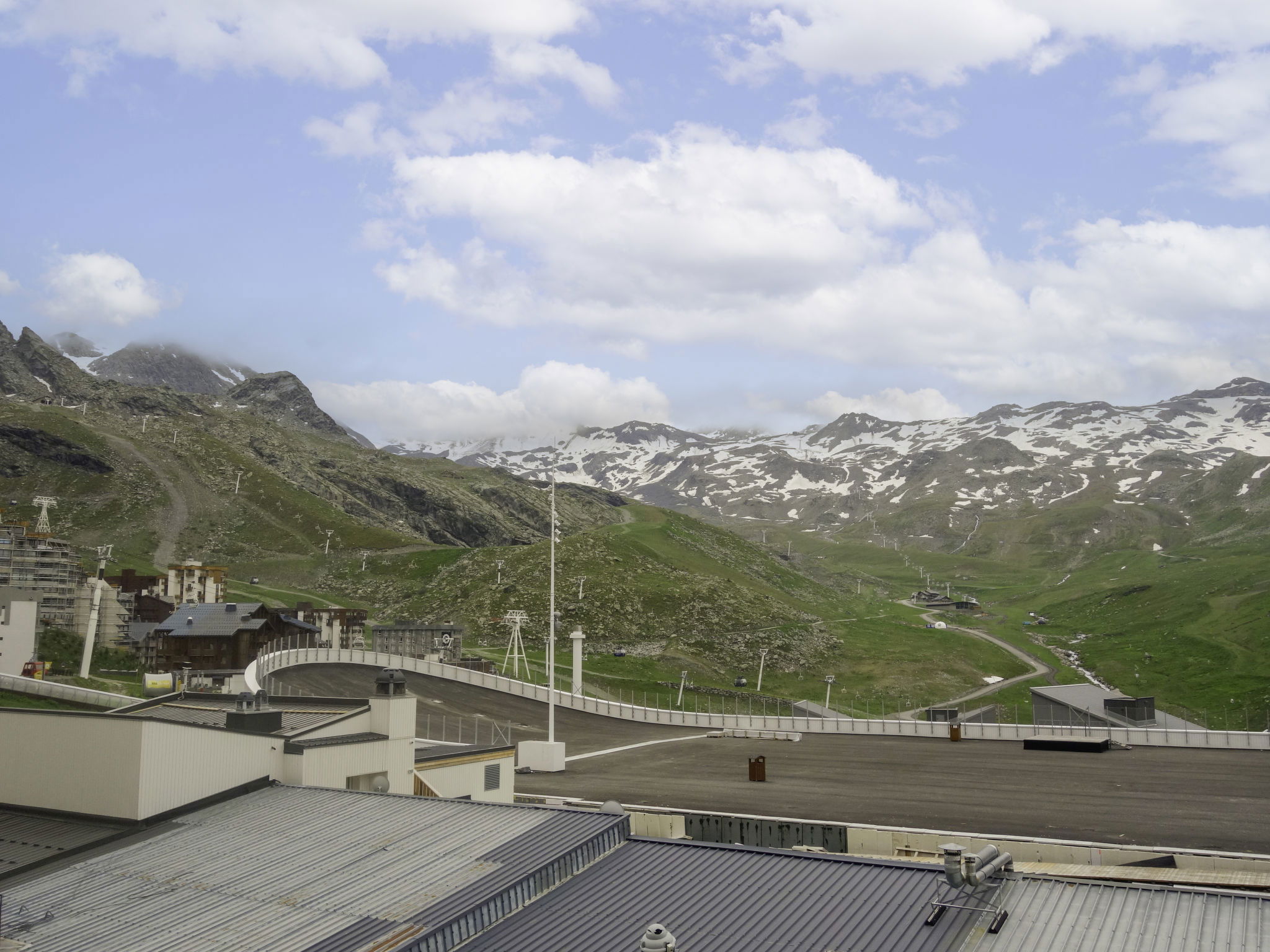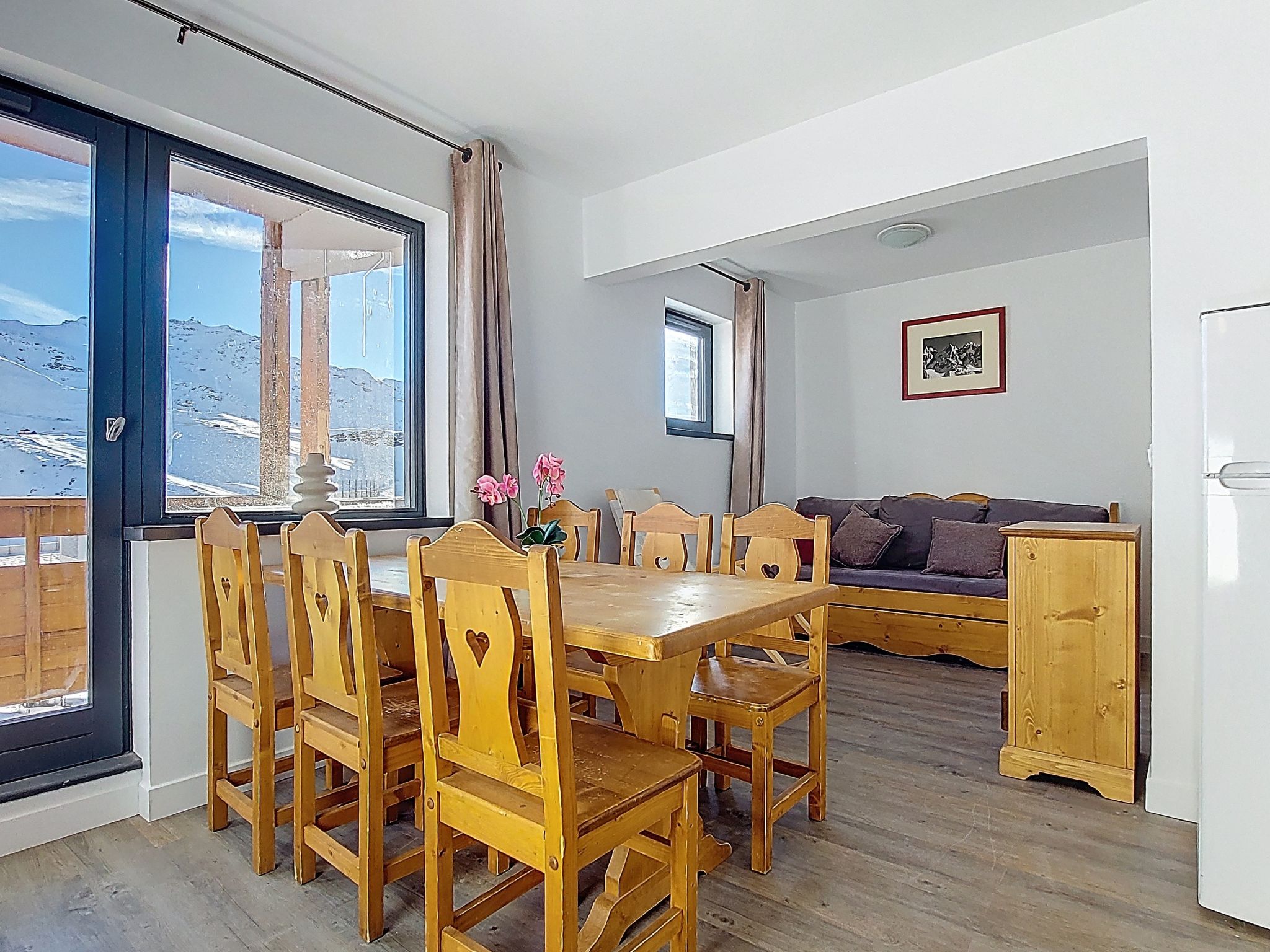 Residence "Les Olympiades", 7 storeys. In the centre of Val Thorens, in the resort, in a central, busy, sunny position in the residential district, 100 m from the skiing area. In the complex: lift, storage room for skis. In Winter: please take snow chains. Public car park at 50 m, extra. E-charging station. Shop, grocery, supermarket, shopping centre, restaurant 5 m, bar 50 m, bakery, café 5 m, pedestrian zone 2 m, bus stop "navette gratuit" 200 m, outdoor swimming pool 50 m. Sports centre 10 m, cable car 150 m, chair lift 50 m, gondola lift 10 m, slopes 50 m, ski rental 5 m, ski bus stop 150 m, ski school 100 m, ice rink 500 m. Nearby attractions: Centre Sportif 100 m. Well-known ski regions can easily be reached: domaine des 3 Vallées 100 m, Val Thorens – Orelle 100 m. Well-known lakes can easily be reached: Lac du Lou 800 m, Lac du Menuires 600 m. Please note: entertainment in the season. Suitable for families, baby equipment on request (extra). The owner does not accept any youth groups. Ski bus (free of charge). In case of good snow conditions, the house is accessible on skis. The apartment is located in a zone with limited traffic. Additional accommodations can be booked.