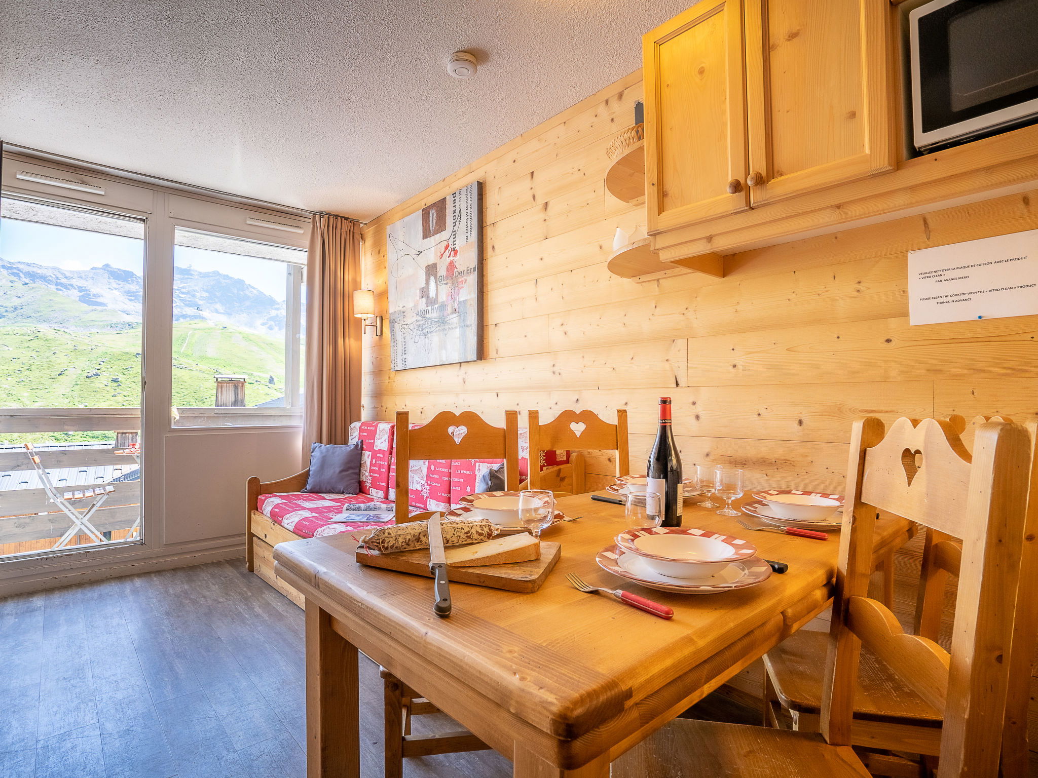"Lauzières 307", 1-room apartment 21 m2 on 3rd floor. Very beautiful and wooden furniture furnishings: living/dining room with 1 pull-out bed (2 pers. 2 x 80 cm, length 190 cm), TV (flat screen), electric heater and electric shutters. Exit to the balcony. Sleeping alcove with 1 x 2 bunk beds. Kitchenette (2 hot plates, oven, dishwasher, kettle, microwave, electric coffee machine, raclette grill, fondue Set (cheese)). Bathroom, sep. WC. Balcony, south facing position. Beautiful view of the mountains. Facilities: iron, hair dryer. Internet (WiFi, extra). Please note: smoke alarm. Instead of an enclosed bedroom, some sleeping areas are located in an open-plan area (gallery, alcove, etc.). 73257010267DP