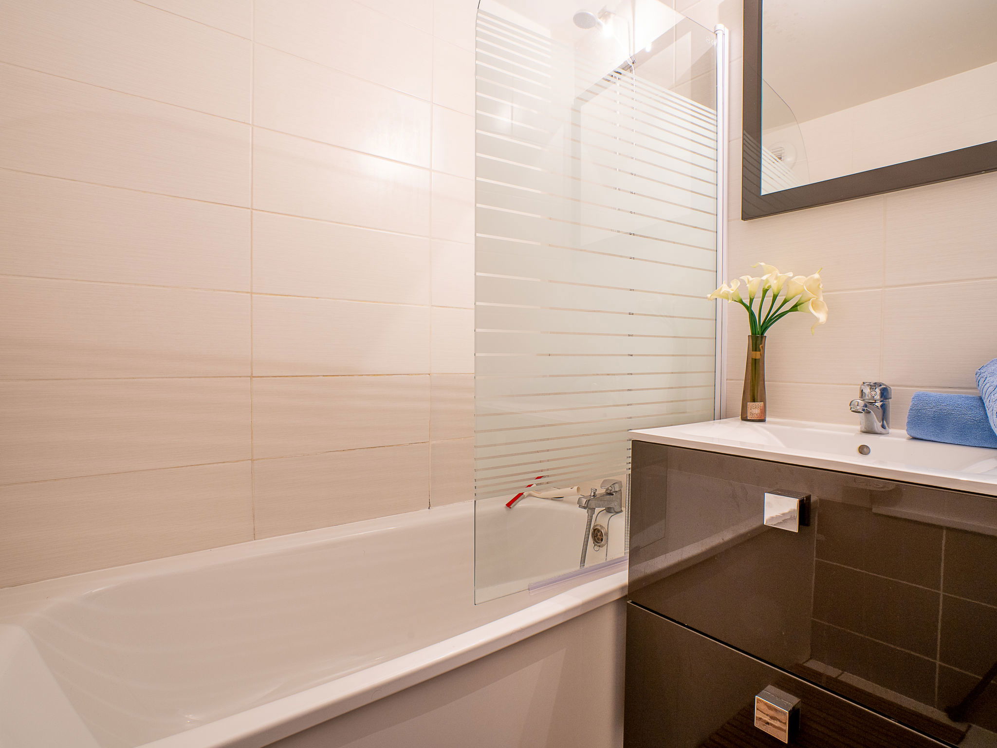 Residence "Les Lauzières". Below Val Thorens, in a central position, 50 m from the skiing area. In the house: lift. In Winter: please take snow chains. Public car park at 200 m, extra. Shop, grocery 100 m, supermarket 50 m, shopping centre 100 m, restaurant 50 m, bakery 100 m, café 50 m, pedestrian zone 100 m, 2 minute walk to the centre, bus stop 200 m. Skisport facilities 300 m, slopes 100 m, ski rental 50 m, ski bus stop 100 m, ski school 200 m, ice rink 500 m. Well-known ski regions can easily be reached: Le Domaine des 3 vallées 300 m. Well-known lakes can easily be reached: Lac du Lou 800 m. Please note: entertainment in the season. The owner does not accept any groups. Ski bus (free of charge). In case of good snow conditions, the house is accessible on skis. Additional accommodations can be booked.